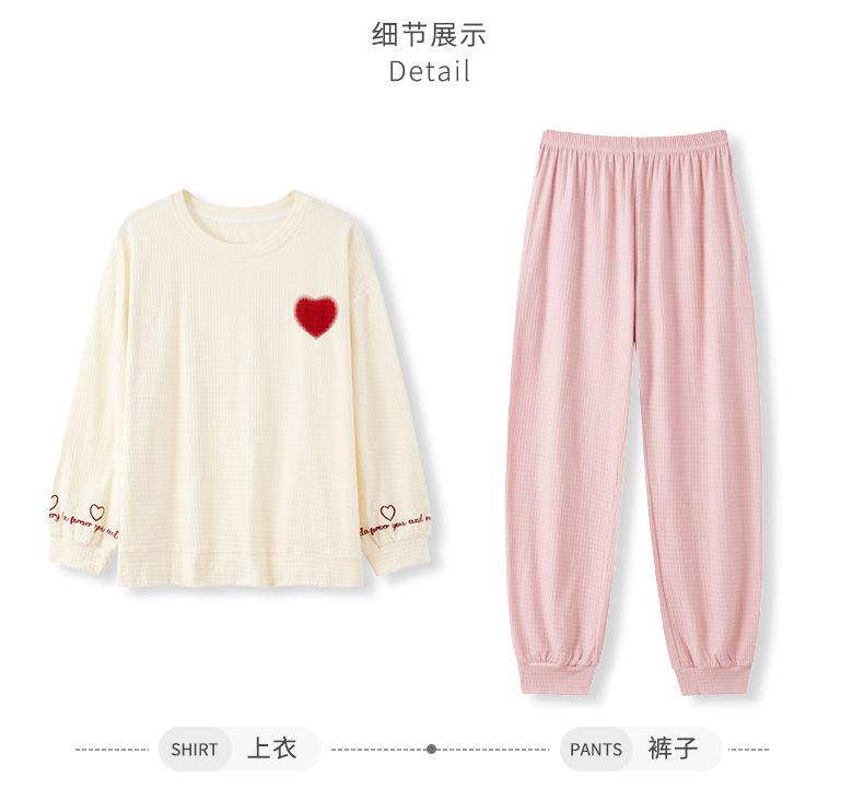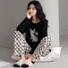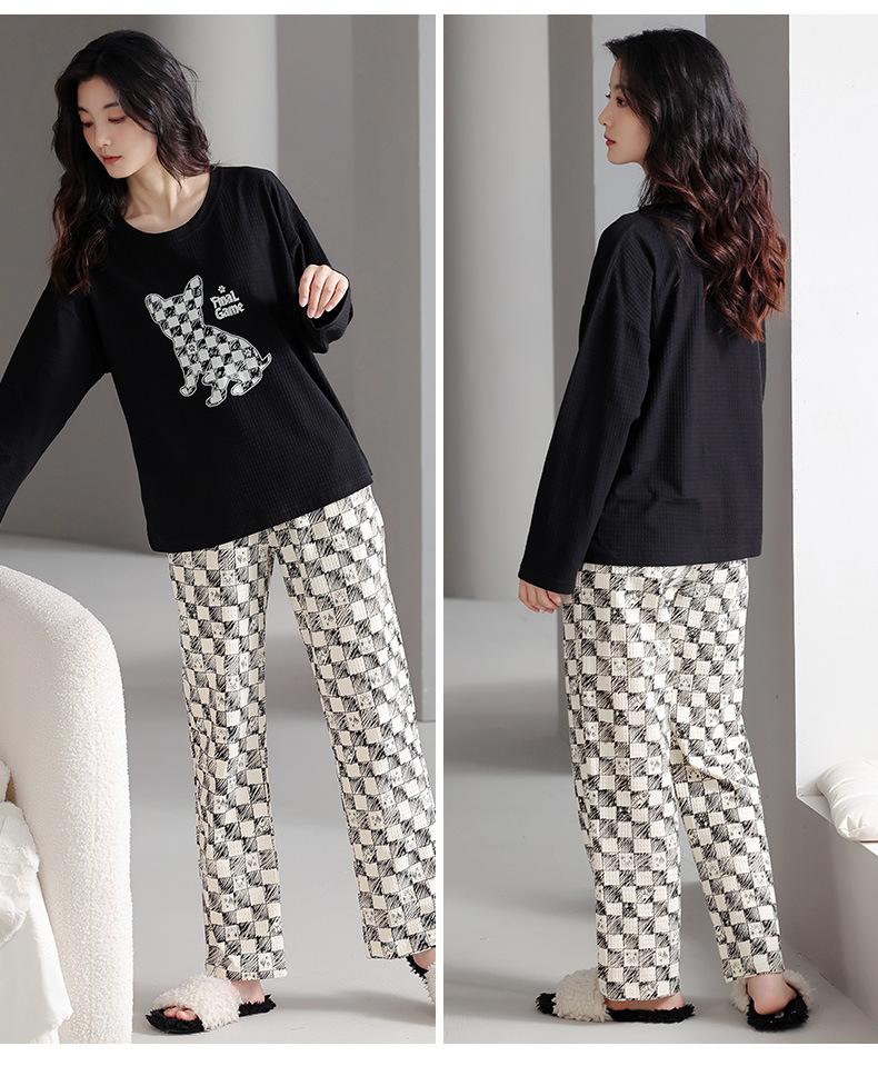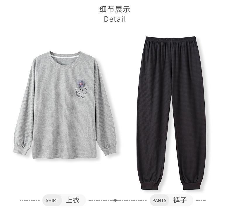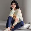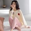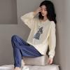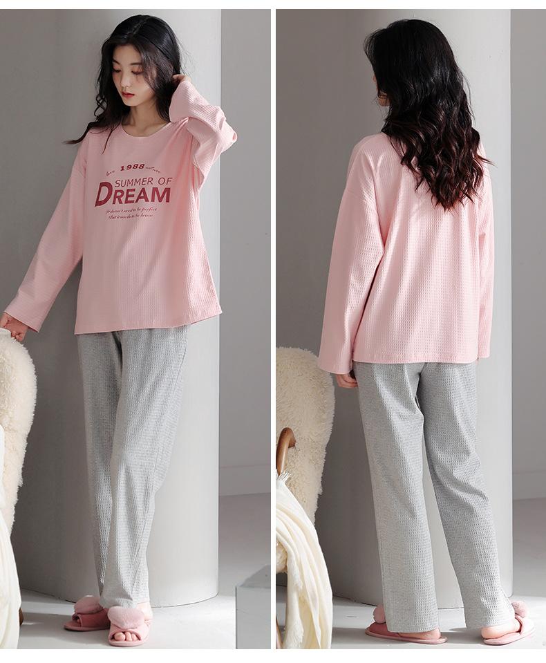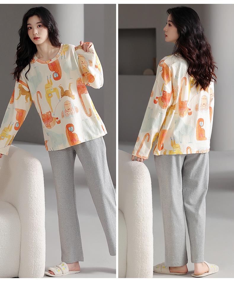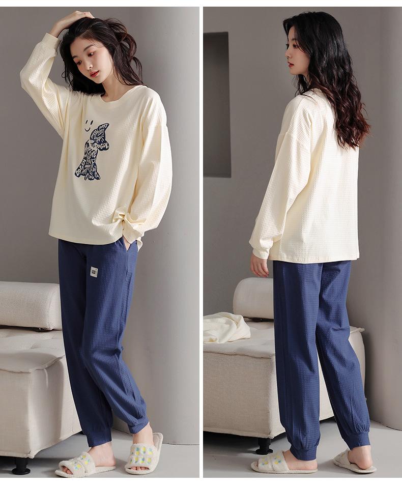 Pijamas de mujer otoño e invierno nuevos de algodón con cuello redondo y manga larga, ropa informal sencilla para mujer, ropa de casa para primavera