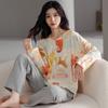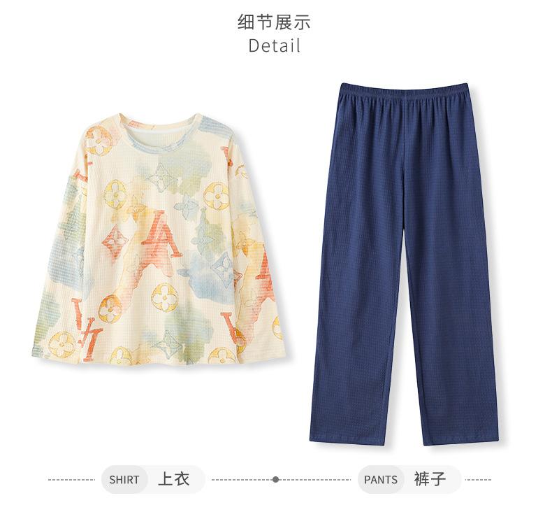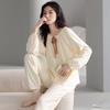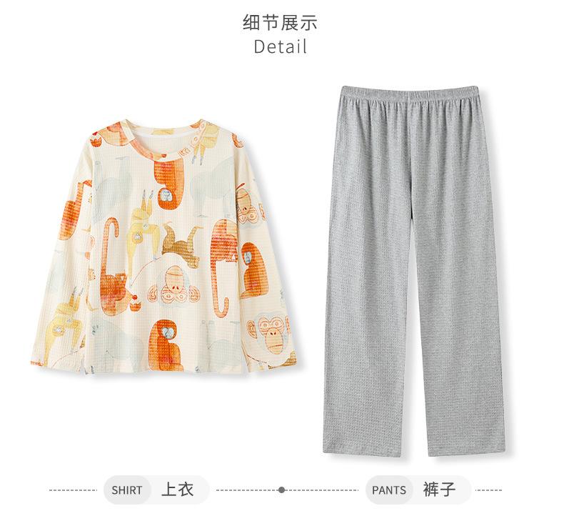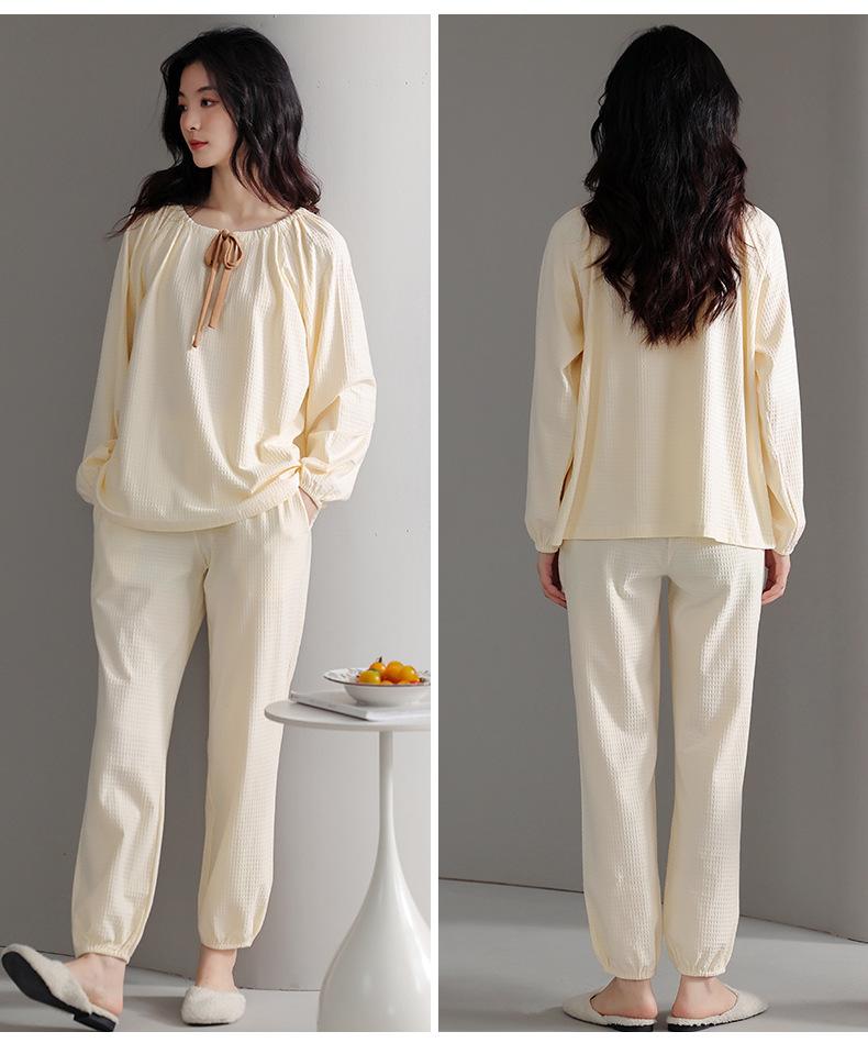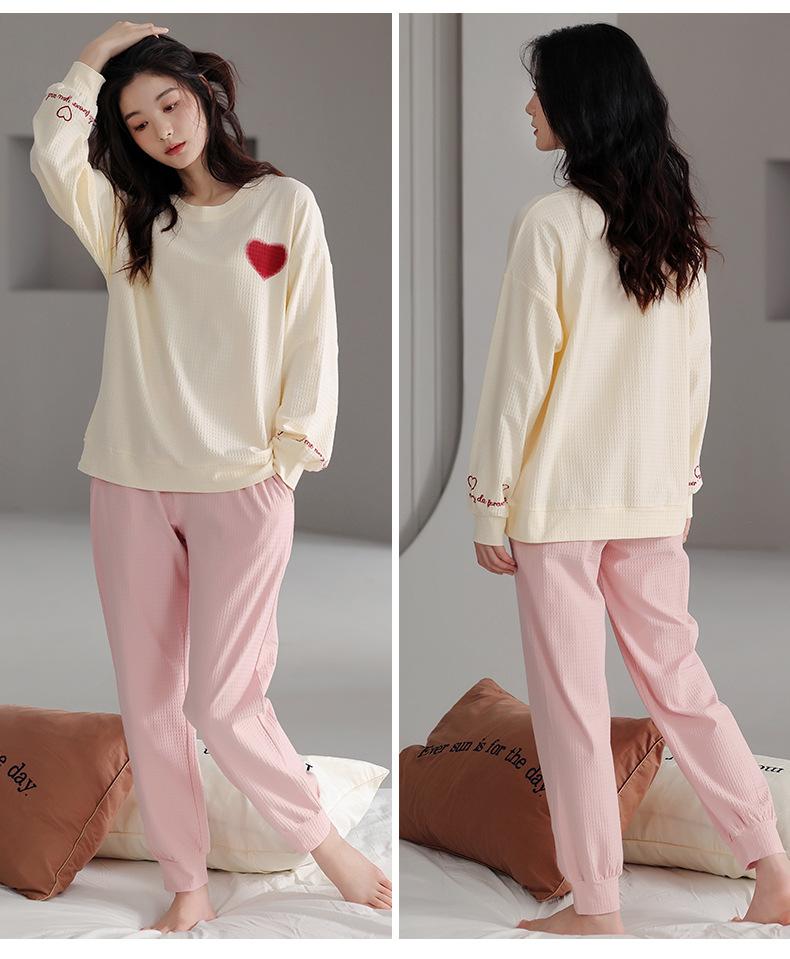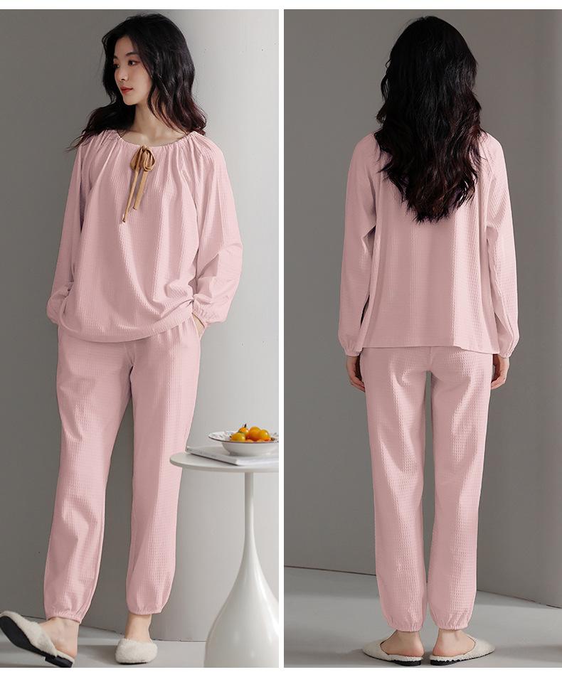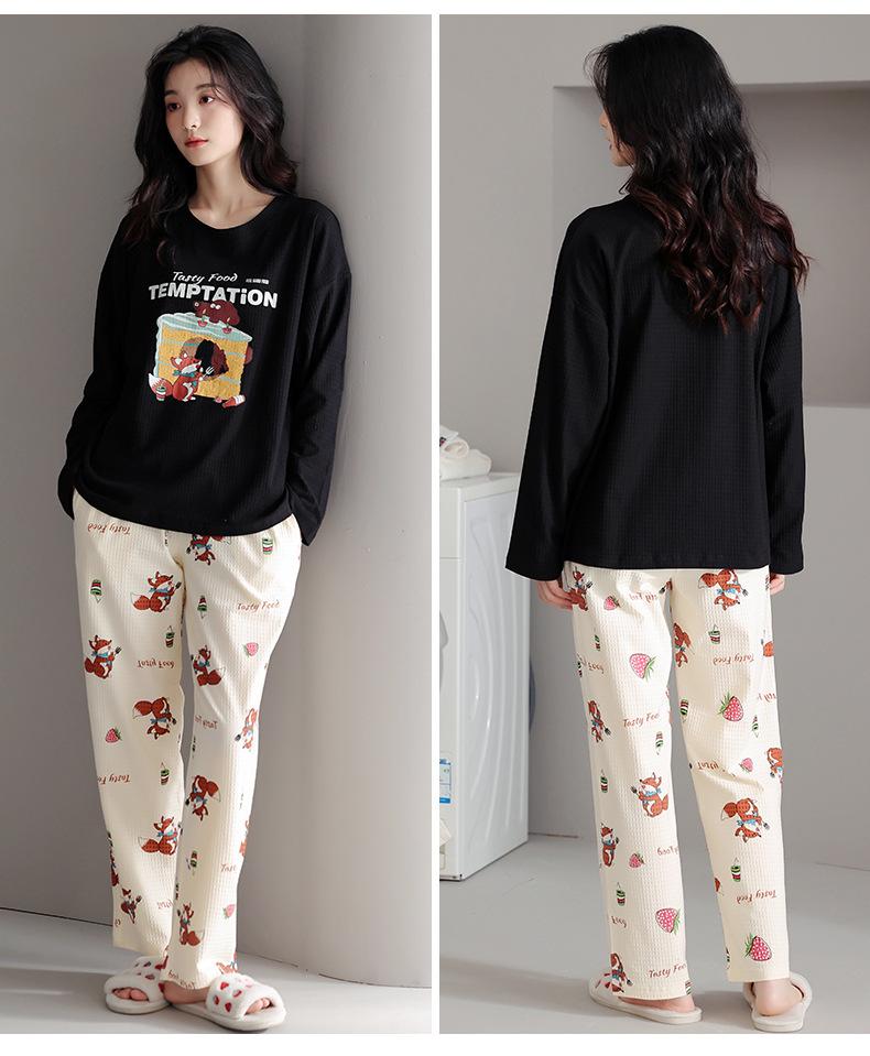 Pijamas de mujer otoño e invierno nuevos de algodón con cuello redondo y manga larga, ropa informal sencilla para mujer, ropa de casa para primavera