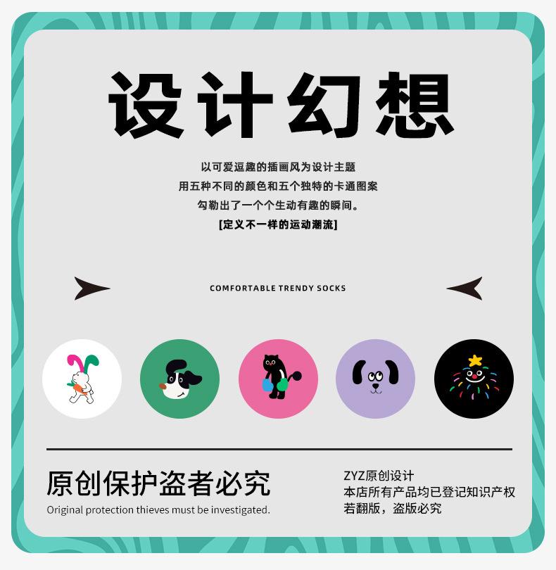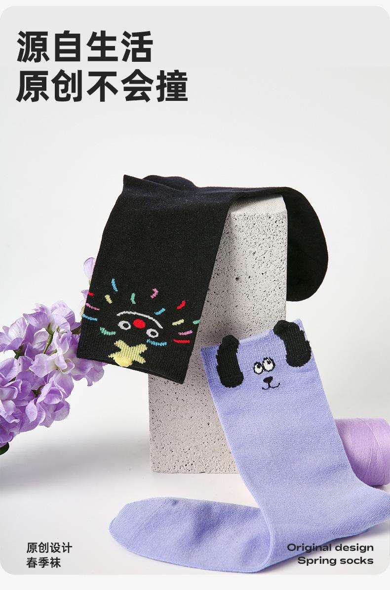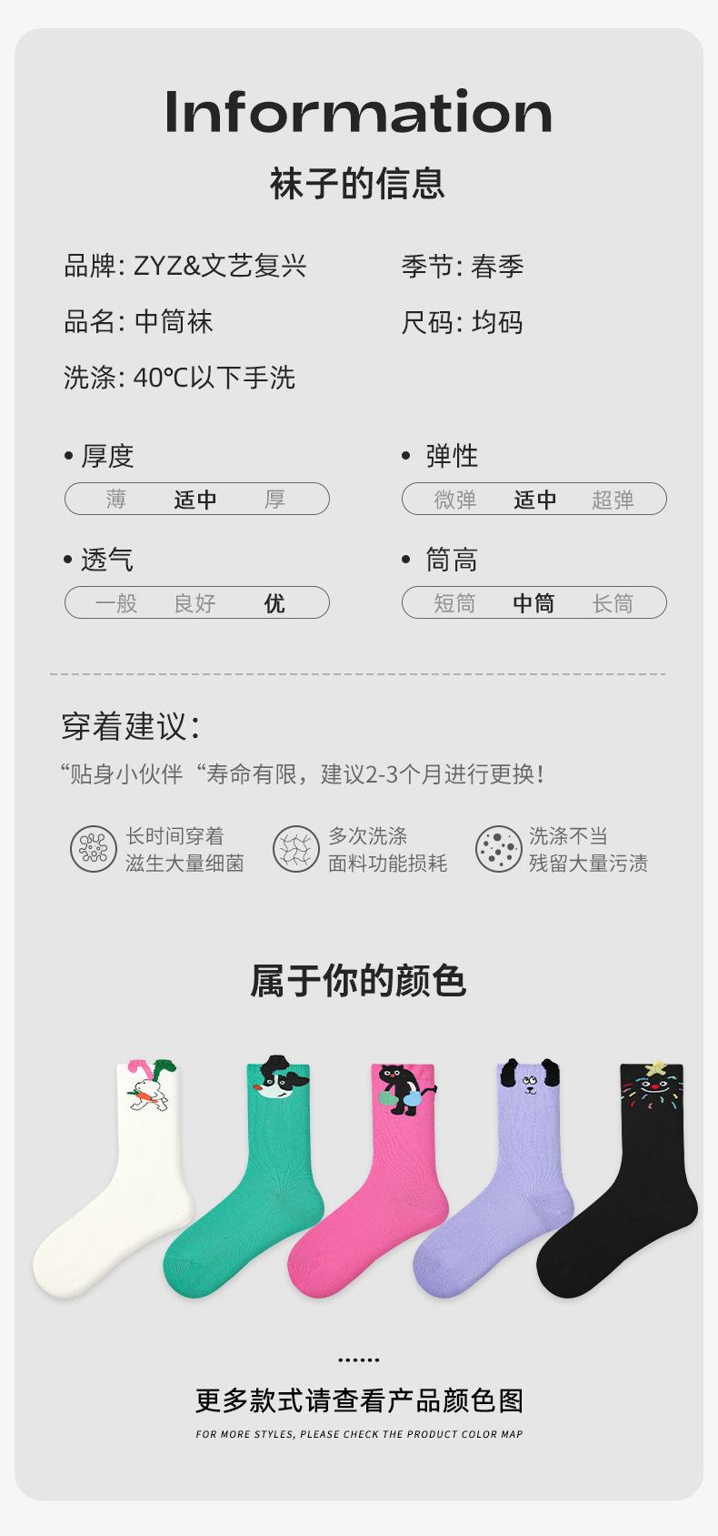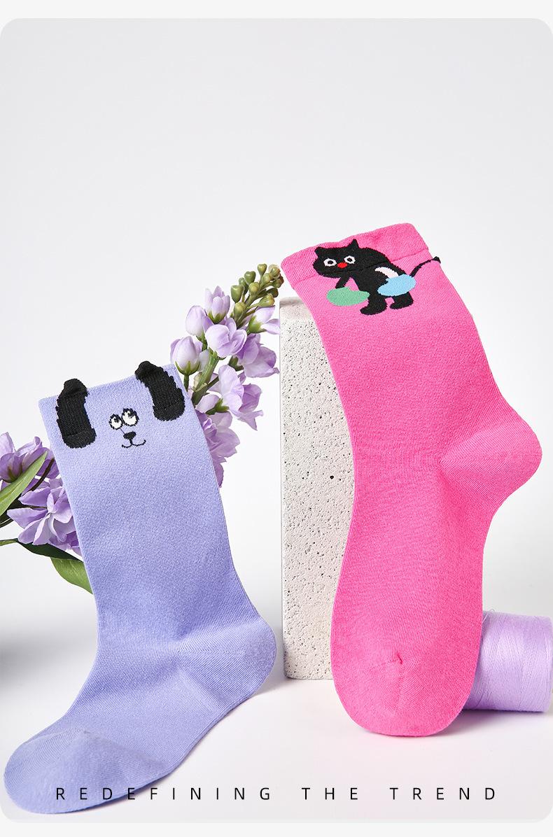 Calcetines Originales Renacentistas para Mujer Primavera y Verano Patrón Animal Tridimensional Calcetines de Media Caña Color Sólido Dibujos Animados Algodón Peinado Calcetines para Mujer