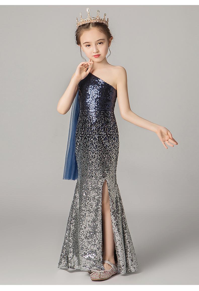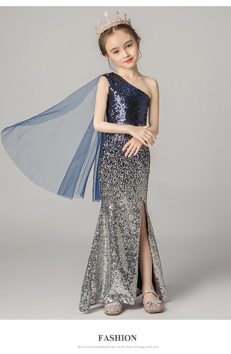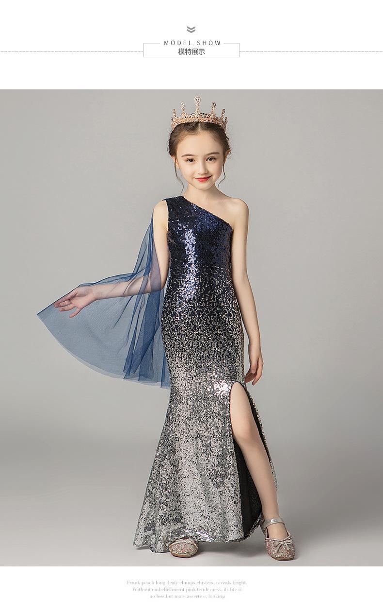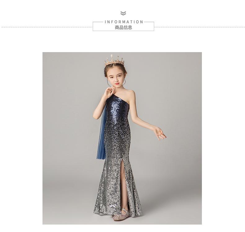 Vestido de noche infantil de verano para niña, vestido de princesa con cola de pez, modelo de pasarela, presentadora, vestido de actuación de piano