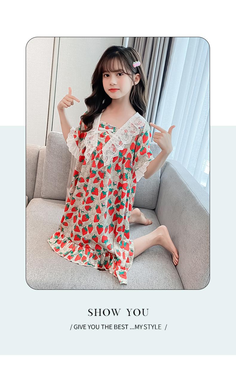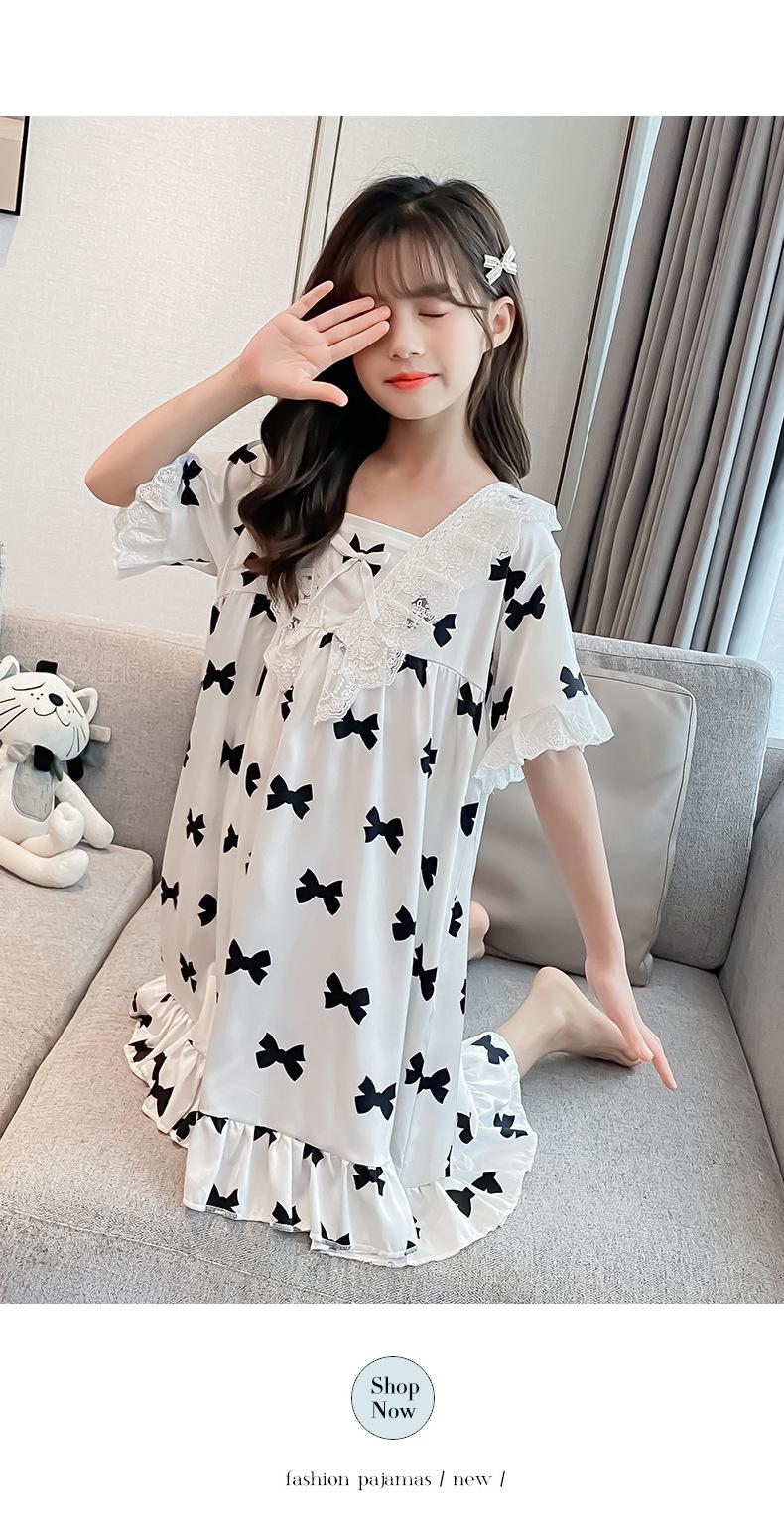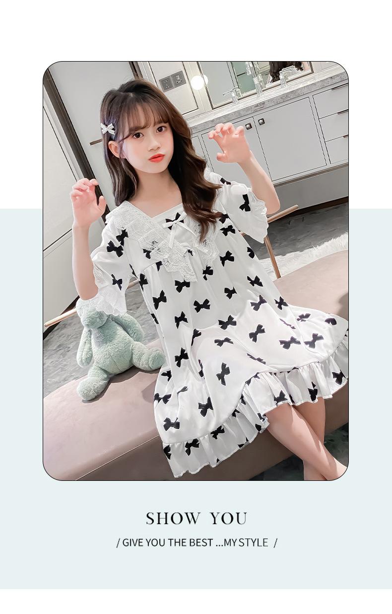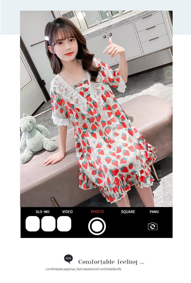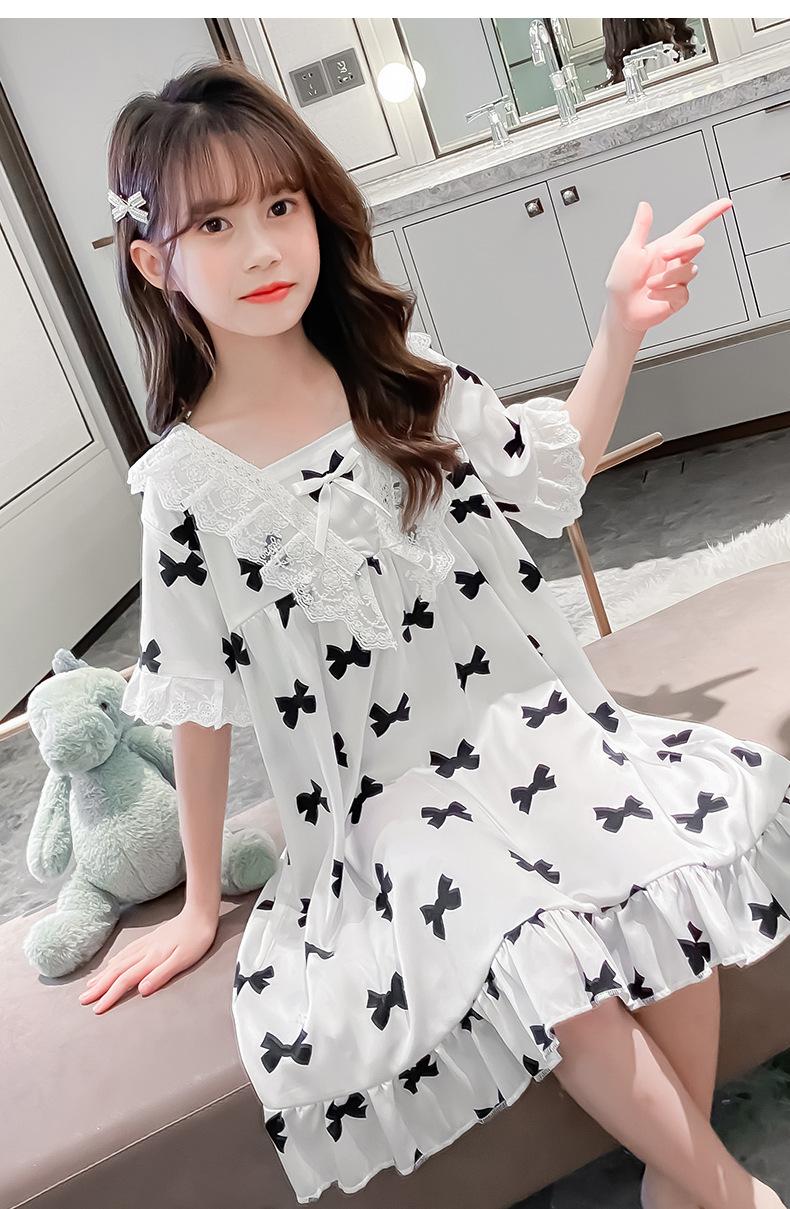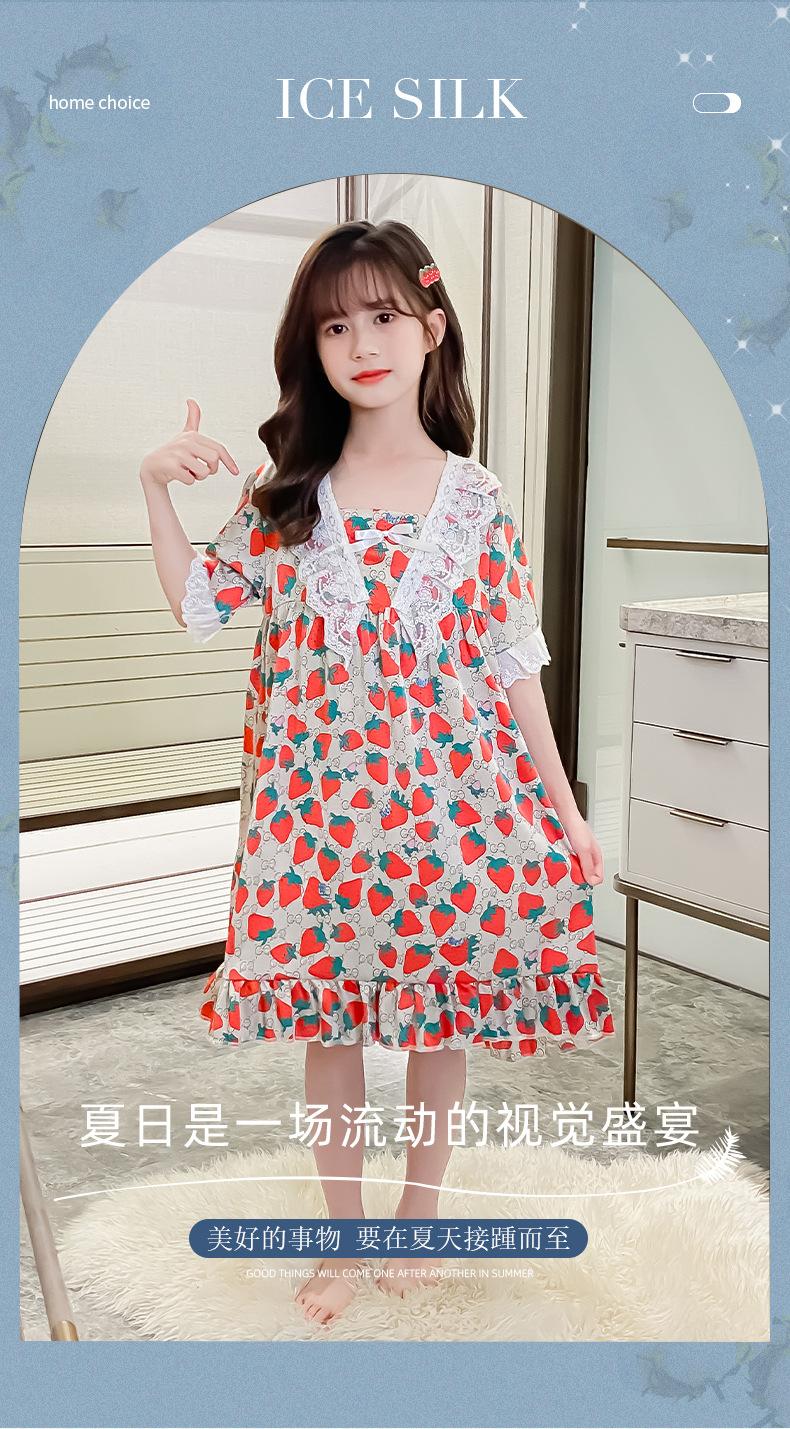Camisón de seda de hielo para niñas, estilo princesa, pijama fino de verano para bebés, ropa de hogar de estilo occidental para niñas grandes, ropa de verano para niñas