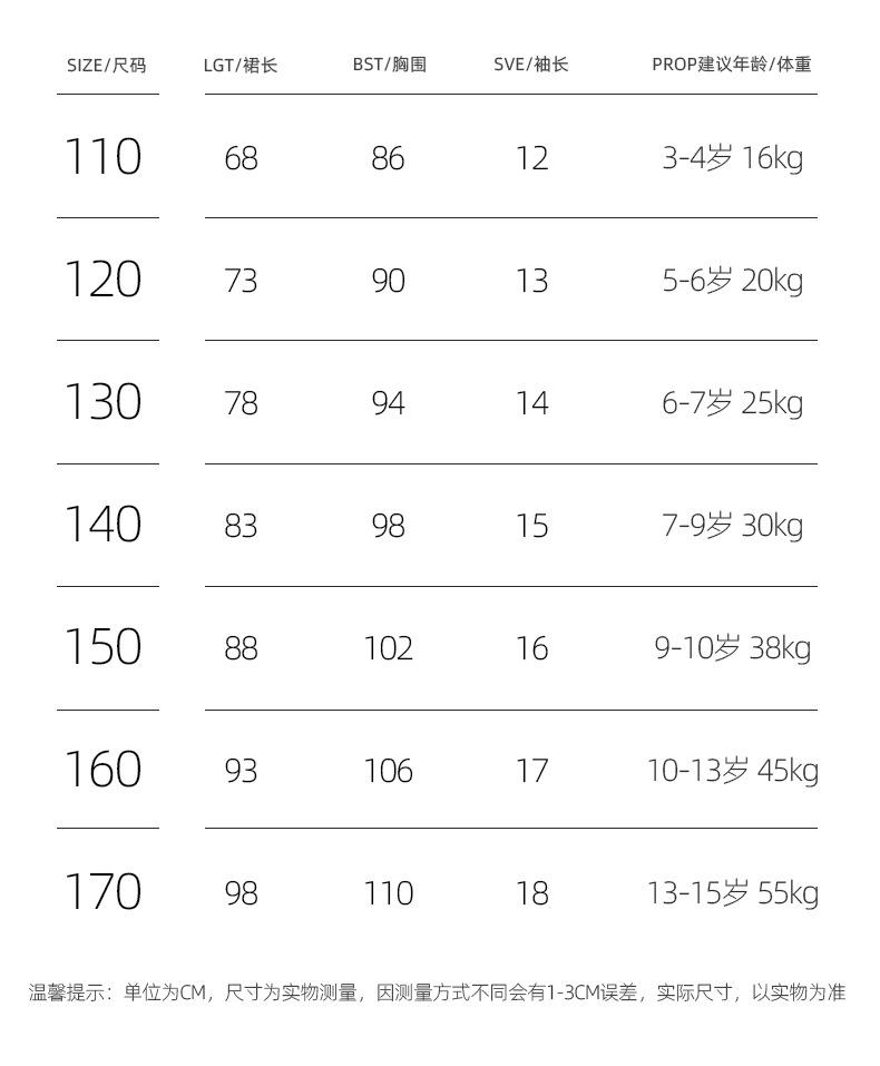 110cm, 120cm, 130cm, 140cm, 150cm, 160cm, 170cm