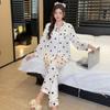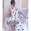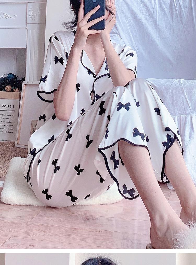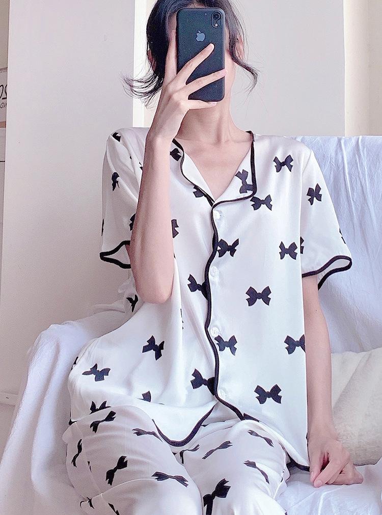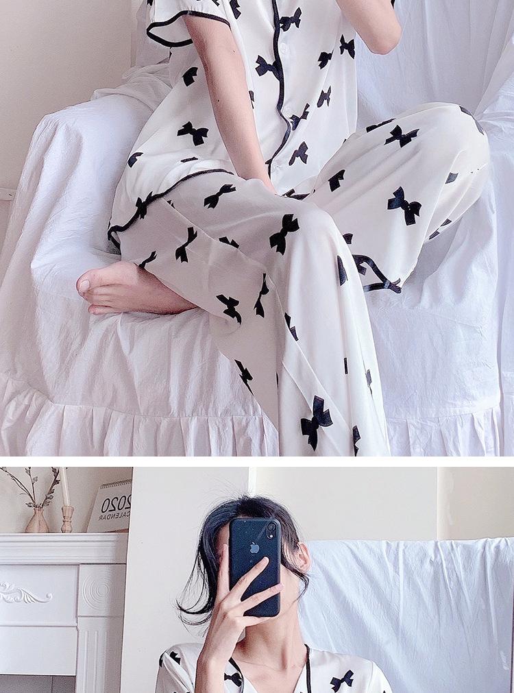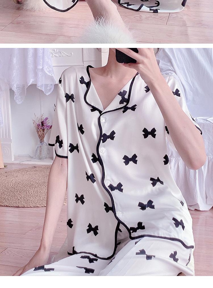 Pijamas de mujer nuevos de primavera y verano, pantalones de manga corta, ropa de casa, traje con lazo y cuello en V, cárdigan de seda helada de dos piezas, venta al por mayor