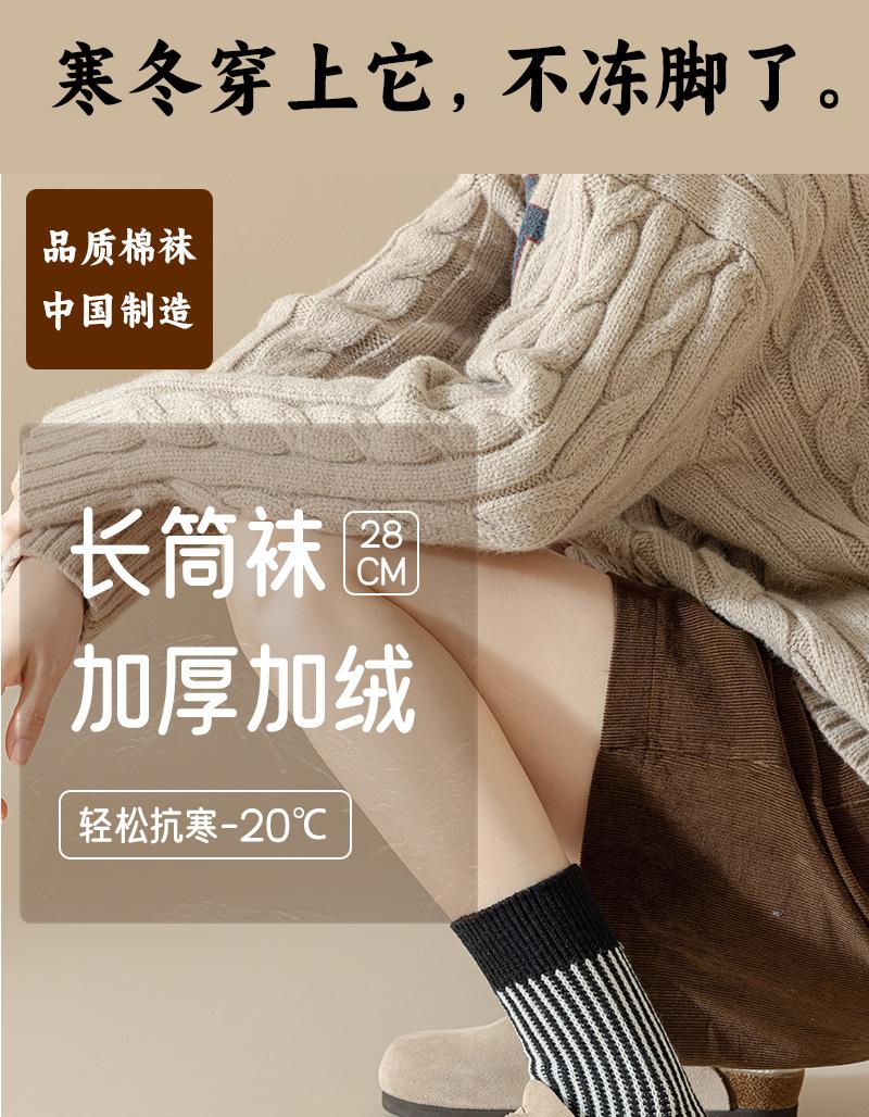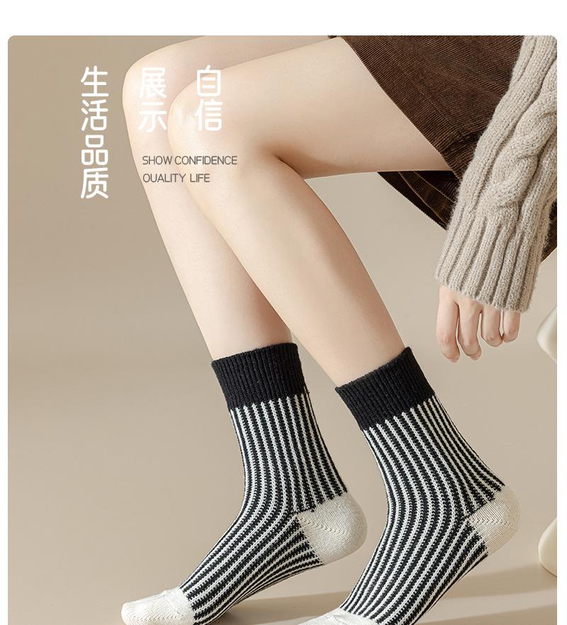 Calcetines nuevos de otoño e invierno para mujer, calcetines hasta la pantorrilla con doble aguja, costura de rayas verticales de doble dirección, calcetines de lana de conejo, calcetines de cachemira cálidos y gruesos.