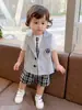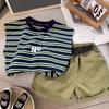 Traje de Verano para Niño 2025 Nueva Ropa para Niños Ropa para Bebé a Rayas Chaleco Conjunto de Dos Piezas Pantalones Cortos Ropa para Niños