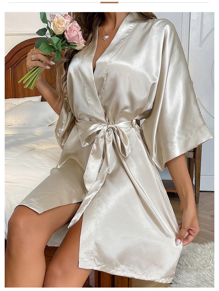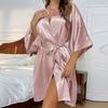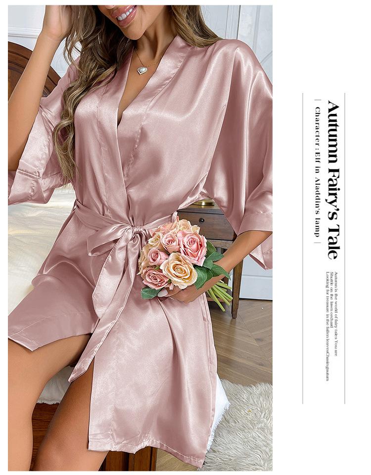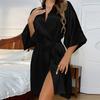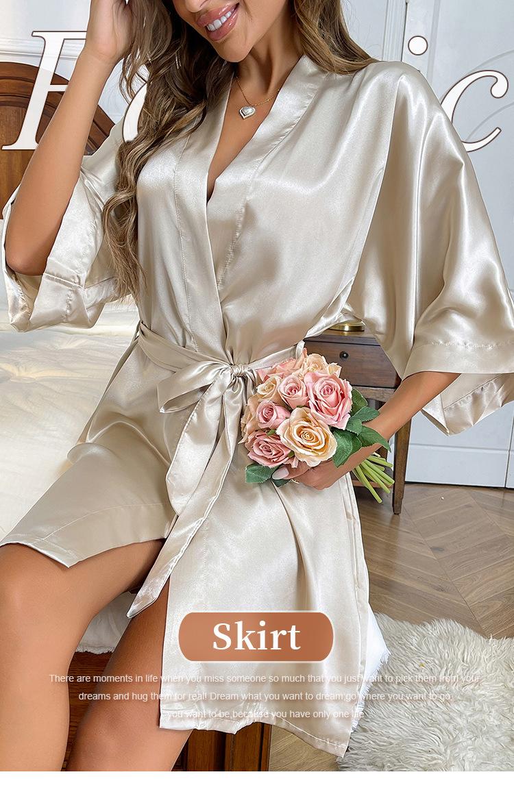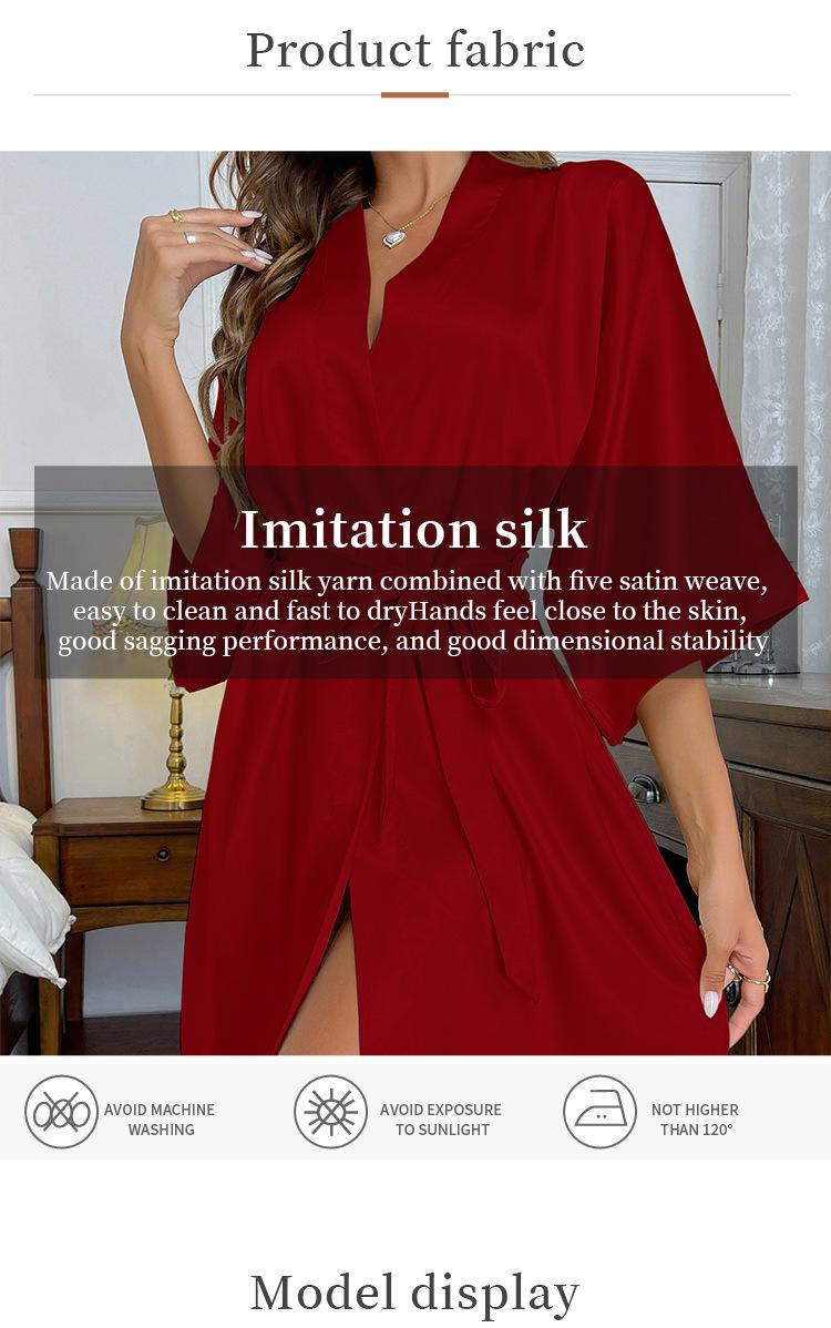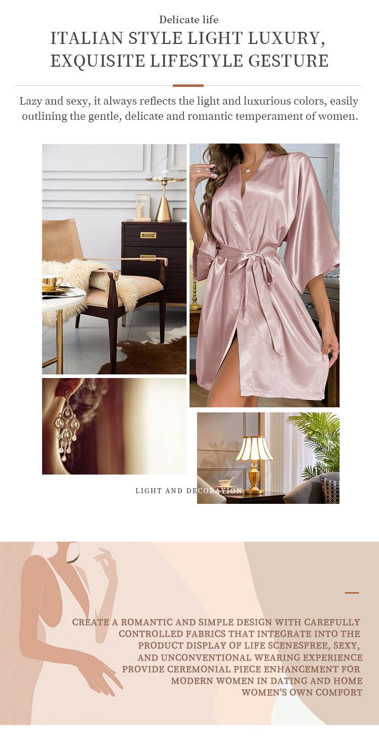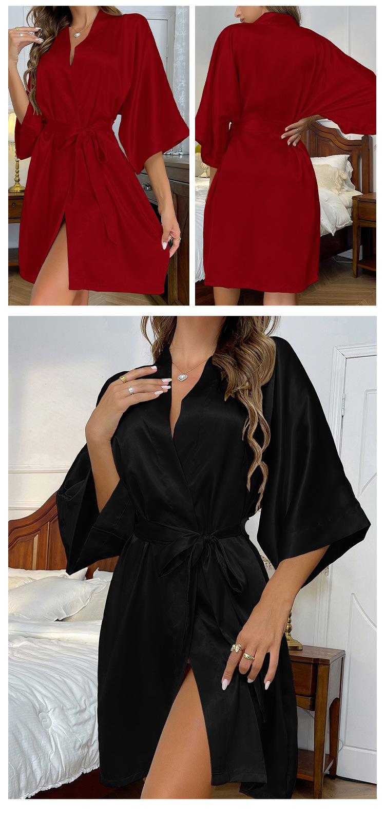 Denilyn - Cárdigan cruzado con cordones para mujer, bata de baño sexy de seda, ropa informal fina para el hogar, pijama