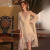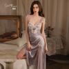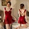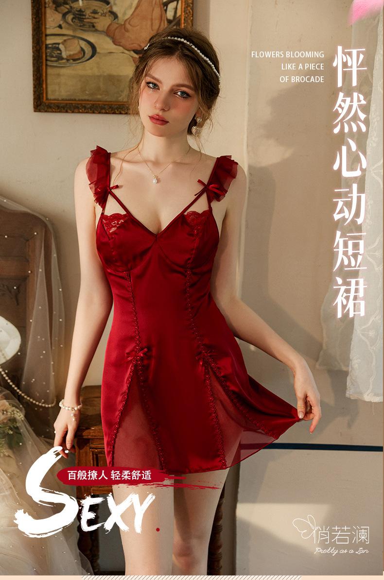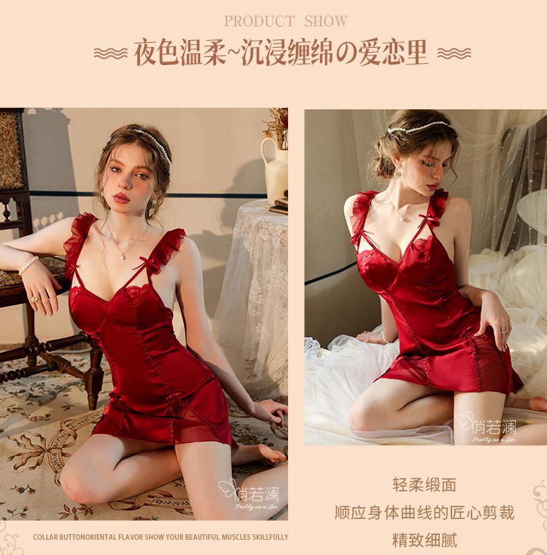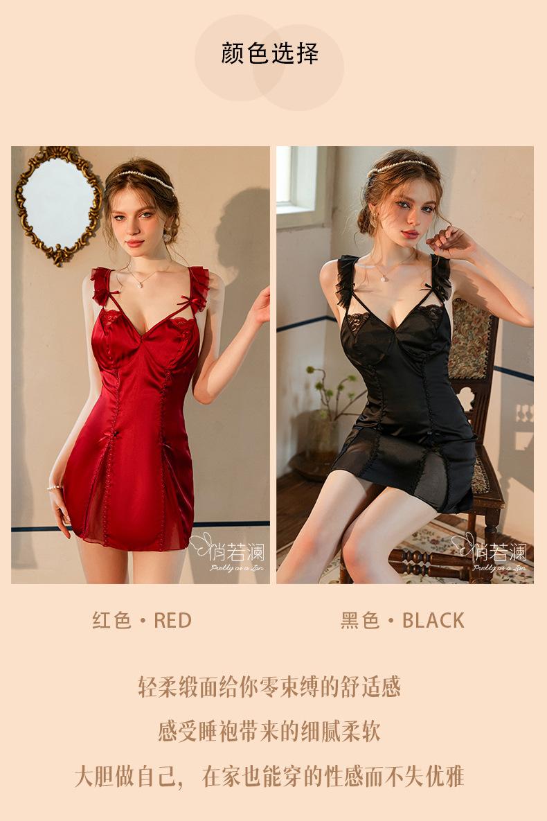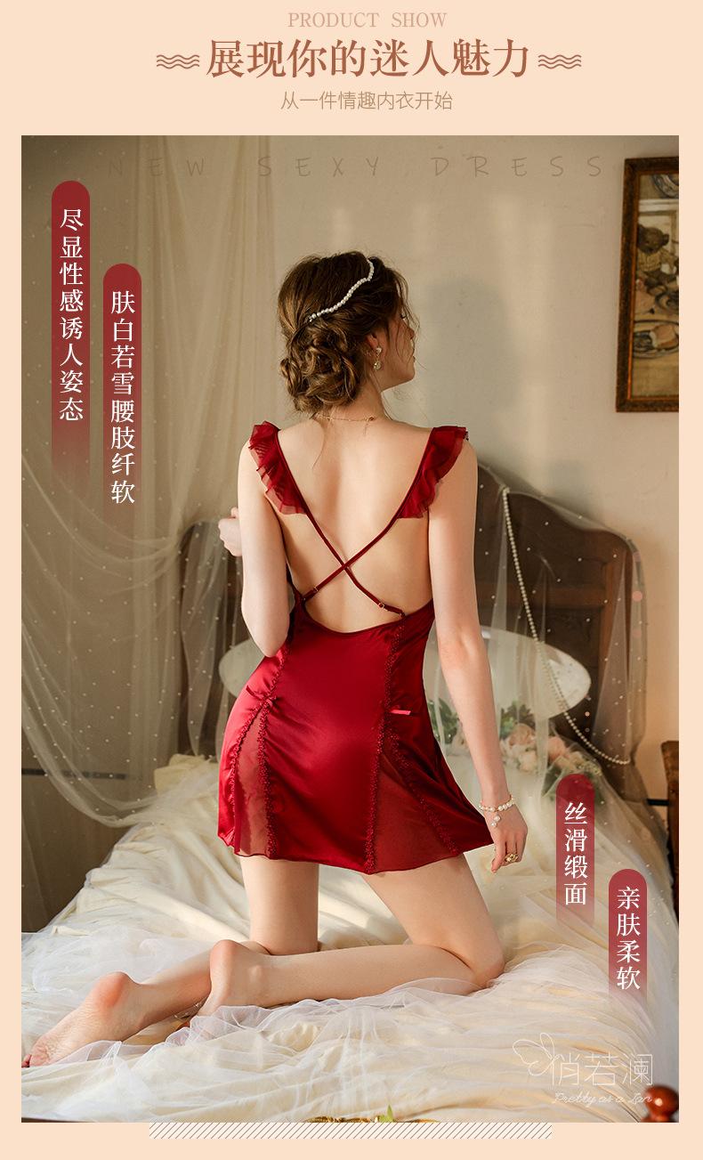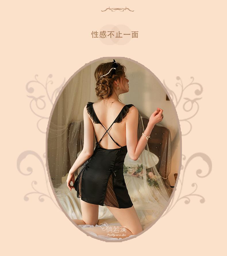 Ruolan pijama sexy lencería sexy falda con tirantes satén costuras de malla hueco sin espalda camisón ropa para el hogar 9804