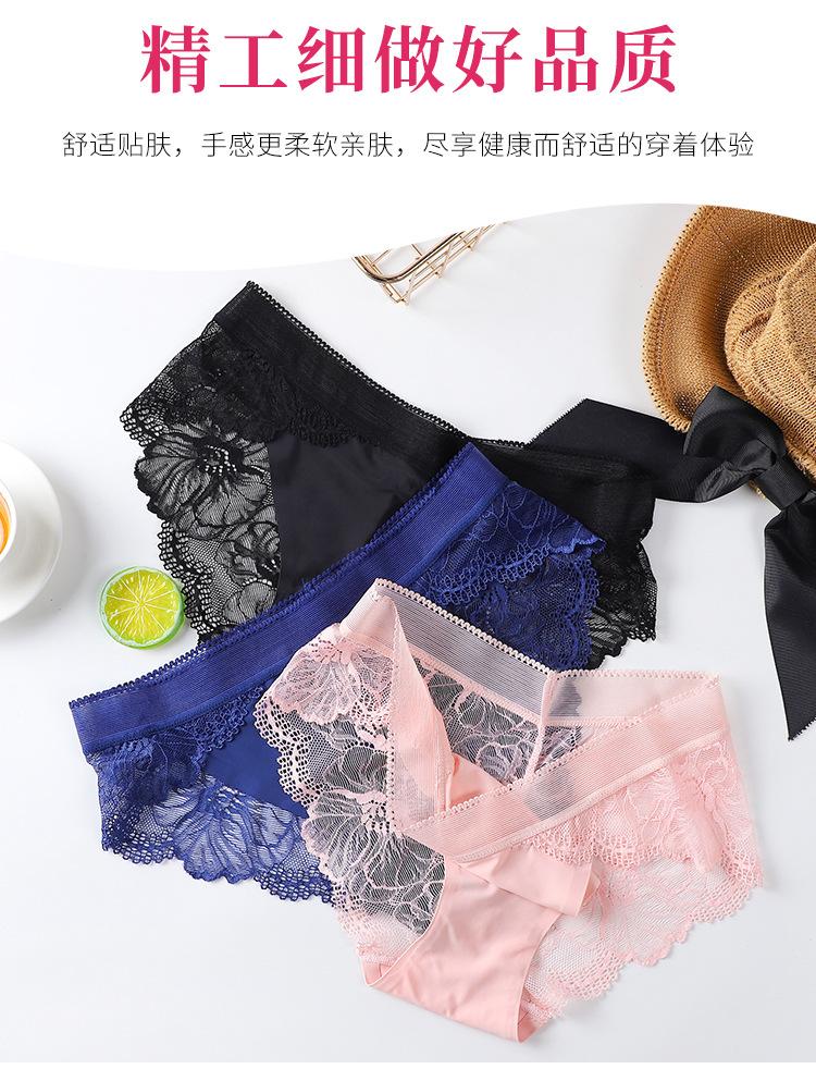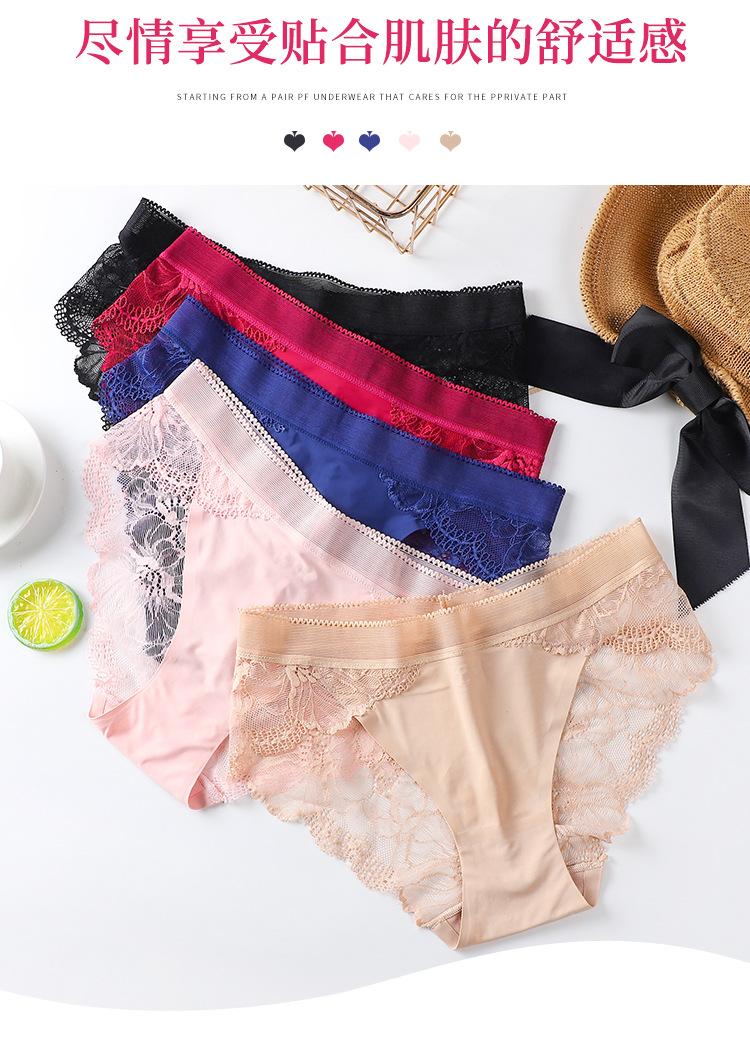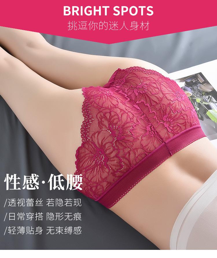 Ropa Interior Sexy de Encaje Ropa Interior para Mujer Cintura Baja Talla Grande Cadera Seda Helada Transparente Sin Costuras Entrepierna de Algodón Calzones para Mujer