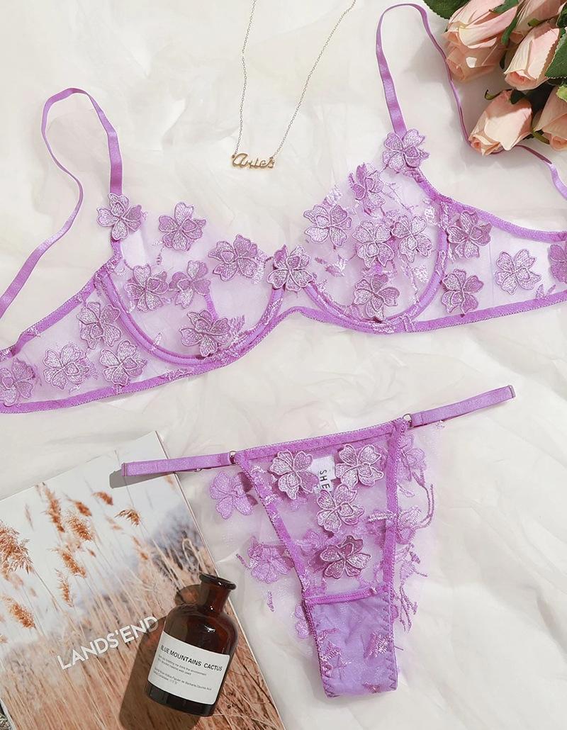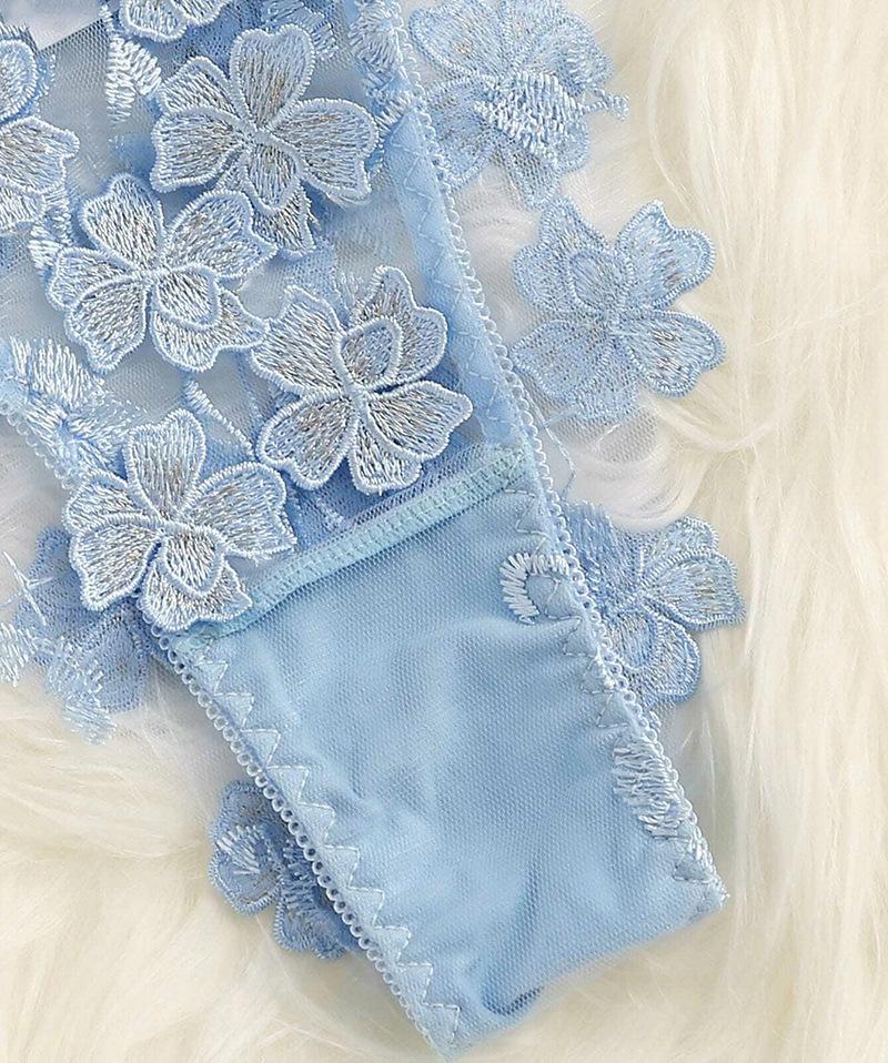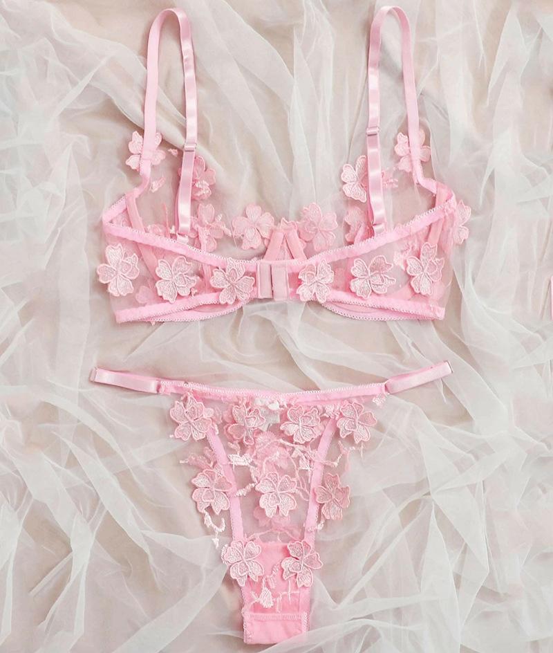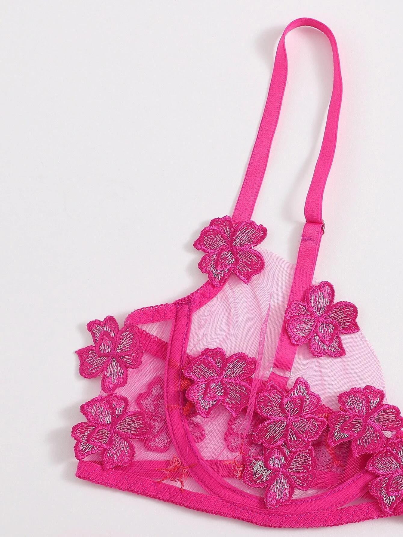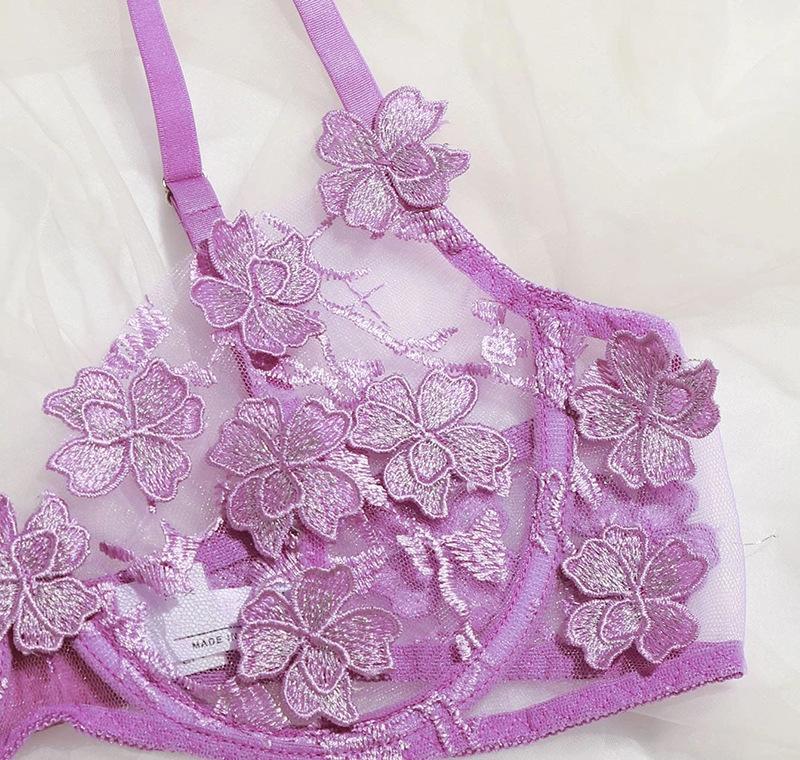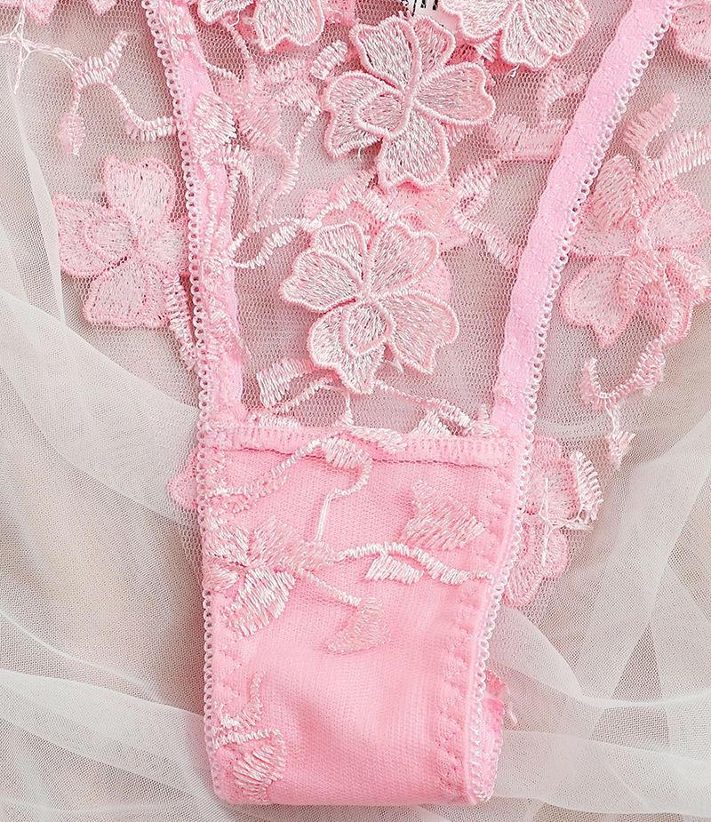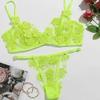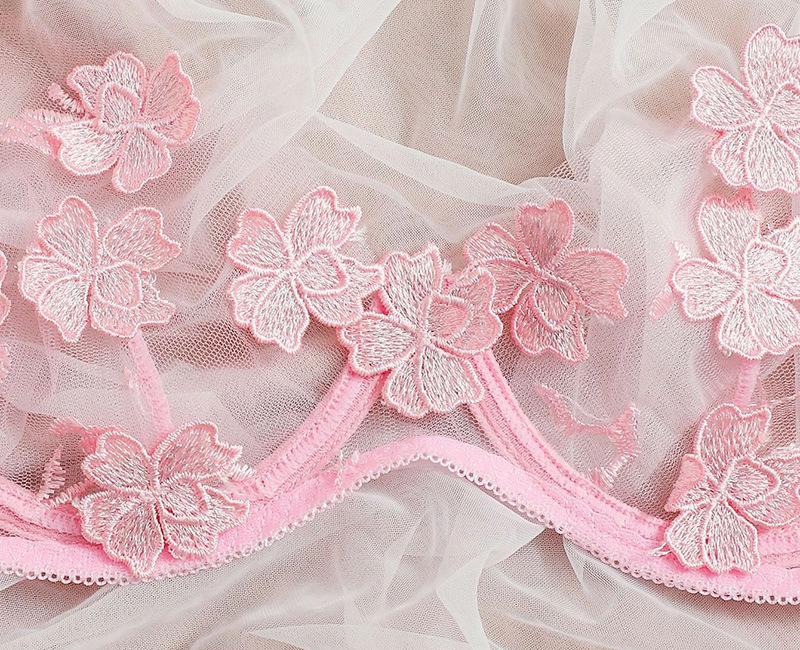 Traje sexy europeo y americano para mujer, aplique bordado de flores frescas, malla, sujetador sexy, ventas directas de fábrica