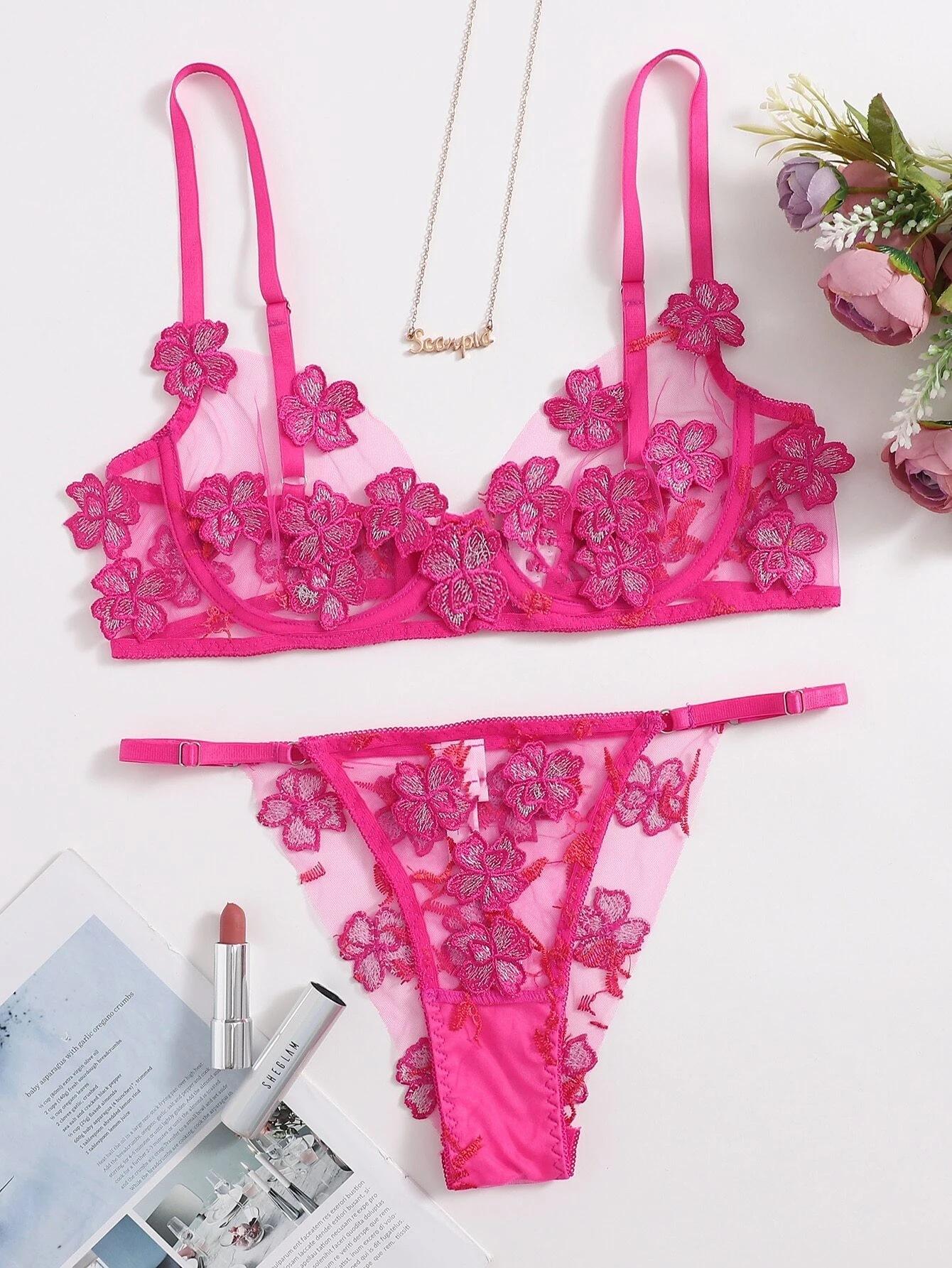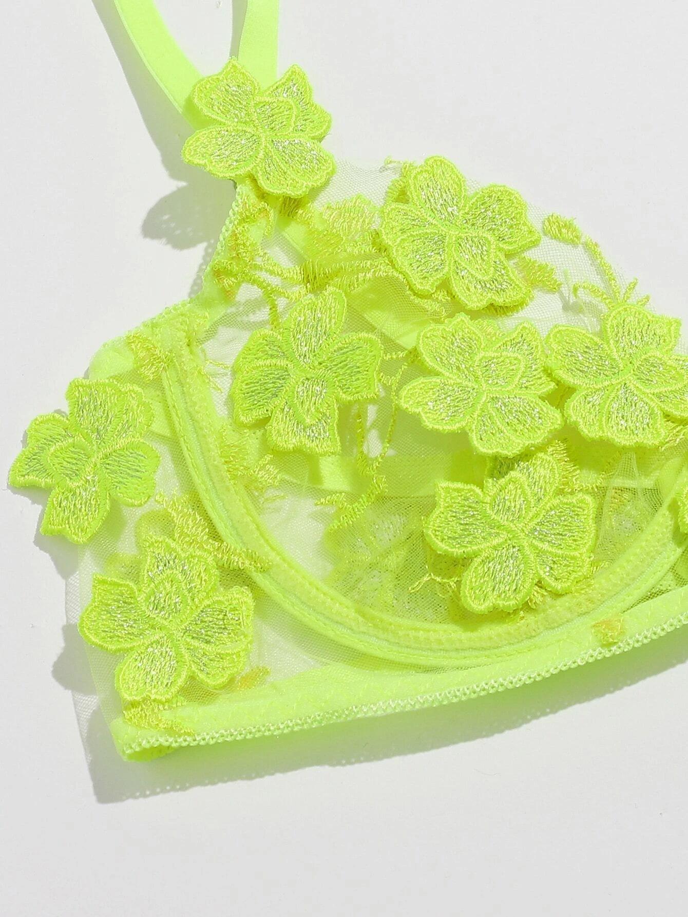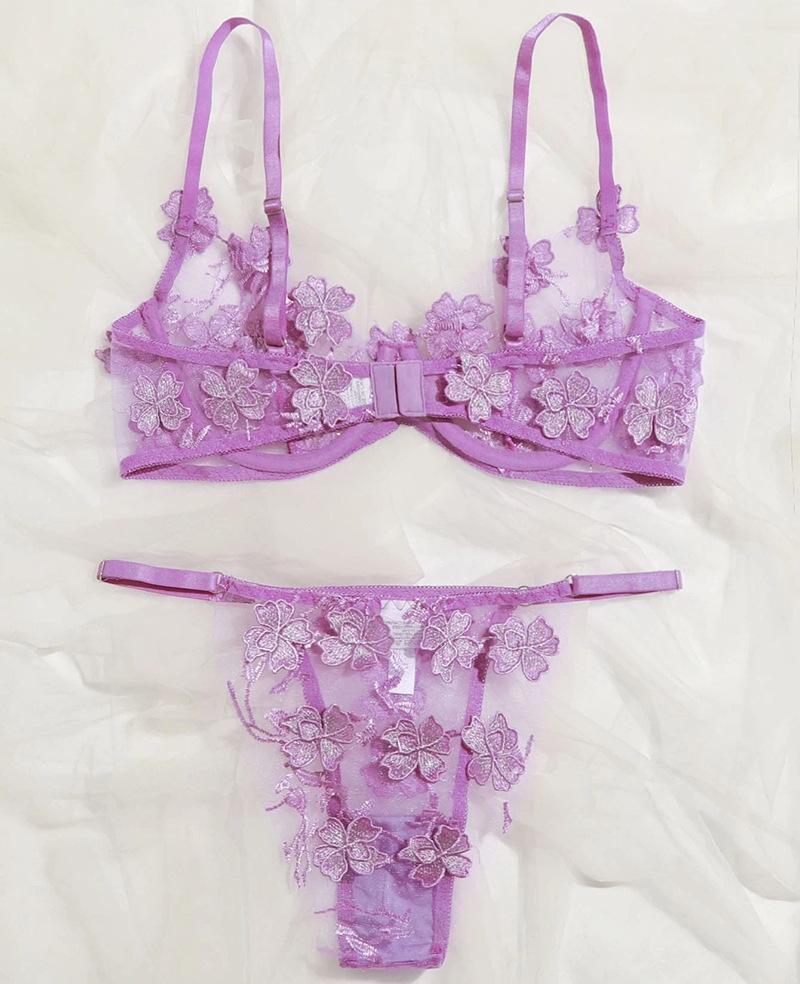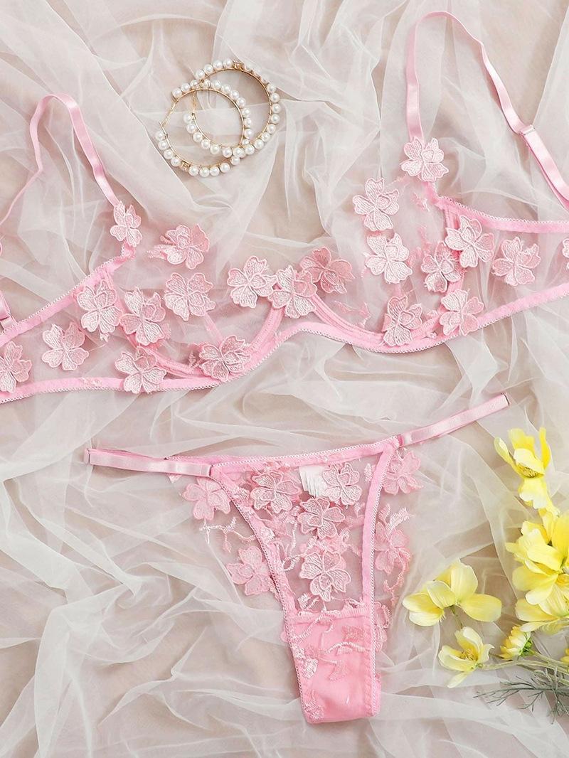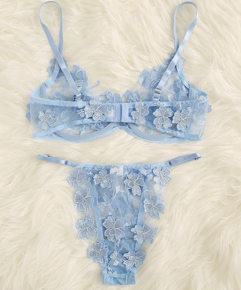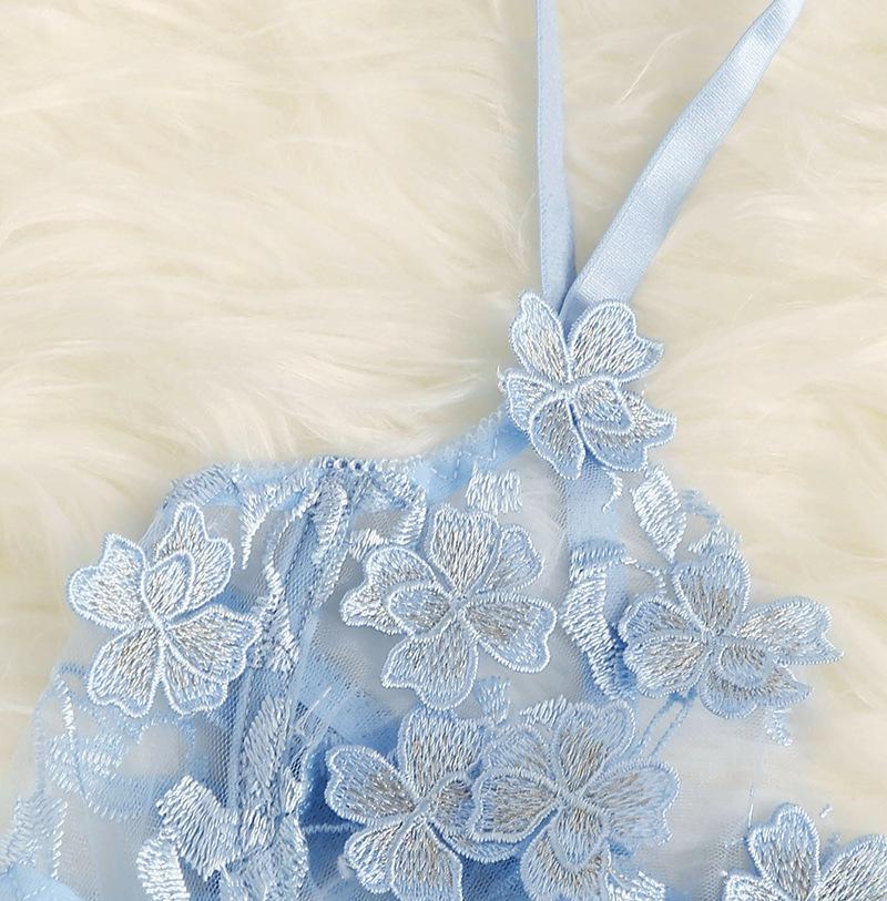 Traje sexy europeo y americano para mujer, aplique bordado de flores frescas, malla, sujetador sexy, ventas directas de fábrica
