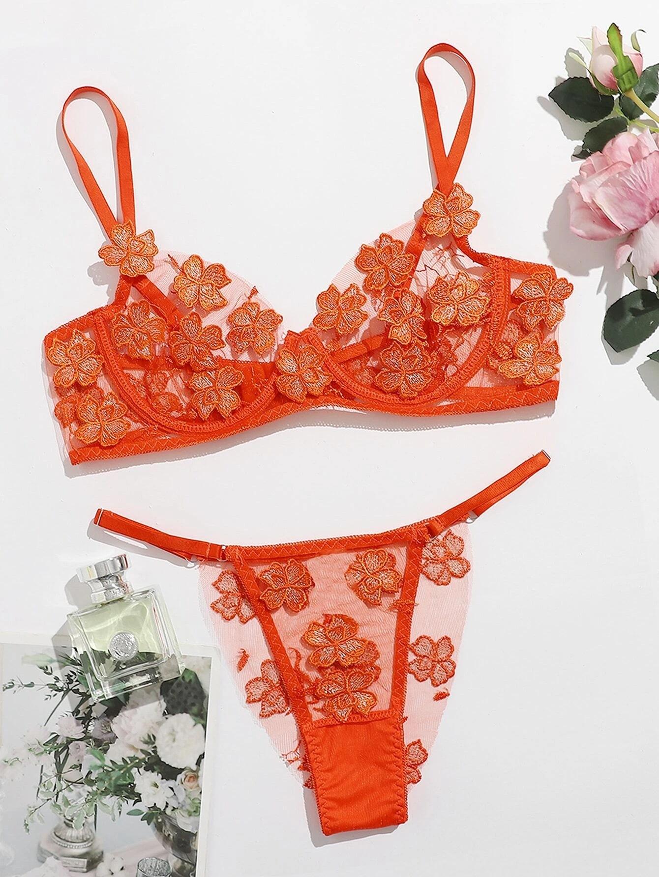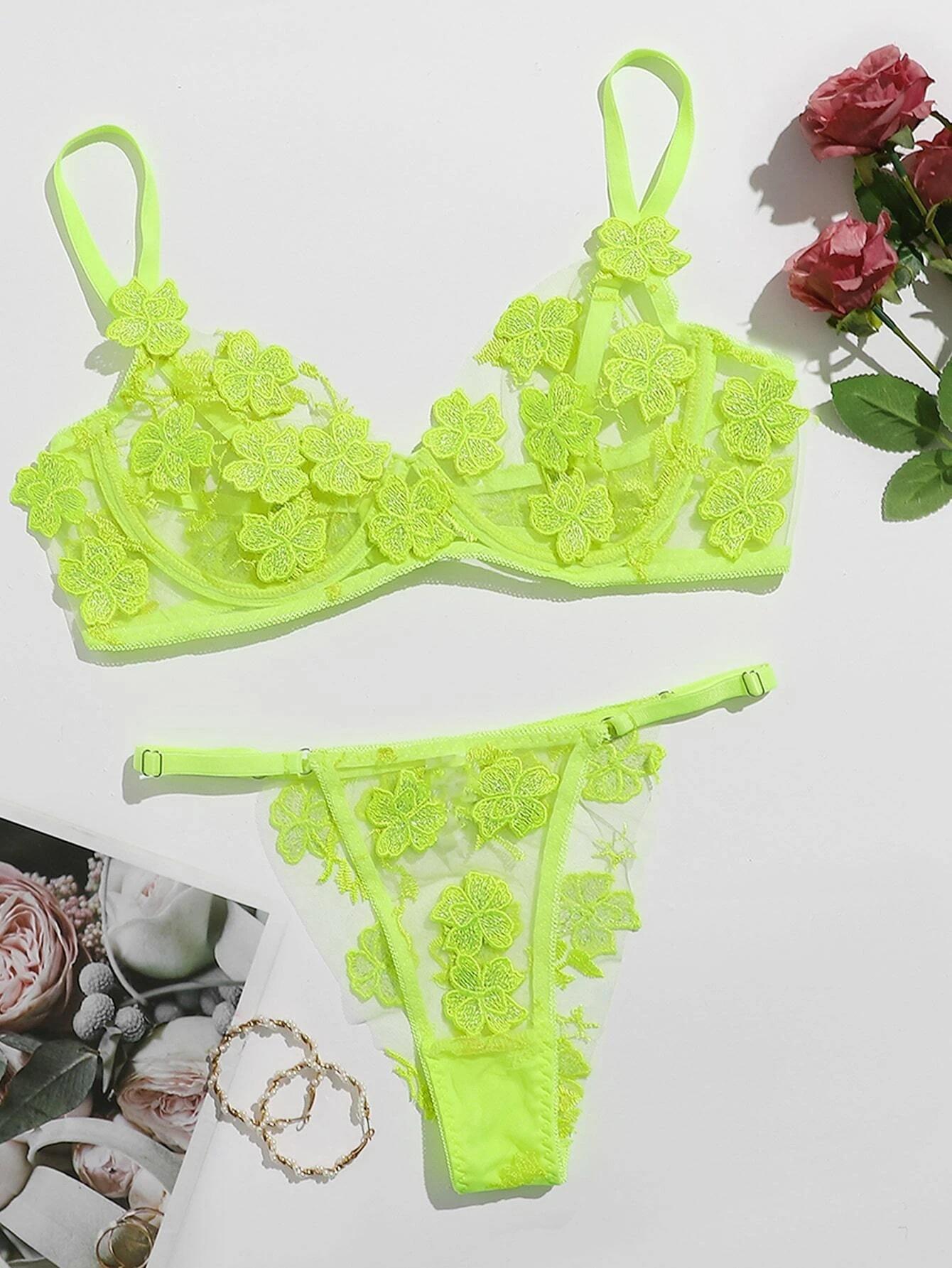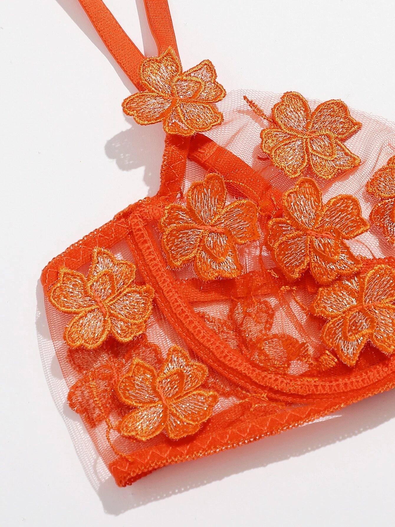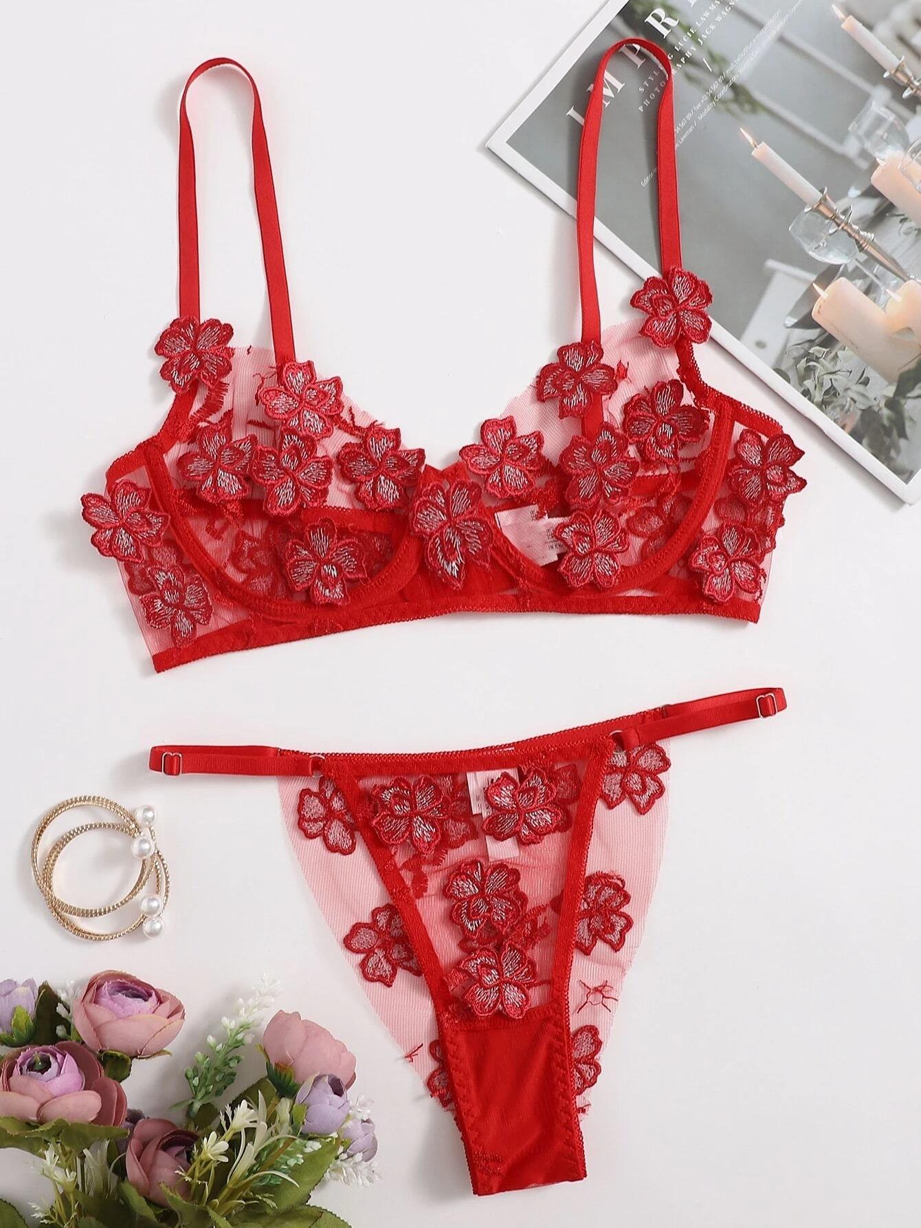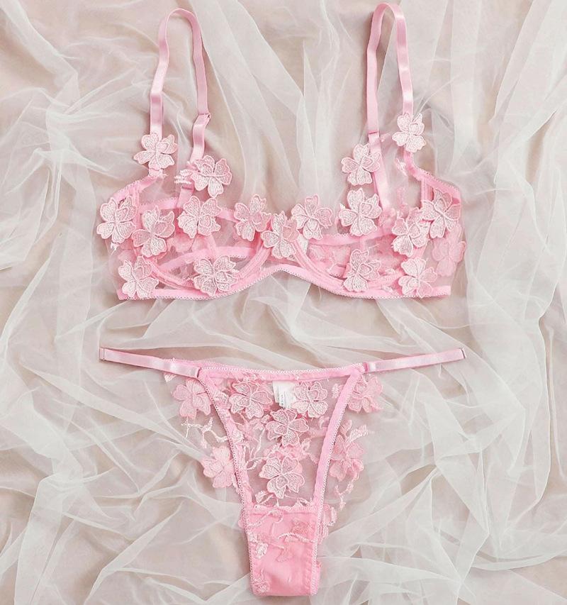 Traje sexy europeo y americano para mujer, aplique bordado de flores frescas, malla, sujetador sexy, ventas directas de fábrica