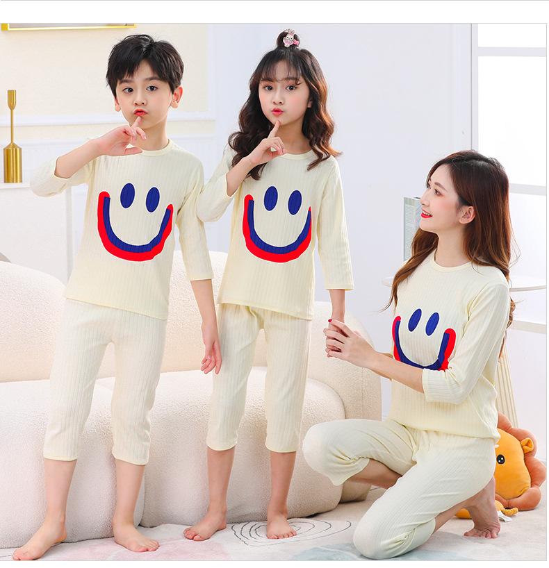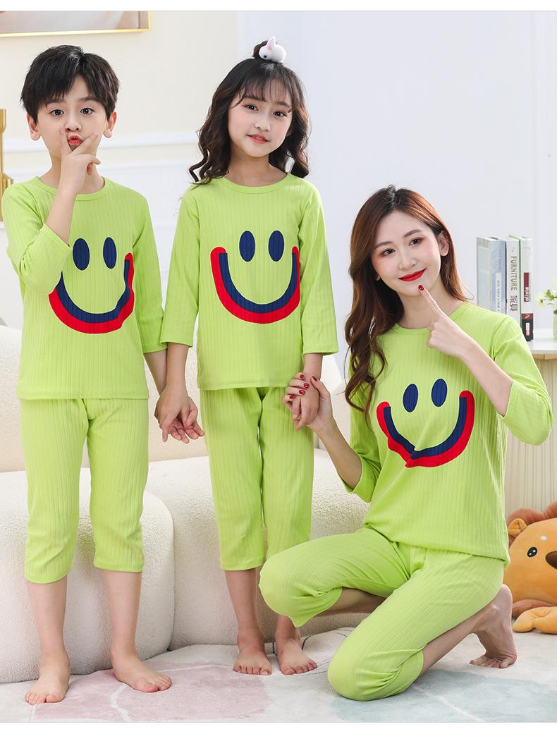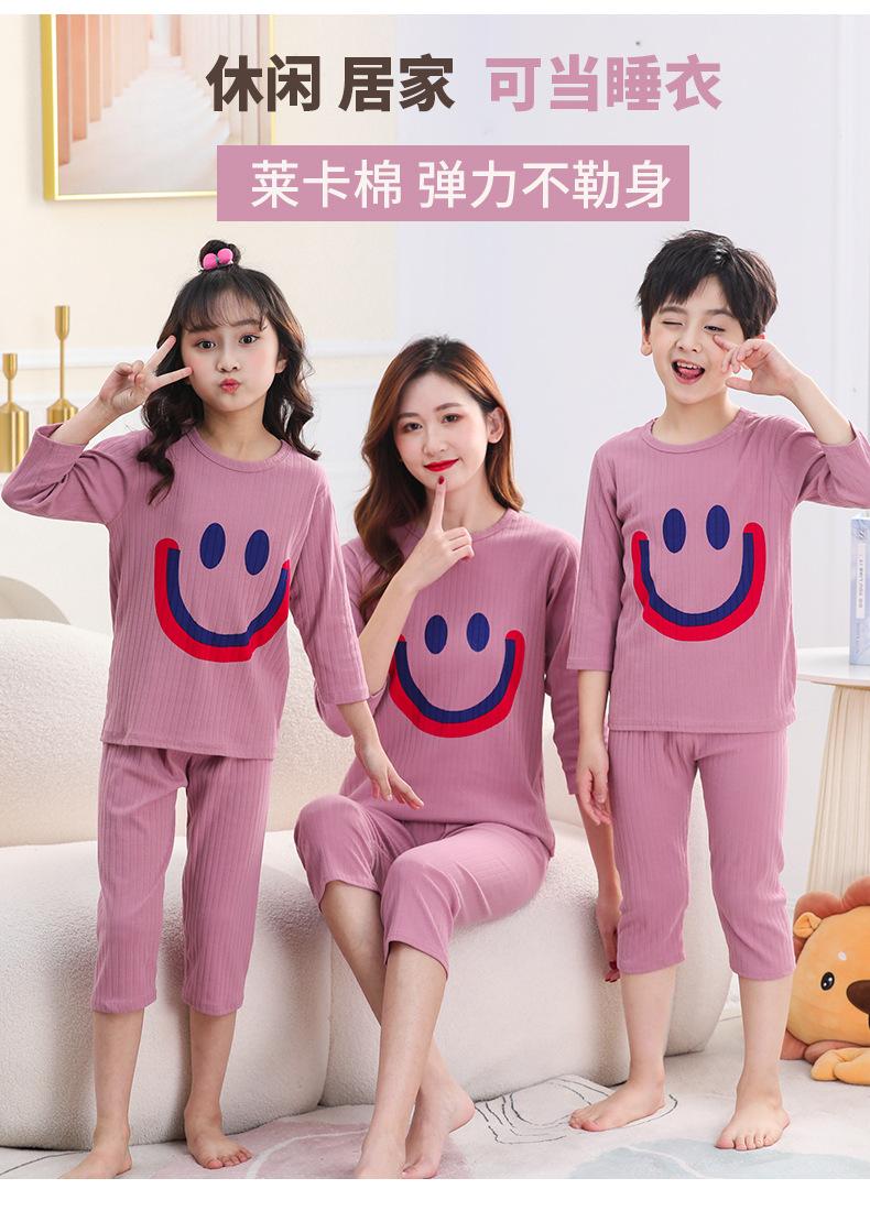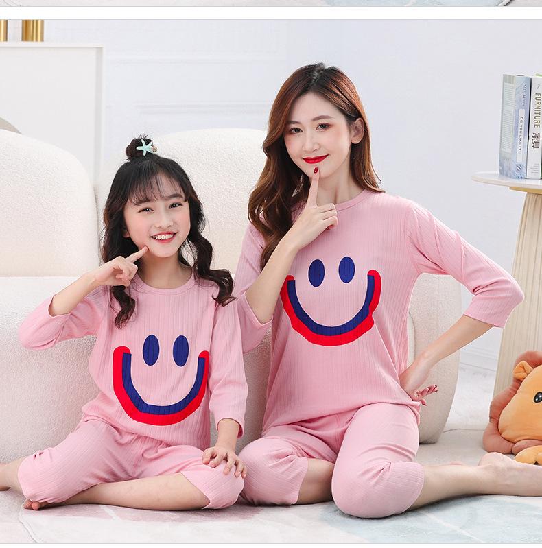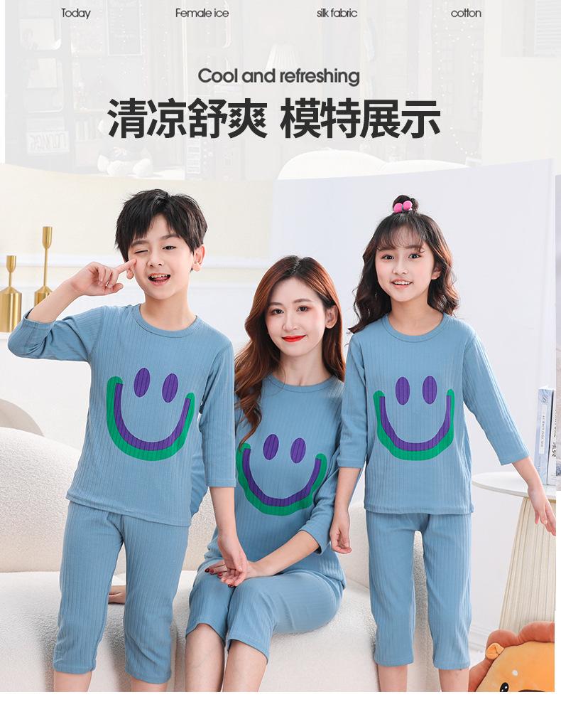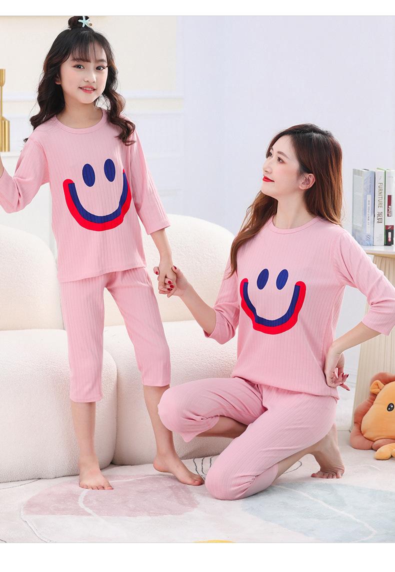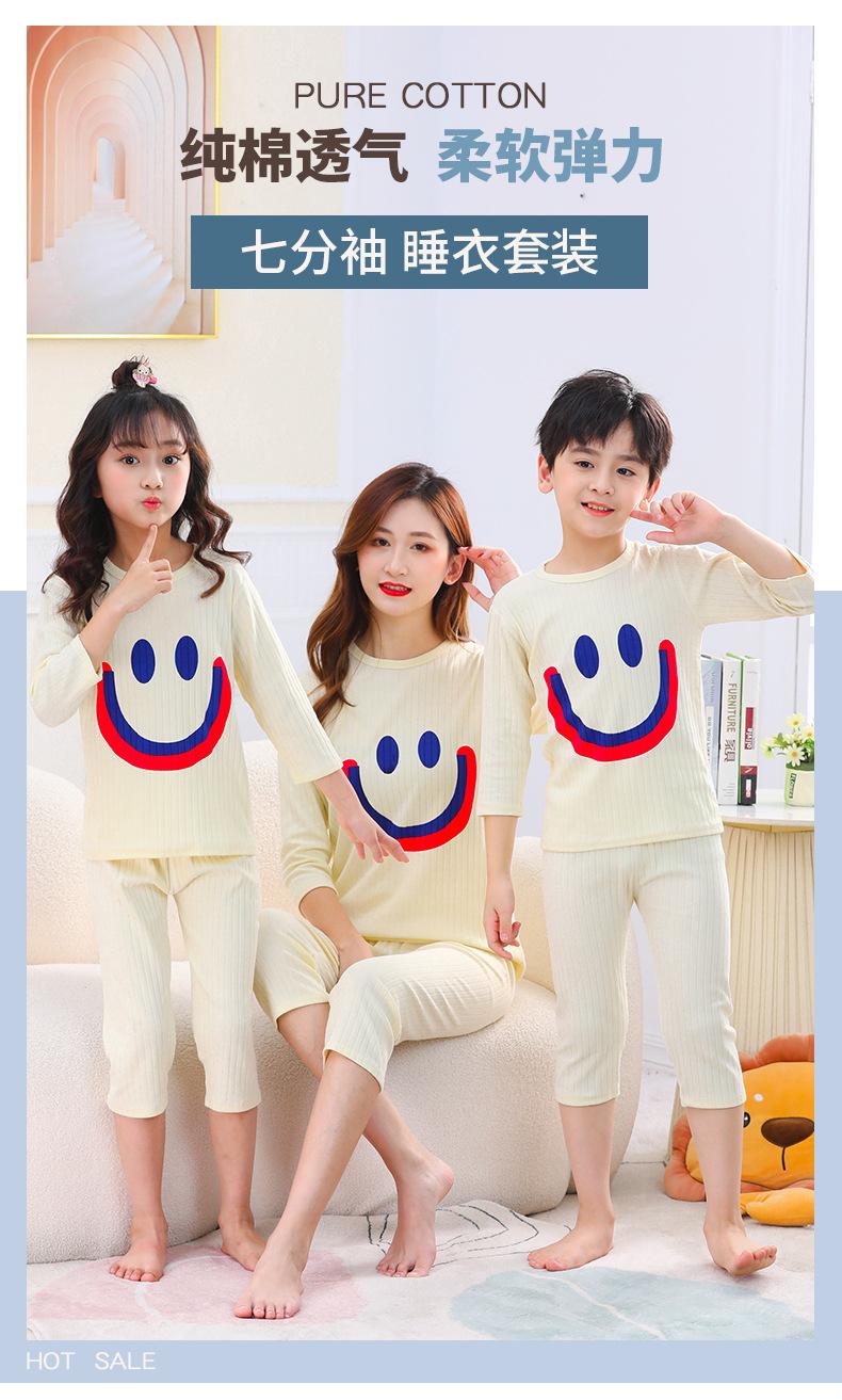 Pijamas para niños Pijamas de algodón puro para niños Verano Delgadas Ropa para el hogar para padres e hijos Traje de siete puntos y manga corta Ropa para aire acondicionado para niños y niñas