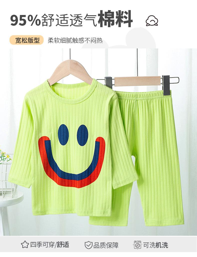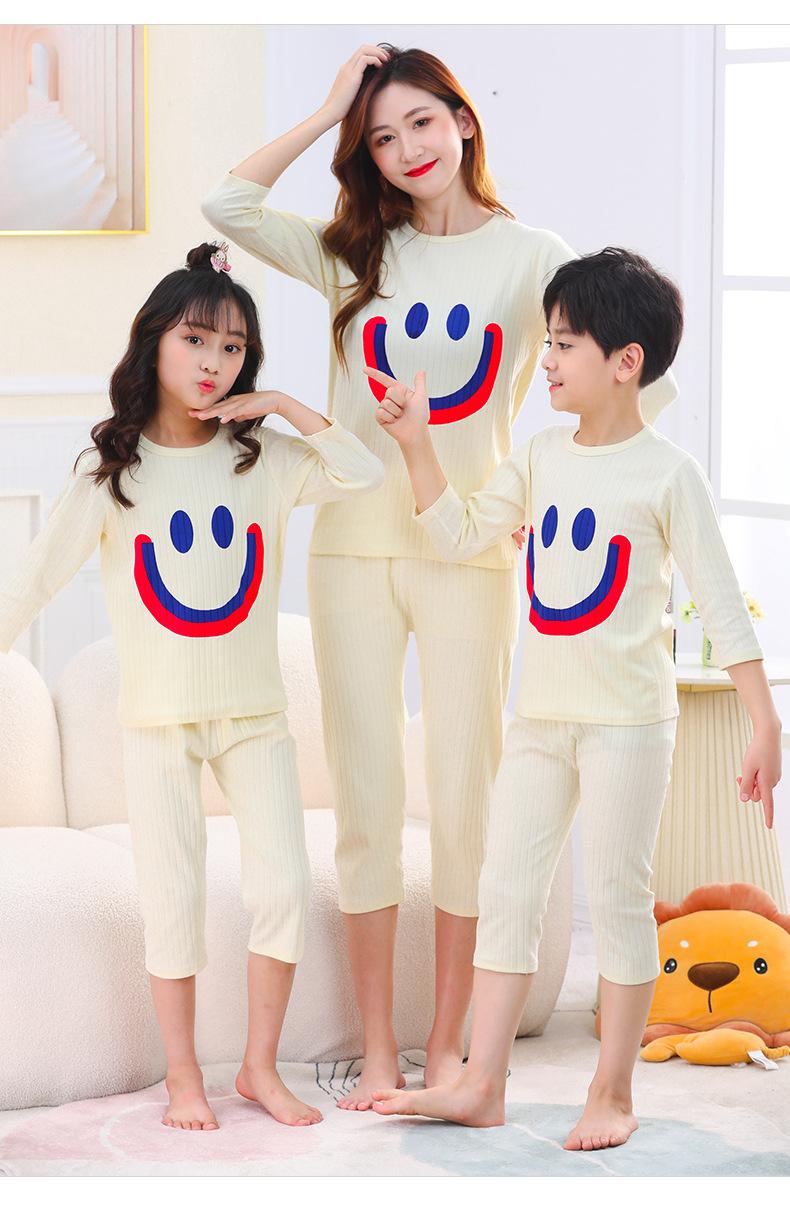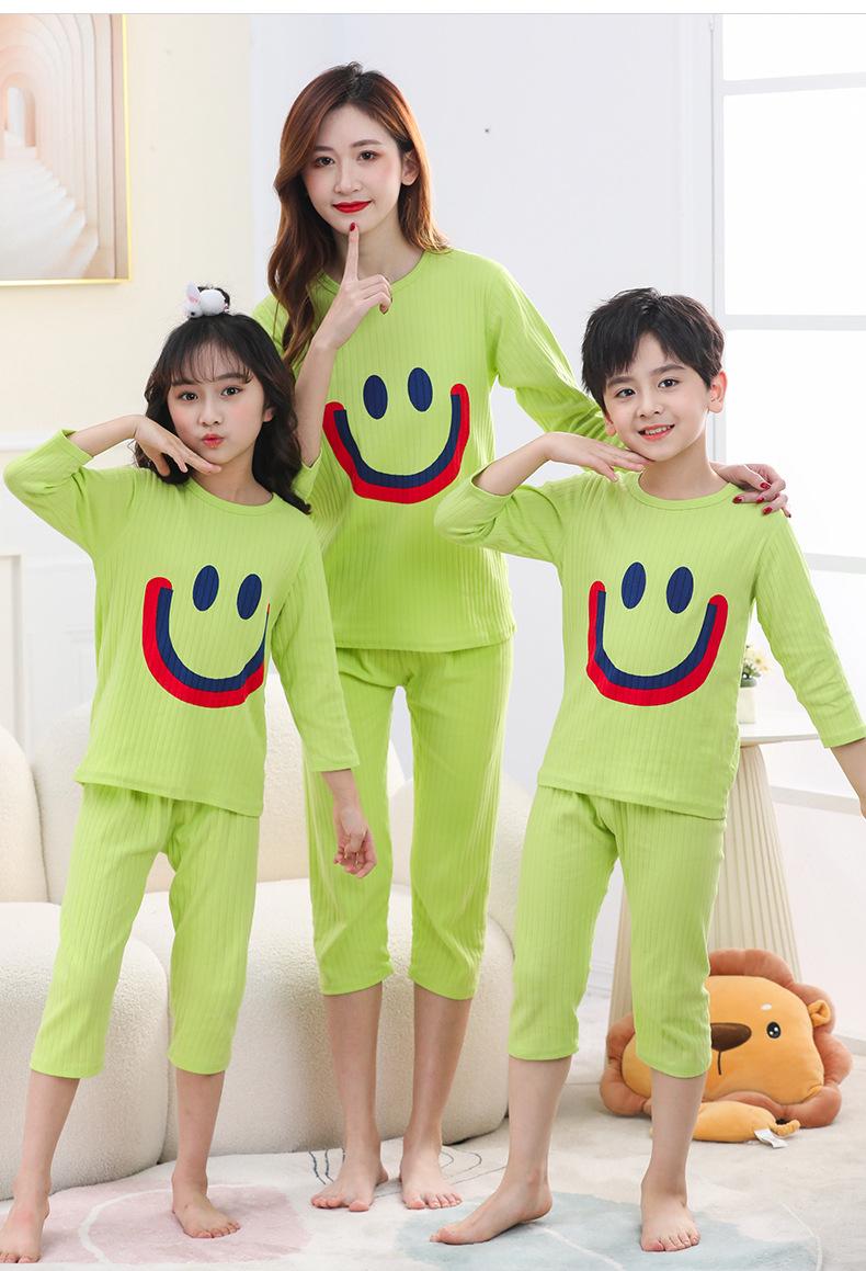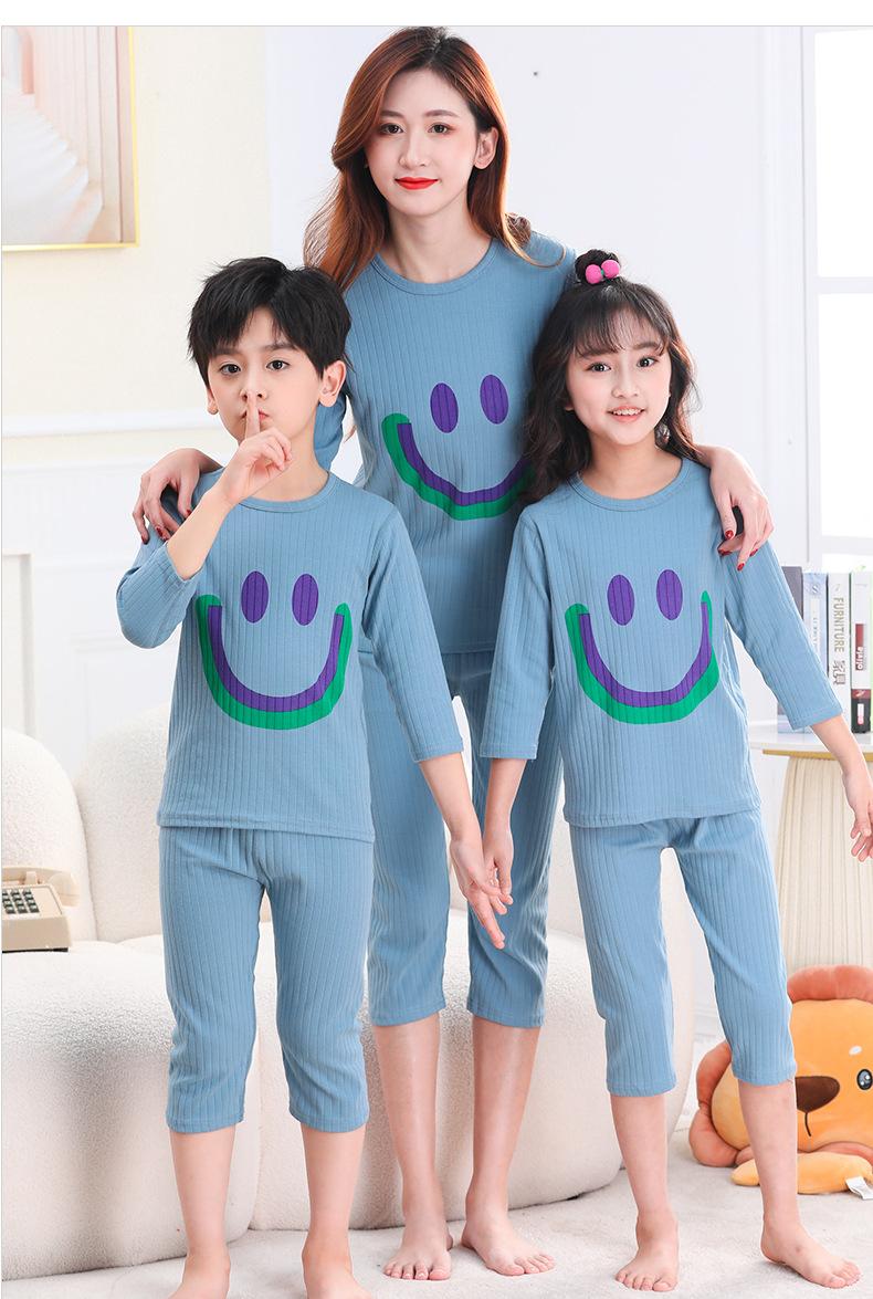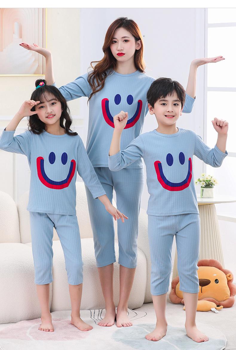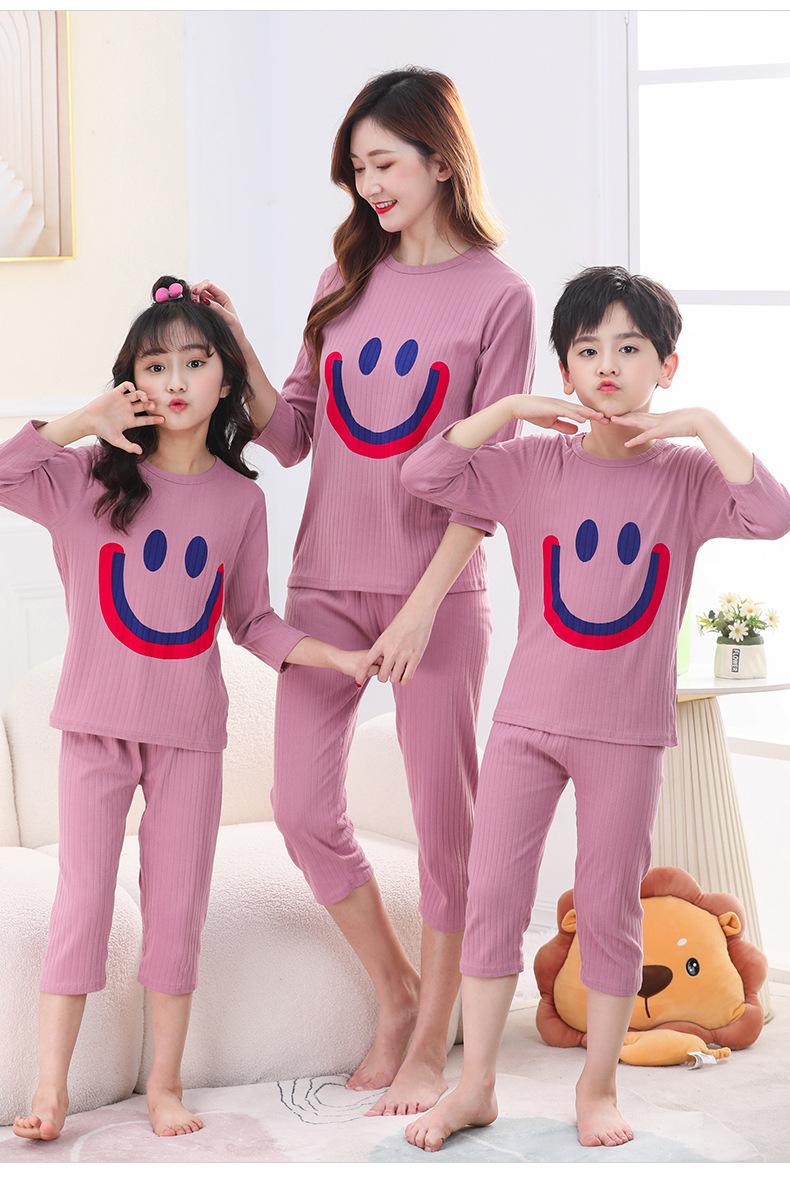 Pijamas para niños Pijamas de algodón puro para niños Verano Delgadas Ropa para el hogar para padres e hijos Traje de siete puntos y manga corta Ropa para aire acondicionado para niños y niñas