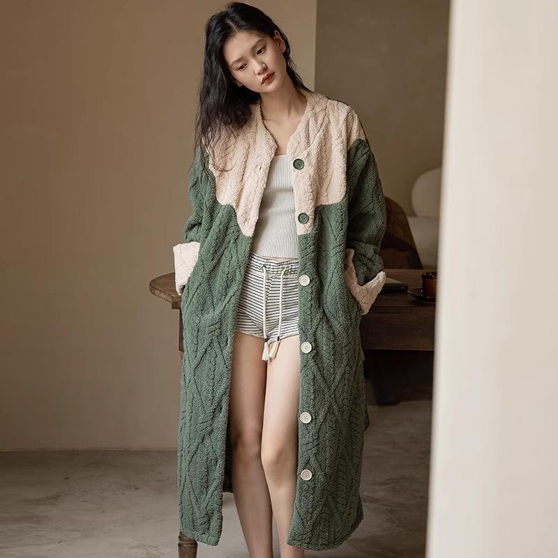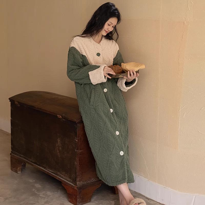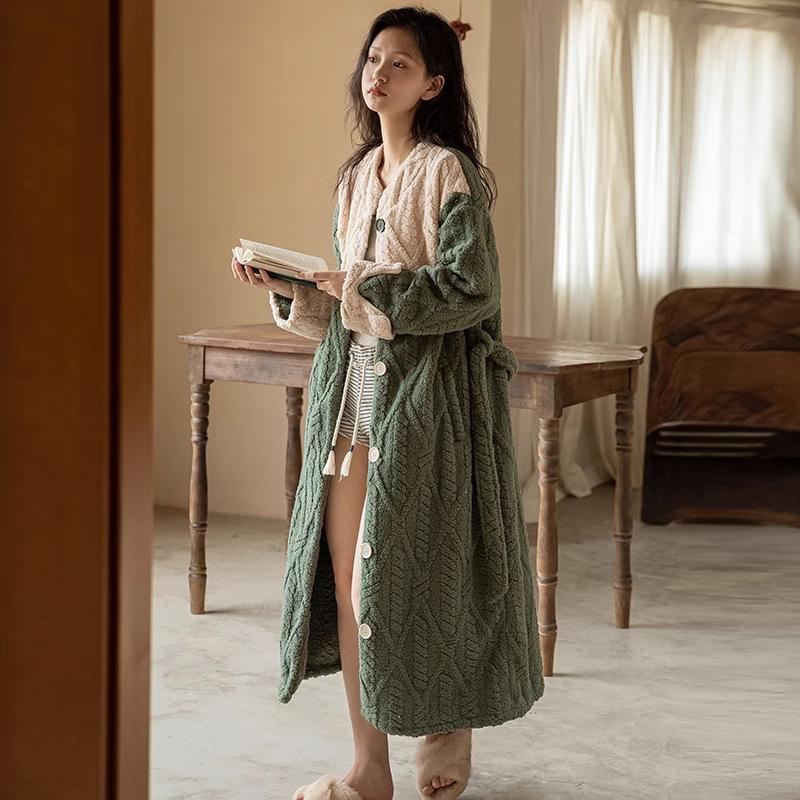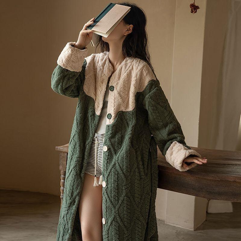Camisón de Franela Zumashi para Mujer Otoño e Invierno Pijama Largo Se Puede Usar Afuera Ropa Exterior de Alta Gama Bata 120