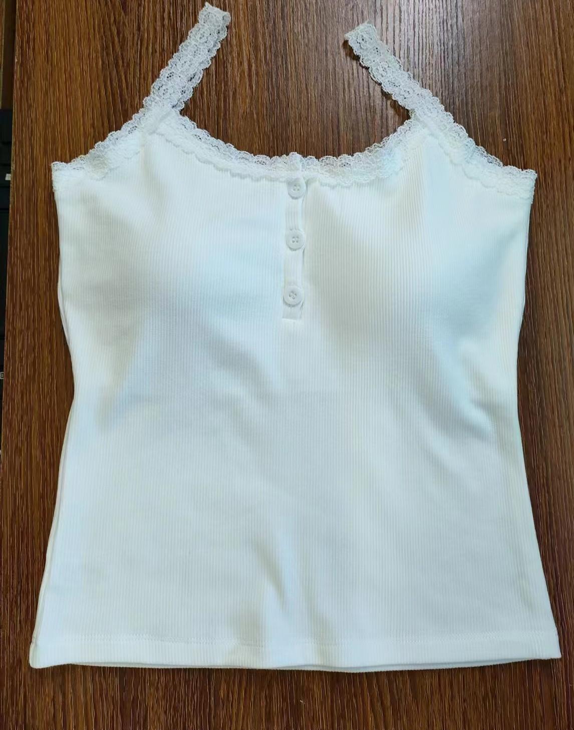 Chaleco de base trasera con parte superior delgada y almohadilla para el pecho, con encaje interior, color blanco, para mujer. (con almohadilla para el pecho
