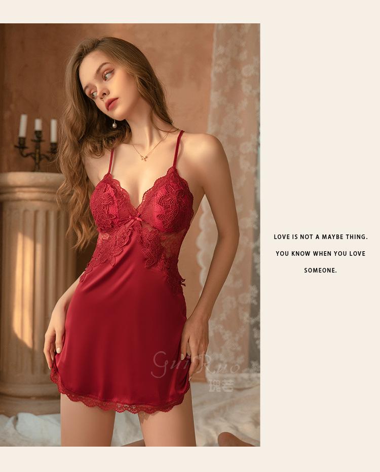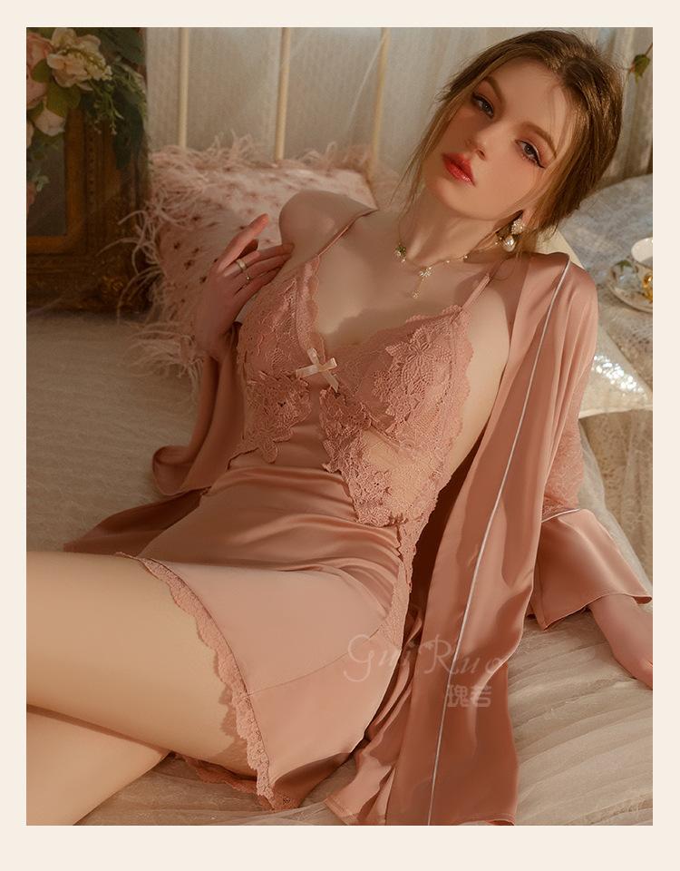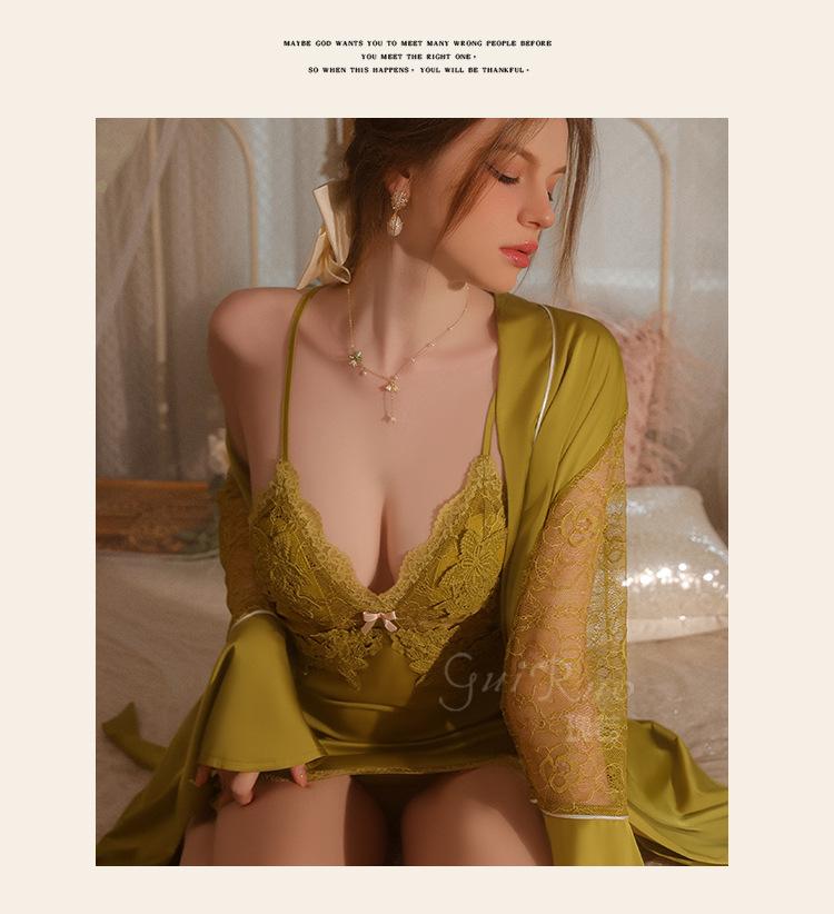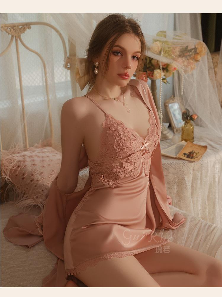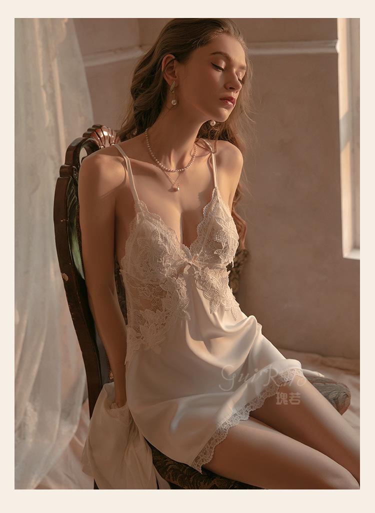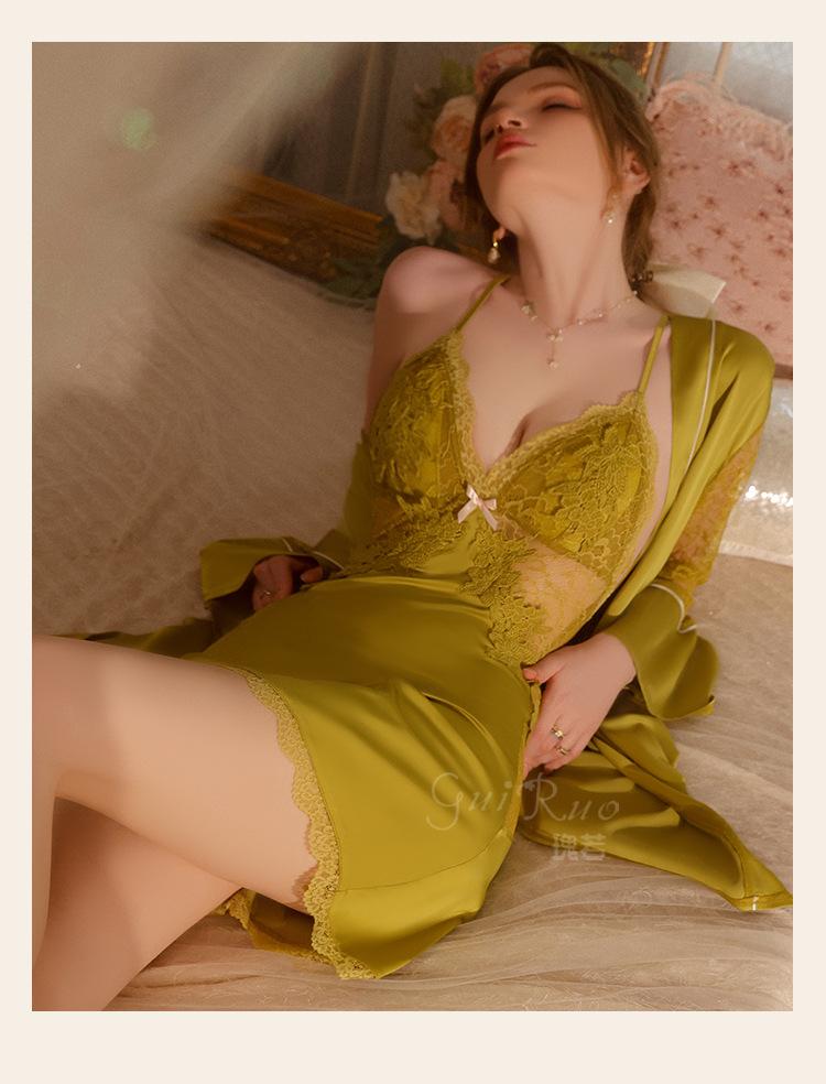Camisón de satén con encaje y almohadillas para el pecho para mujer, marca Guiruo, otoño, nuevo, conjunto de ropa para el hogar 1170