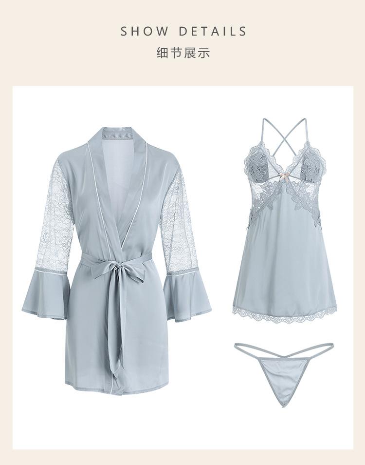 White (nightgown T pants), White (robe belt), Black (nightgown T pants), Black (robe belt), Moran gray (nightg...