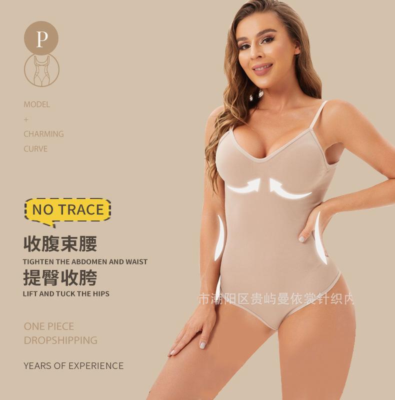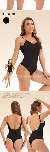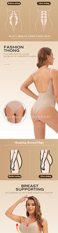 Prenda modeladora de cuerpo unida con etiquetado exclusivo transfronterizo, levanta el abdomen, levanta las caderas, modela el cuerpo, con tirantes en U y abotonadura frontal TIKTOK