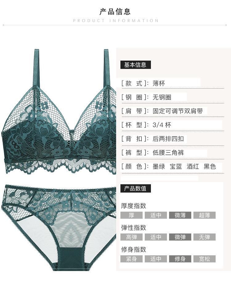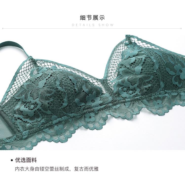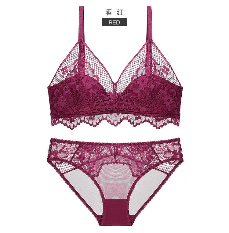 | Venta directa de fábrica, nuevo conjunto de sujetador sexy de encaje pequeño con pecho grande y ropa interior hueca ultrafina para mujer |