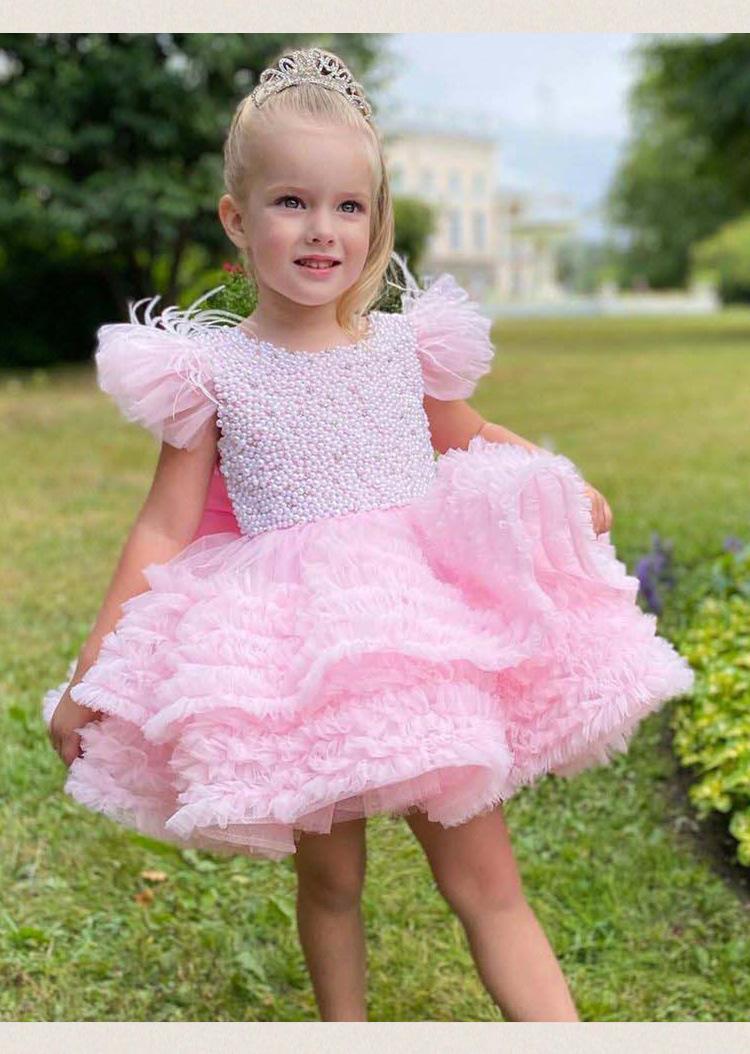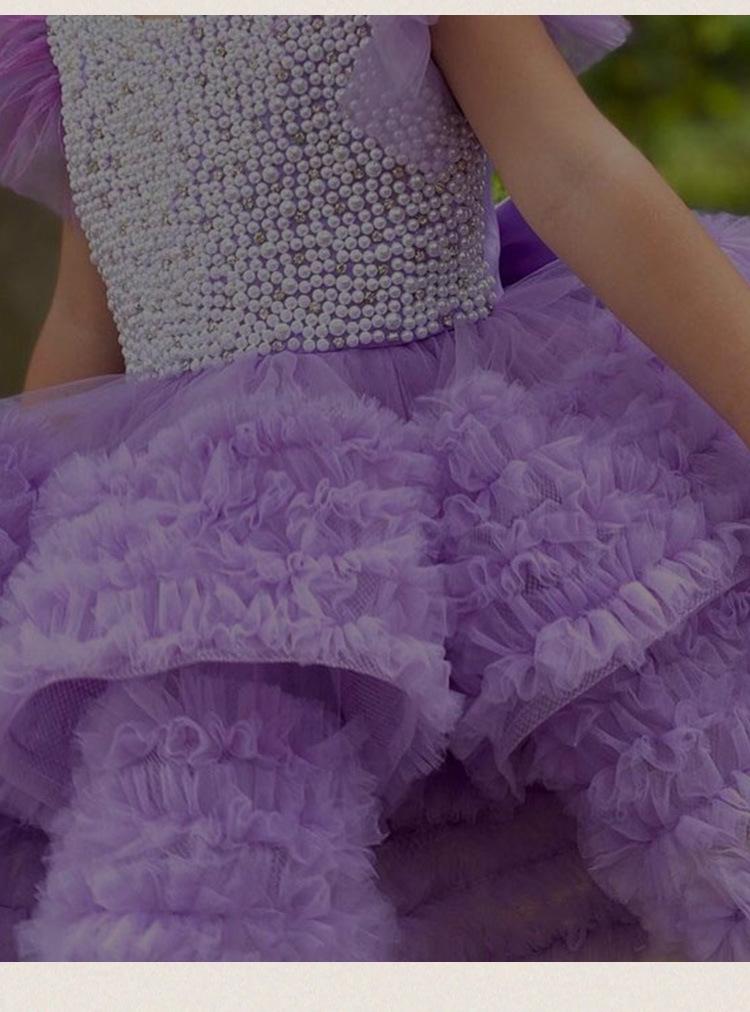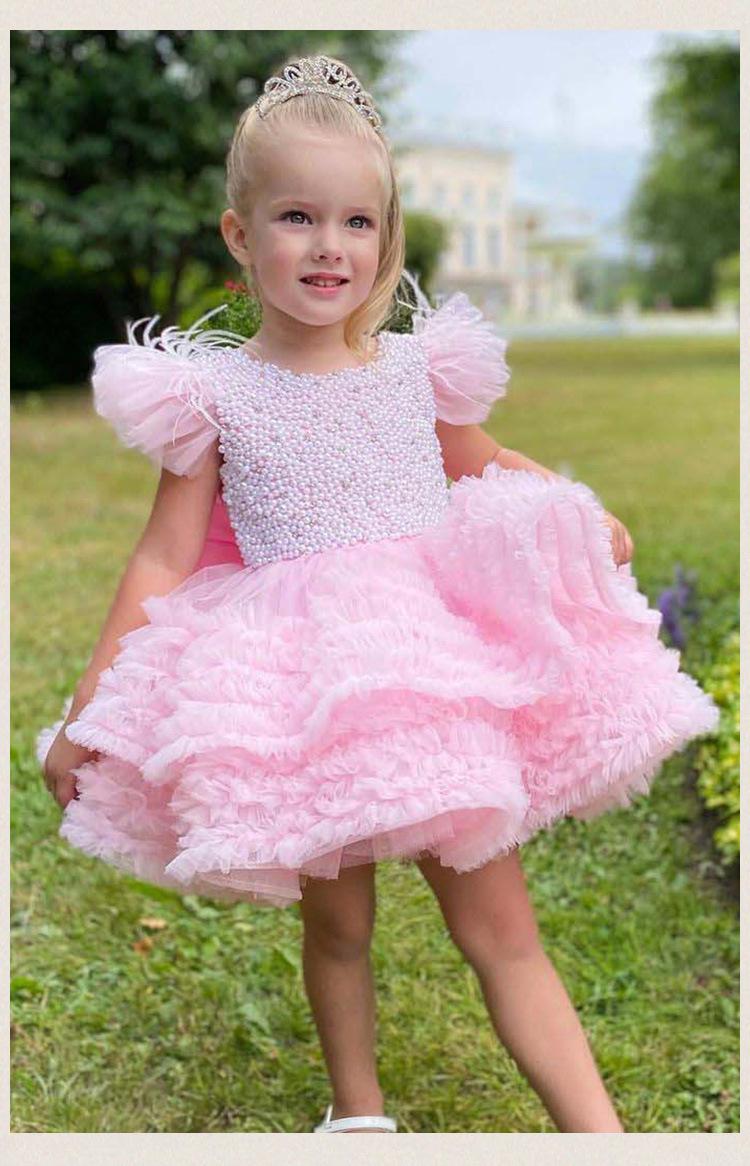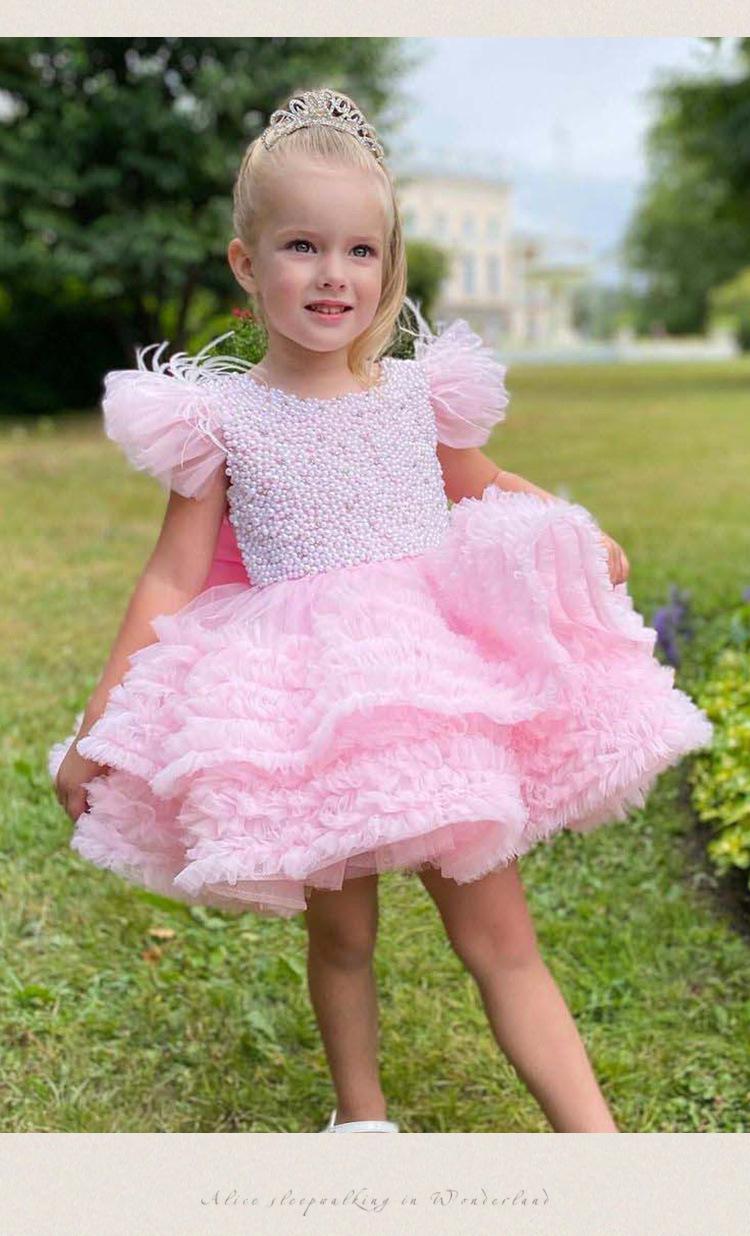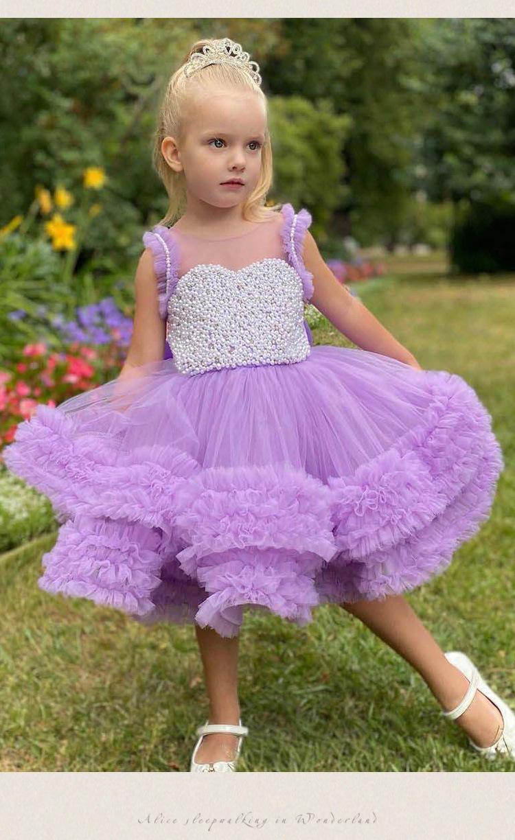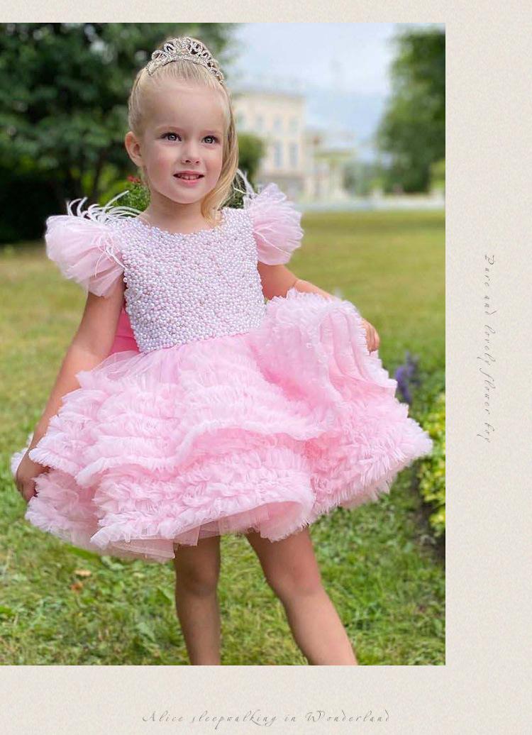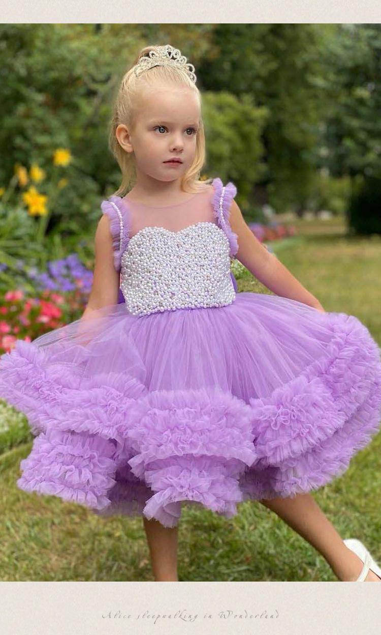 Vestido de niña con mangas voladoras, vestido de princesa con perlas, vestido de pasarela para anfitriona de cumpleaños, vestido de actuación de piano, falda de pastel de niña de las flores de estilo occidental