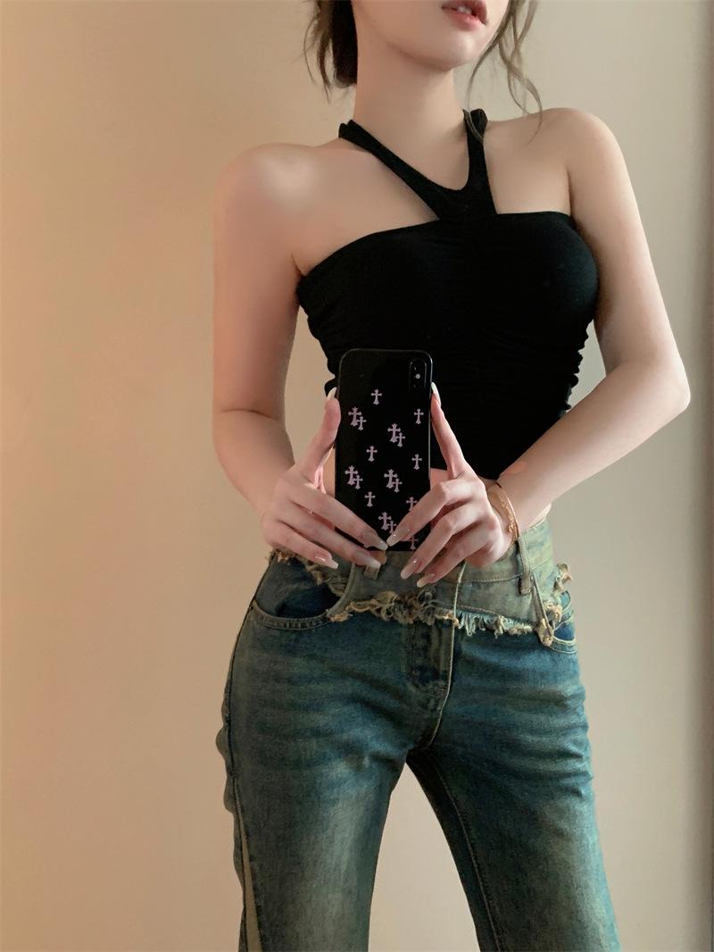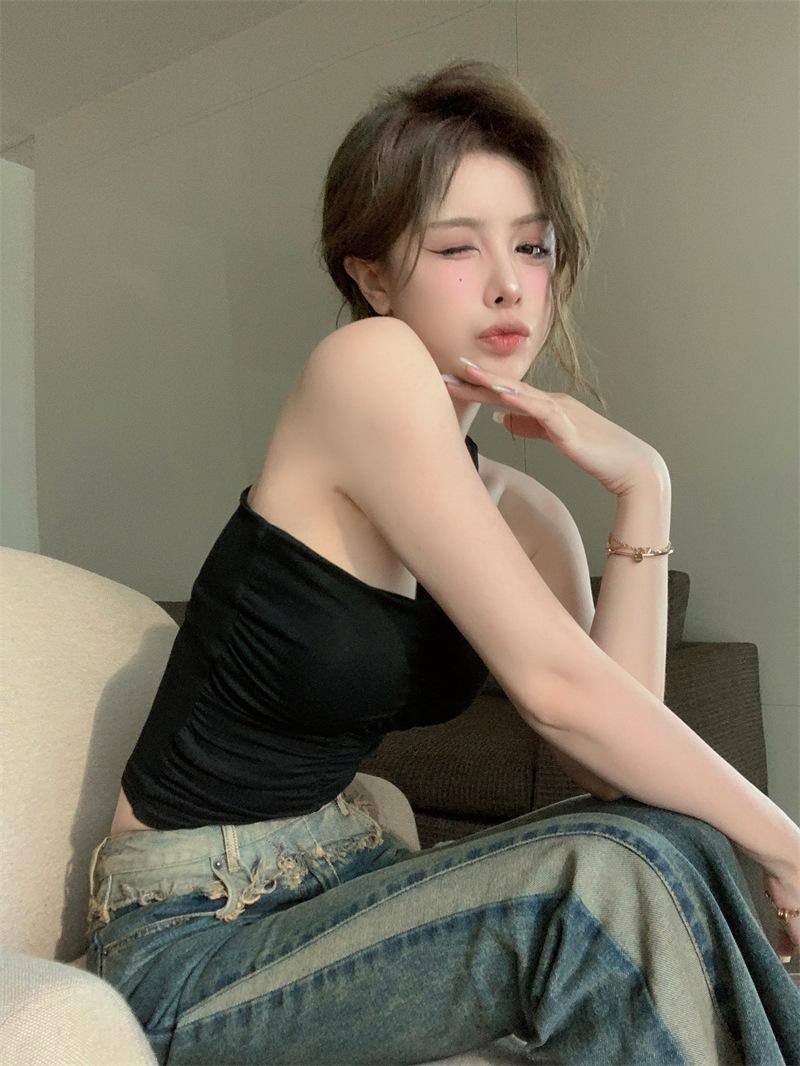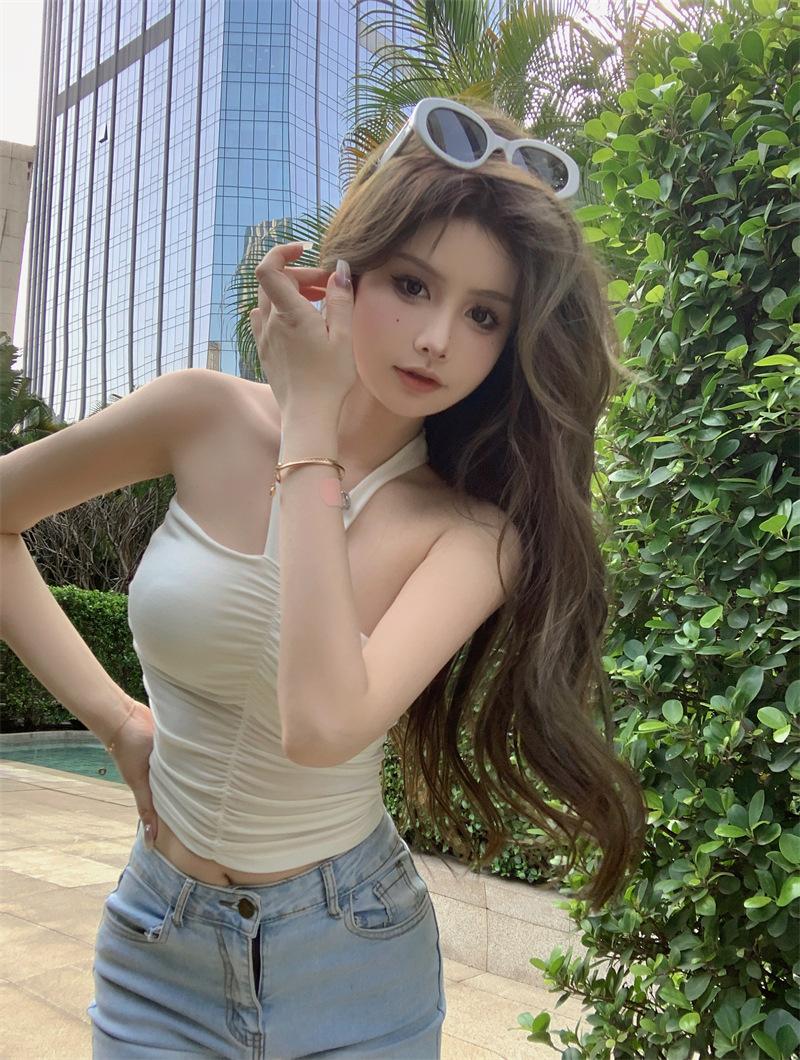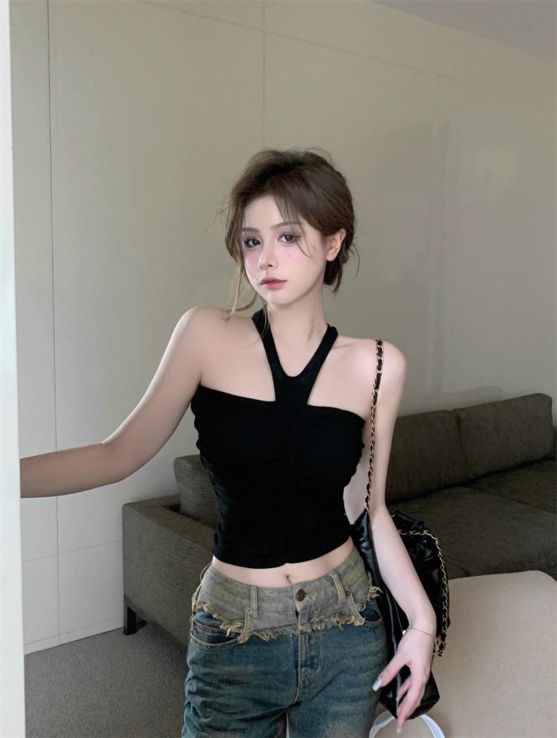 2024 primavera y verano nuevo deseo puro halter sexy sling chaleco interior para mujer cropped ropa exterior top de chica hot