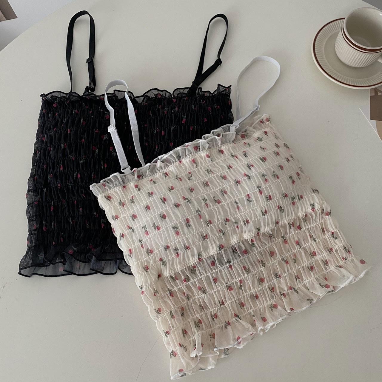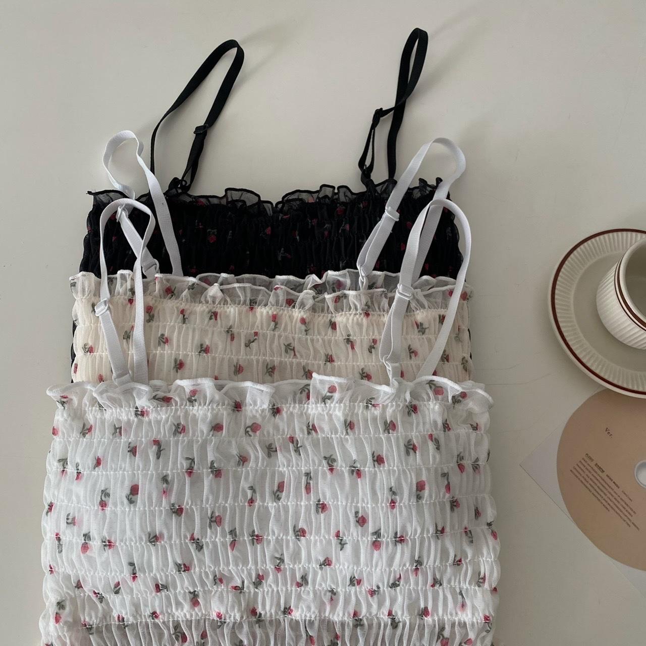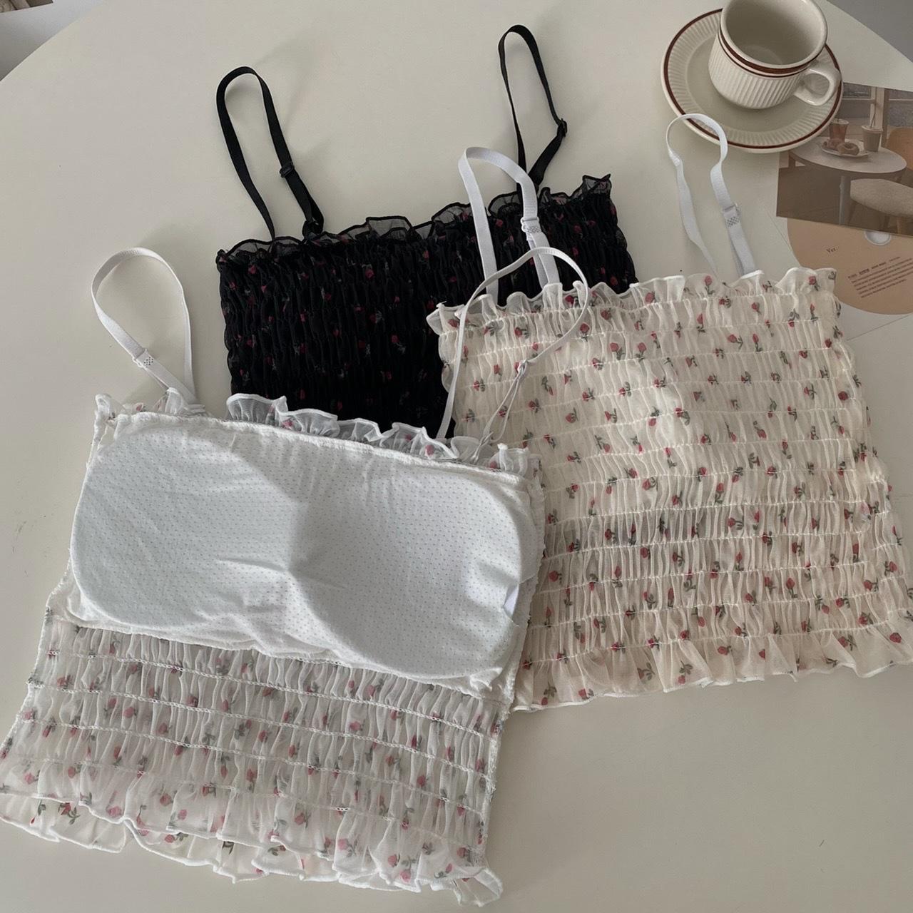 Camisola sexy de encaje para mujer, de verano, con estampado floral, con almohadillas para el pecho, elástica, sin mangas, para uso exterior, con espalda hermosa