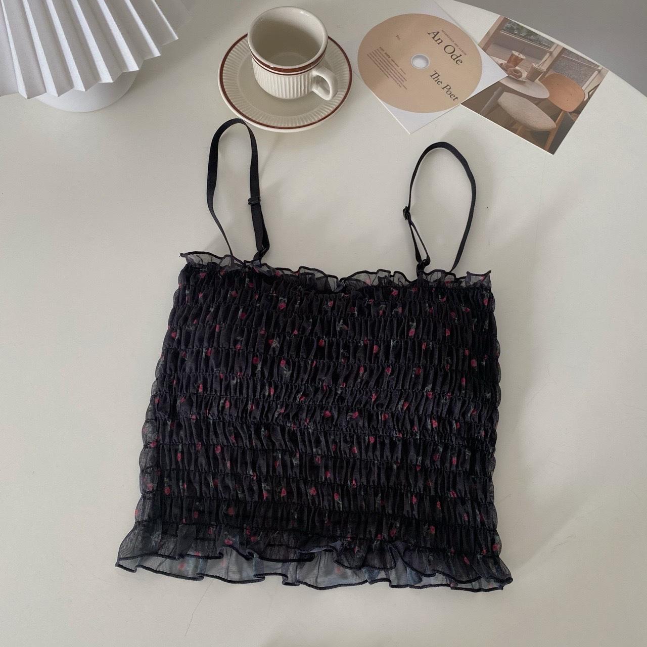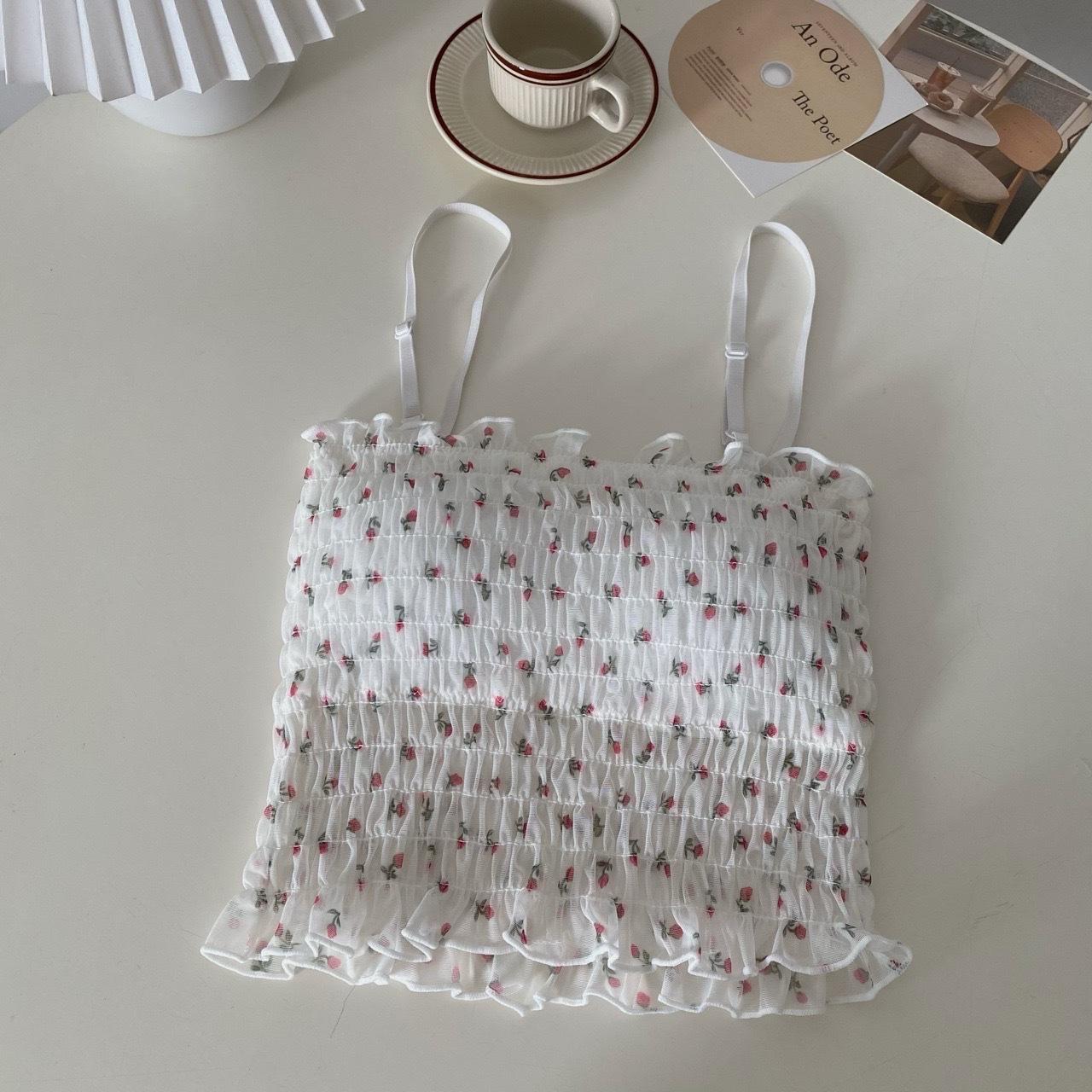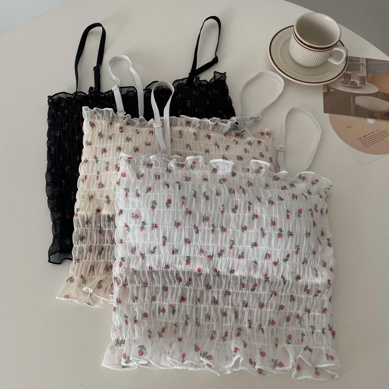 Camisola sexy de encaje para mujer, de verano, con estampado floral, con almohadillas para el pecho, elástica, sin mangas, para uso exterior, con espalda hermosa