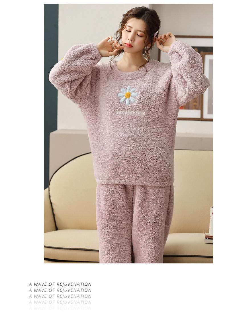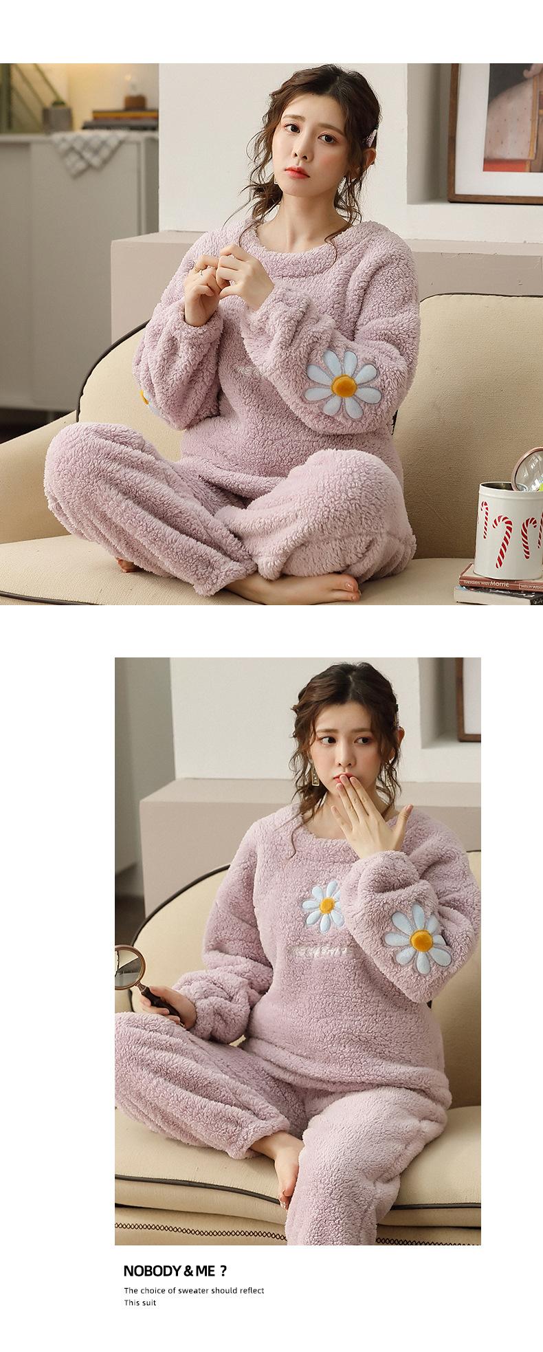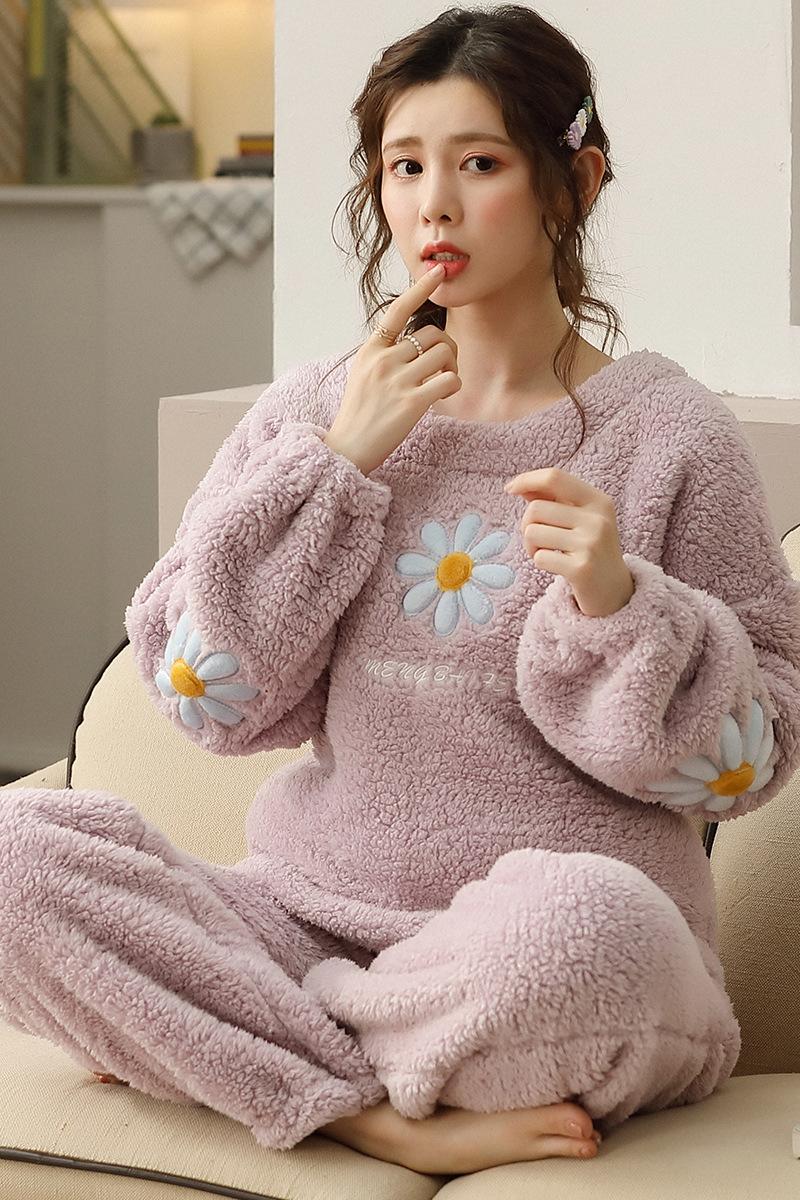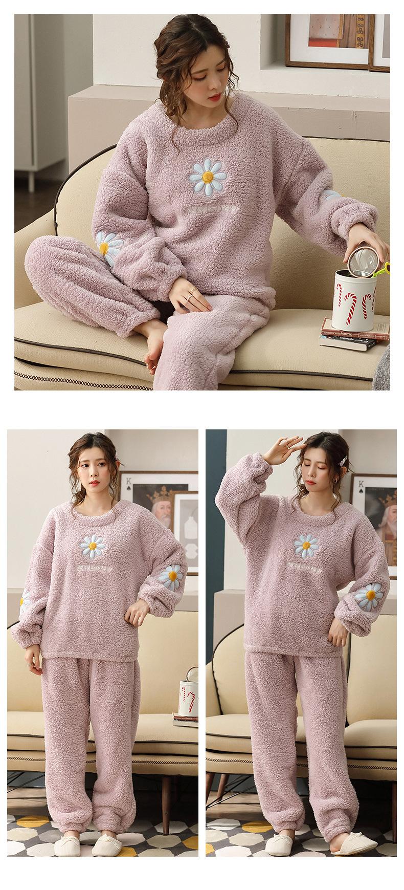 Pijamas de Franela Gruesa de Manga Larga para Mujer 2020 Nuevos Rosa Niñas Talla Grande Sueltos Forro Polar Coral Ropa para el Hogar