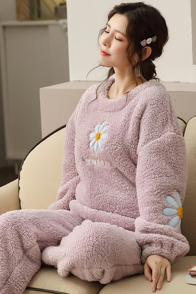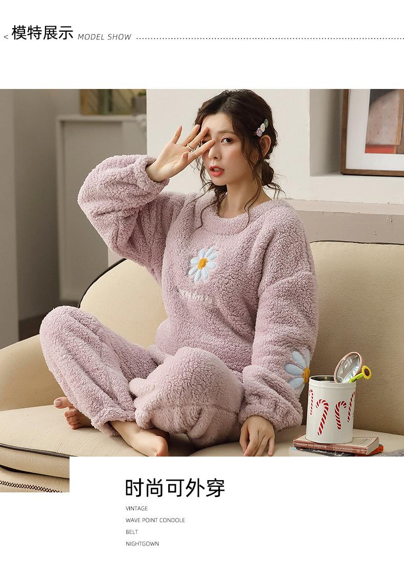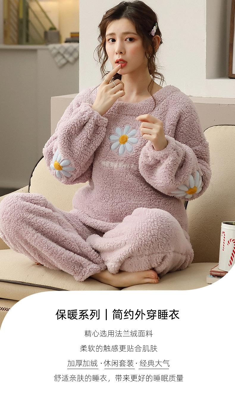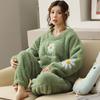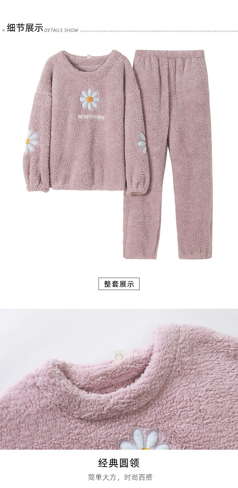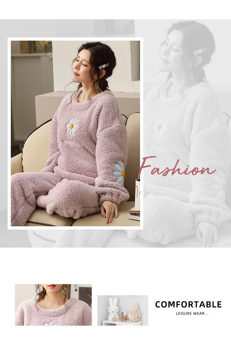 Pijamas de Franela Gruesa de Manga Larga para Mujer 2020 Nuevos Rosa Niñas Talla Grande Sueltos Forro Polar Coral Ropa para el Hogar