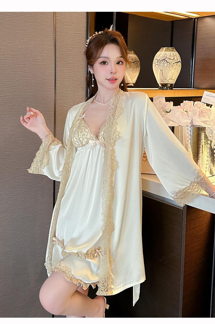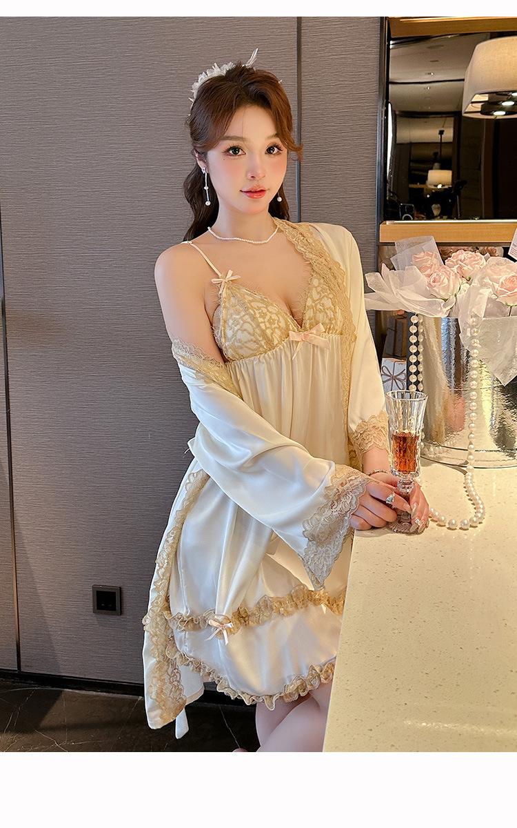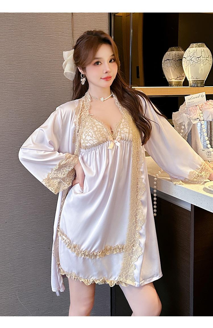 2024 Nuevo Estilo con Deseo Puro Sexy Camisón de Tirantes de Seda de Hielo Traje de Camisón con Almohadilla para el Pecho para Mujer Verano Primavera y Otoño