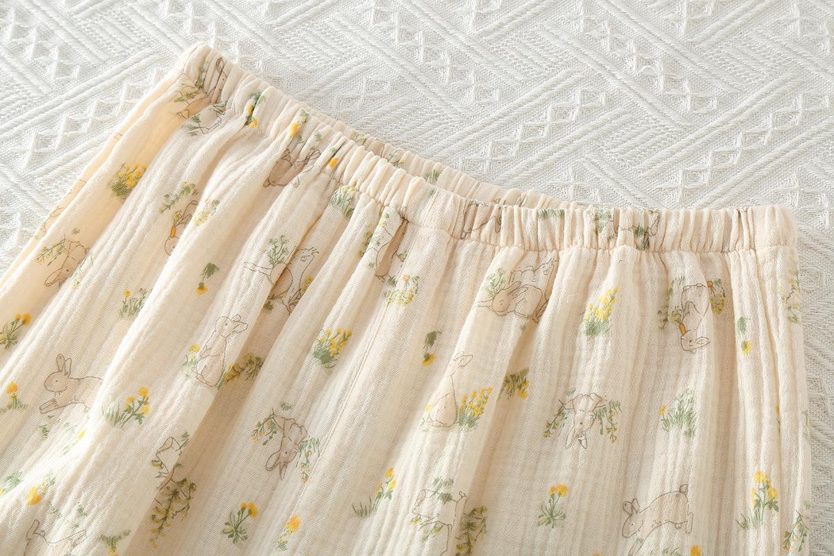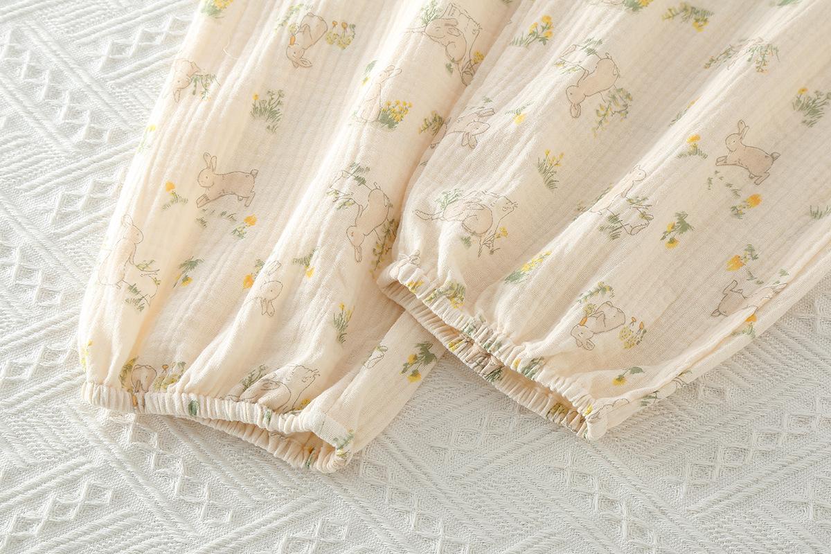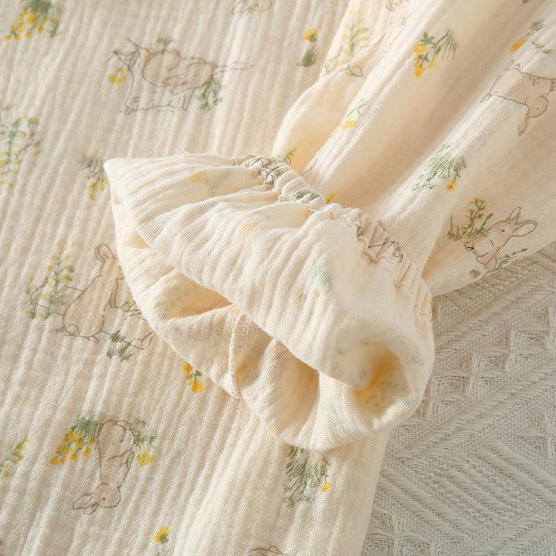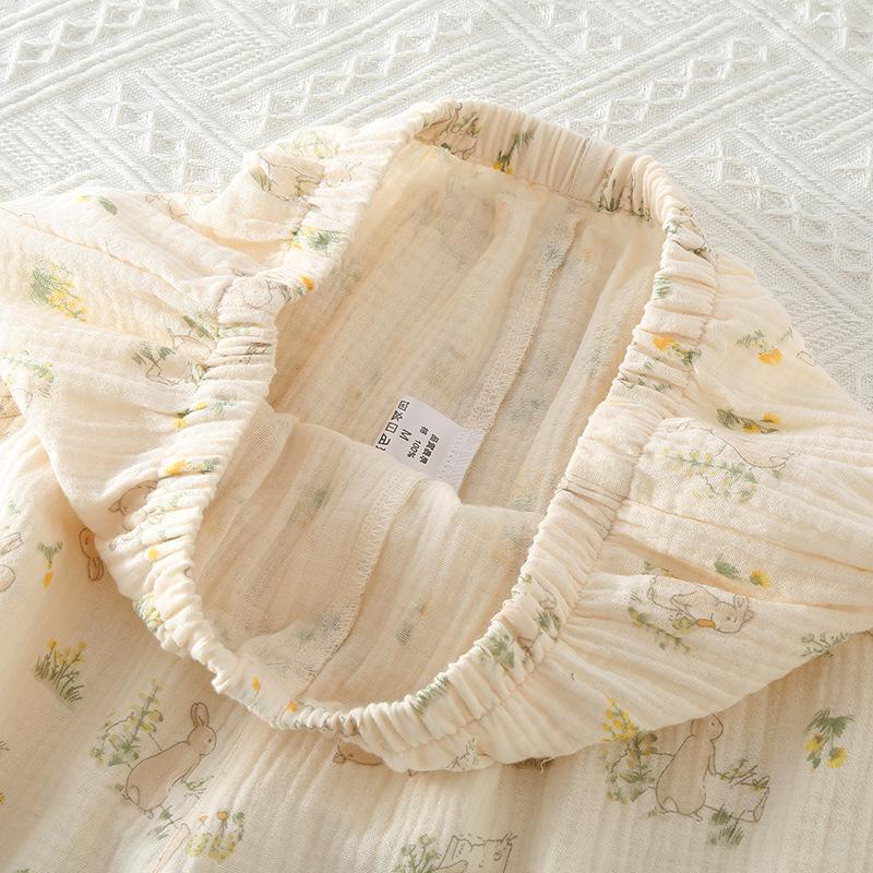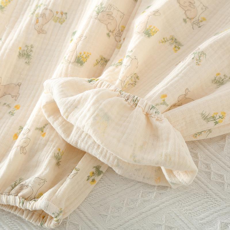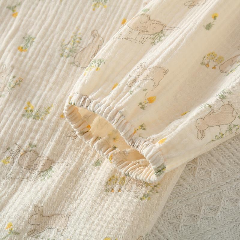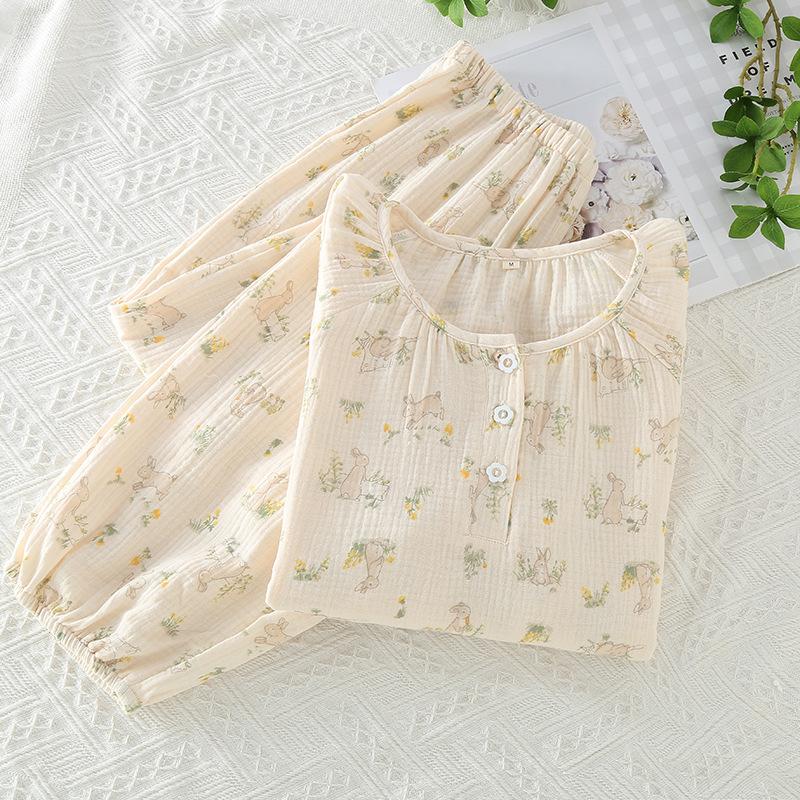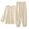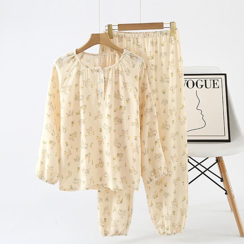 Pijamas de crepé de algodón de primavera y otoño para mujer, pantalones finos de manga larga, jersey, ropa de estar, ropa de casa de gasa de doble capa de invierno para las cuatro estaciones