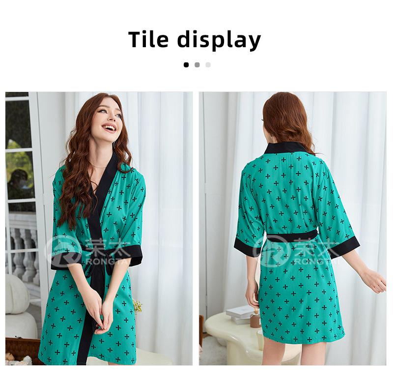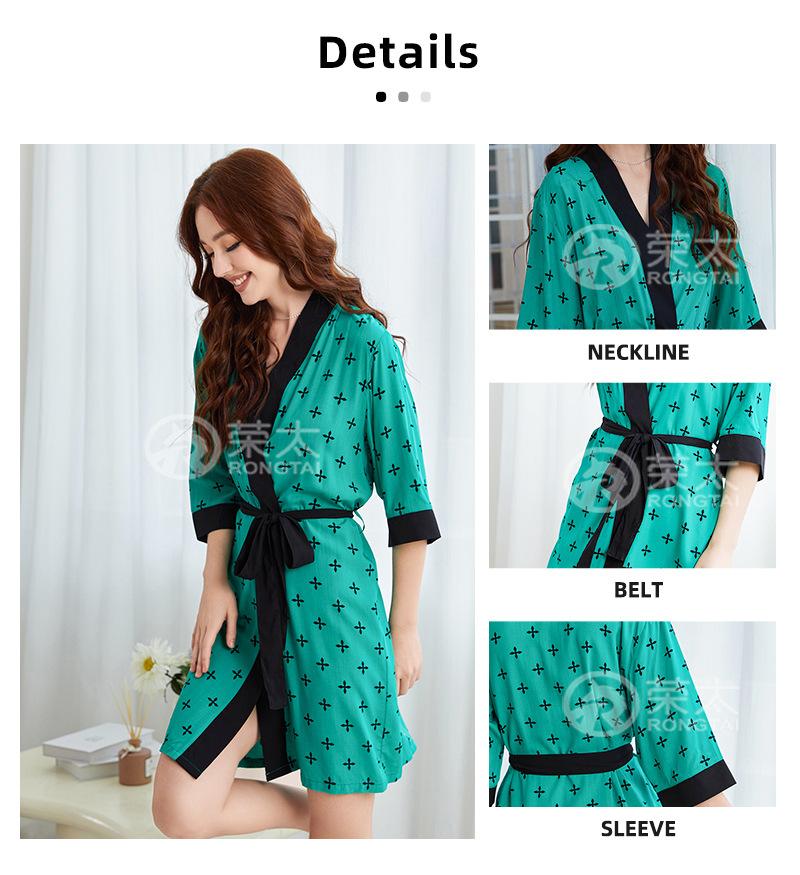 Pijamas Rongtai de primavera y verano con estampado cruzado y cordones para mujer, ropa de casa, camisón fino, cómodo y transpirable.