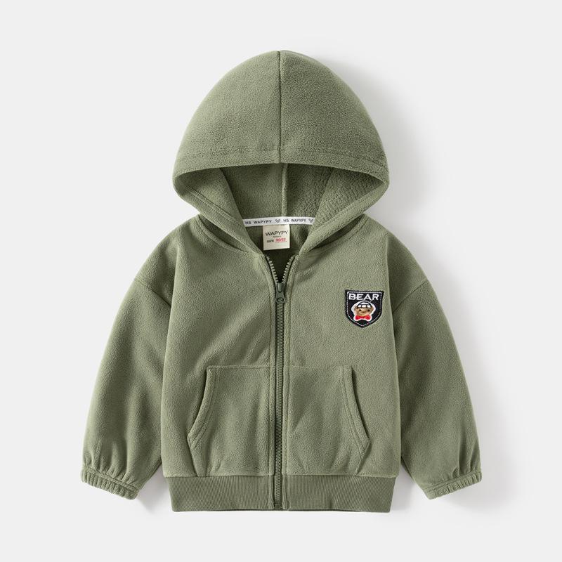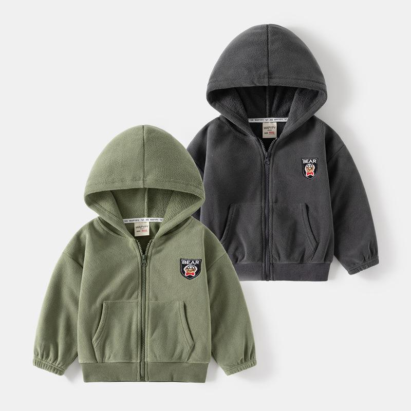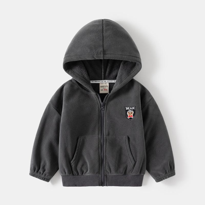 Chaqueta de Terciopelo para Niños 2024 Otoño e Invierno Nuevo Estilo Camisa con Cremallera Bordada para Niños Sudadera con Capucha de Terciopelo Austriaco de Doble Cara para Bebé Dropshipping
