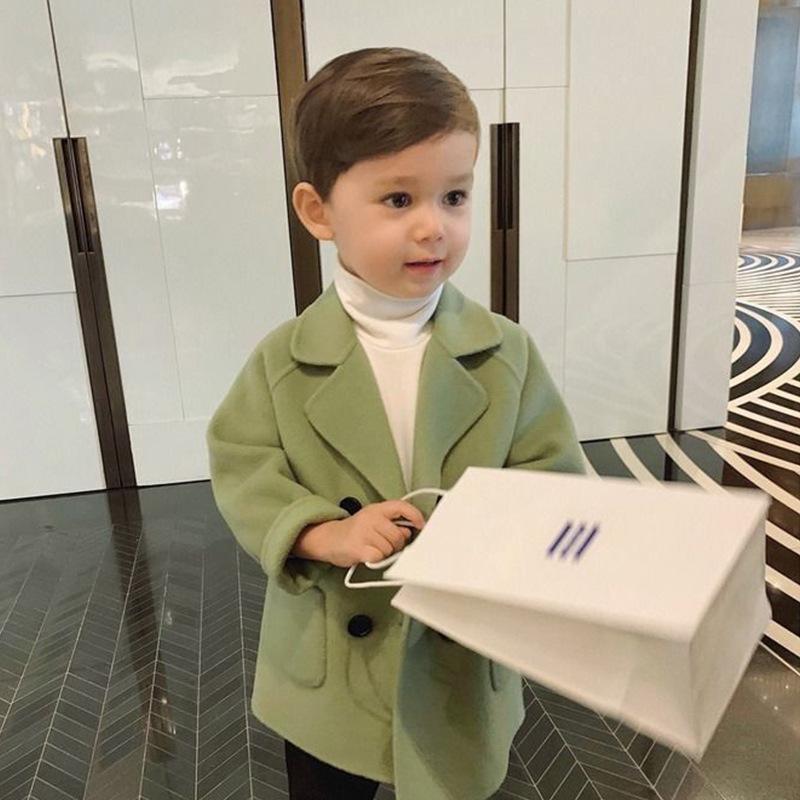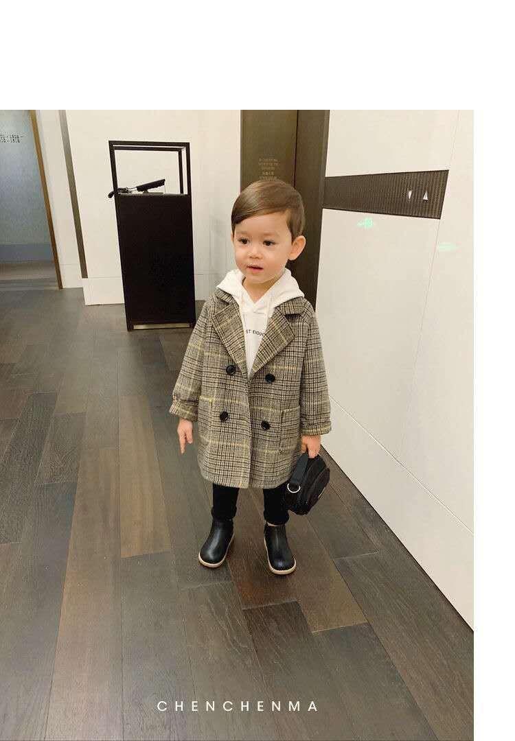 Abrigo de Lana Nuevo de Otoño Ropa para Niños Abrigo Guapo para Niños Abrigo Chaqueta Mediana para Niños Pequeños y Medianos Estilo Coreano