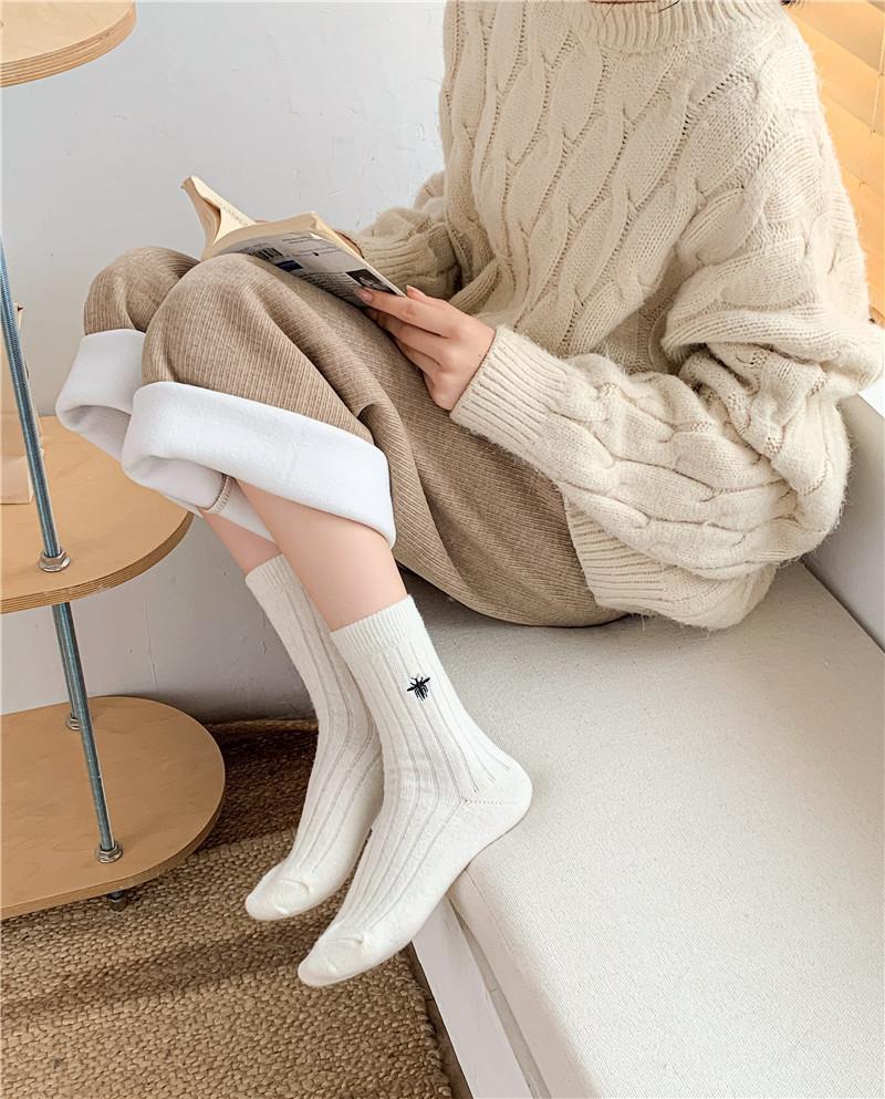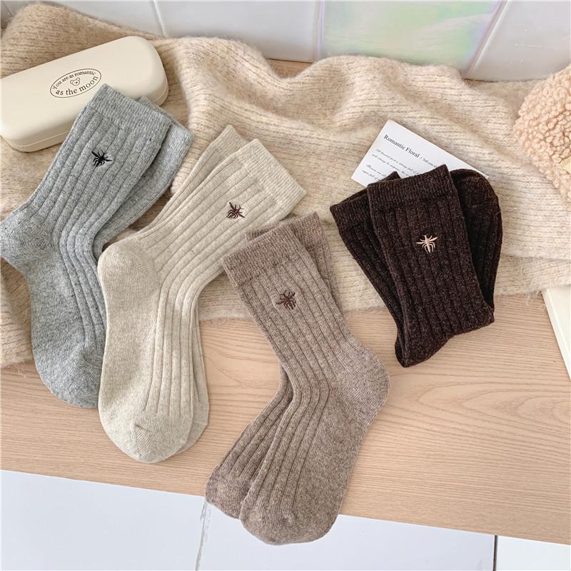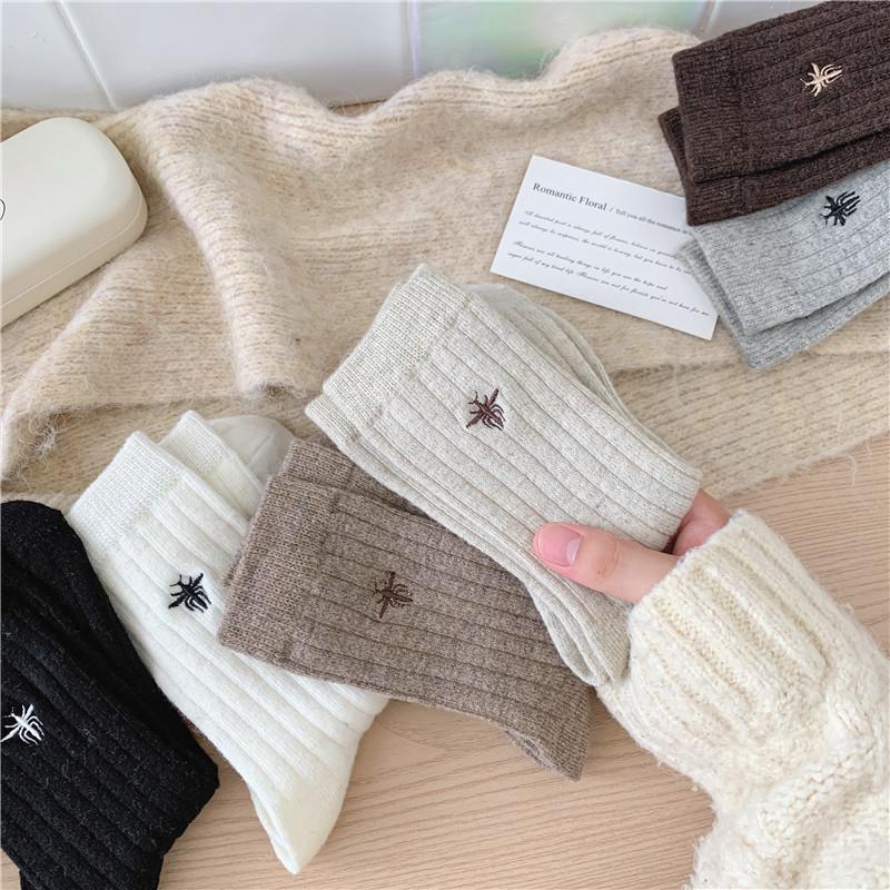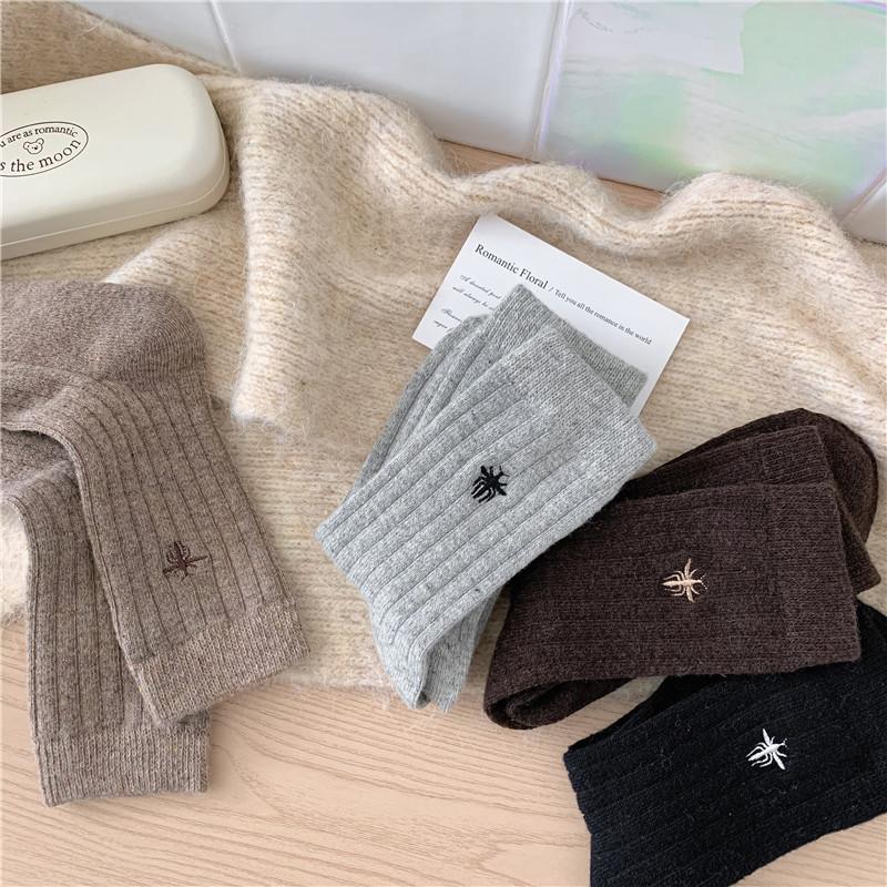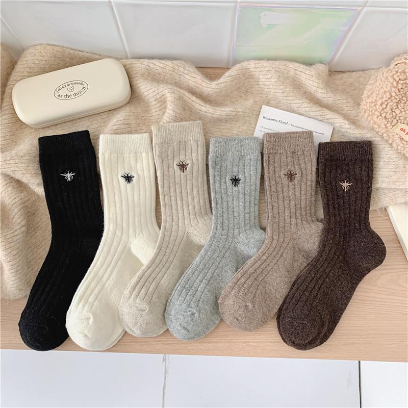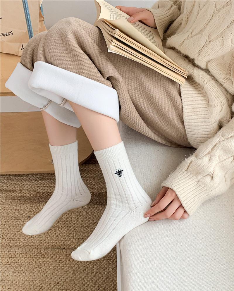 Calcetines de mujer tendencia celebridad de internet bordados abejita calcetines de lana otoño e invierno gruesos cálidos calcetines de tubo medio ins color Maillard