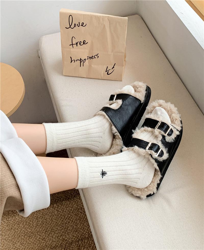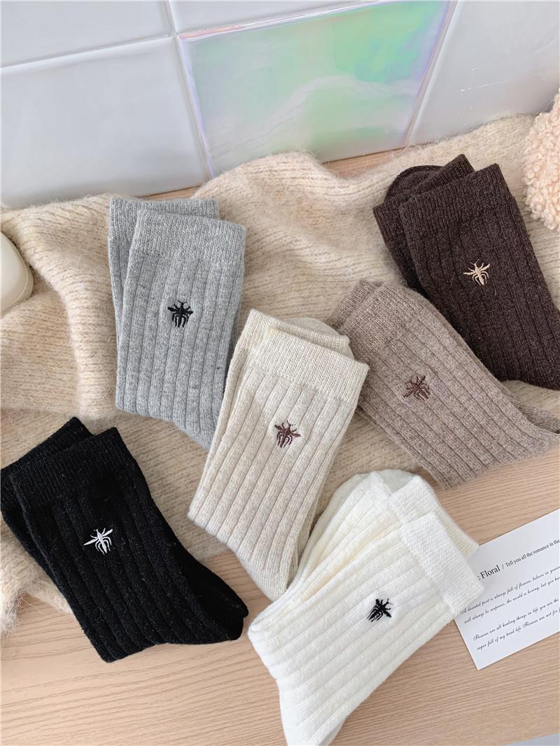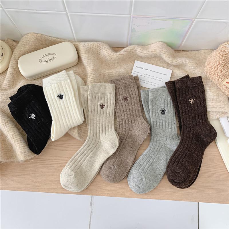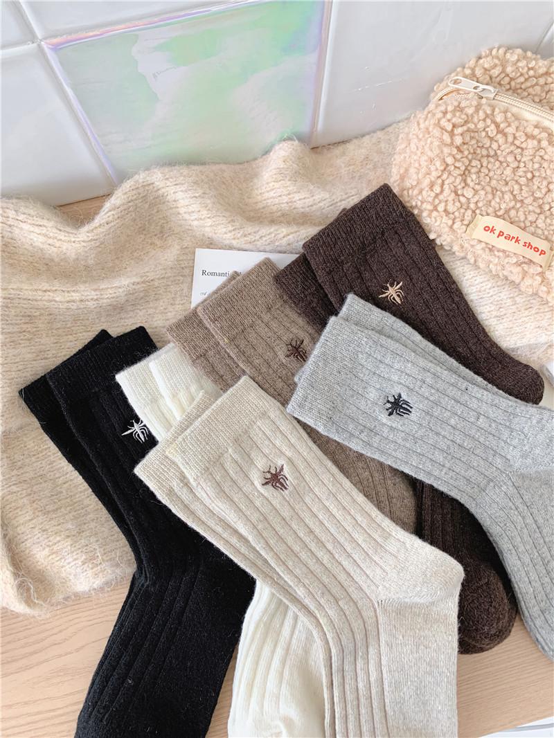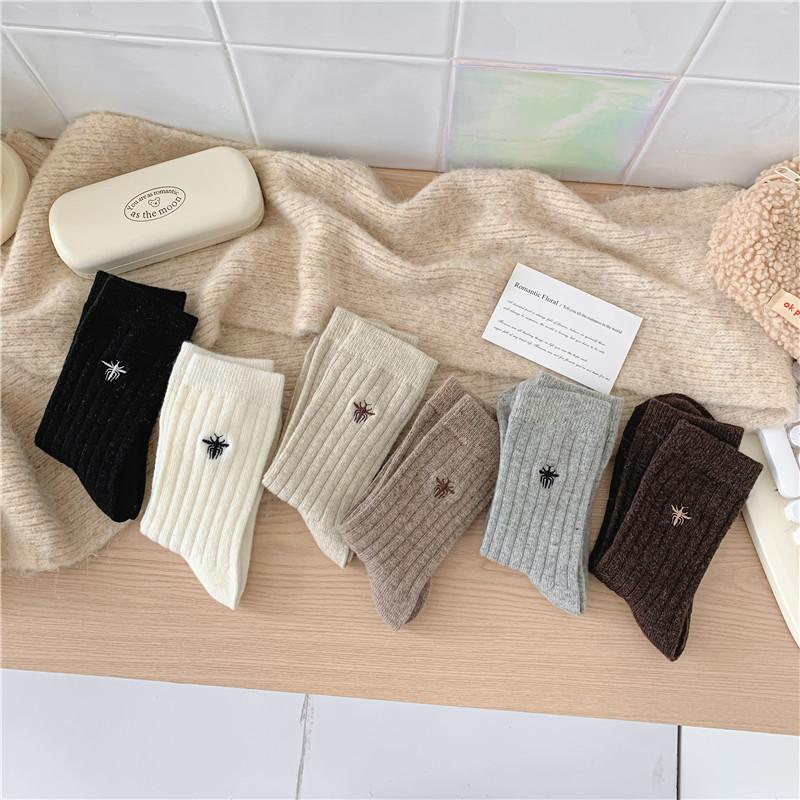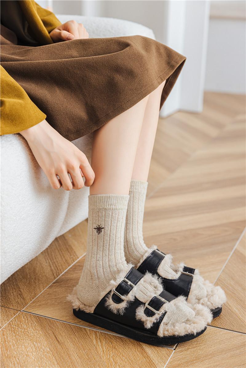 Calcetines de mujer tendencia celebridad de internet bordados abejita calcetines de lana otoño e invierno gruesos cálidos calcetines de tubo medio ins color Maillard