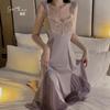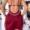 Vestido de mujer Ruoruo estilo francés cómodo con costuras de satén y encaje, sencillo, con mariposas y escote en V profundo, sexy, con tirantes, para usar en casa 1187
