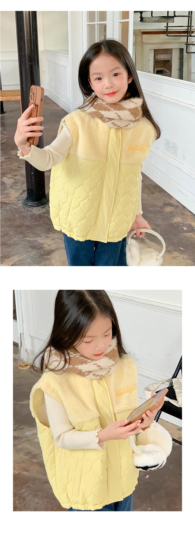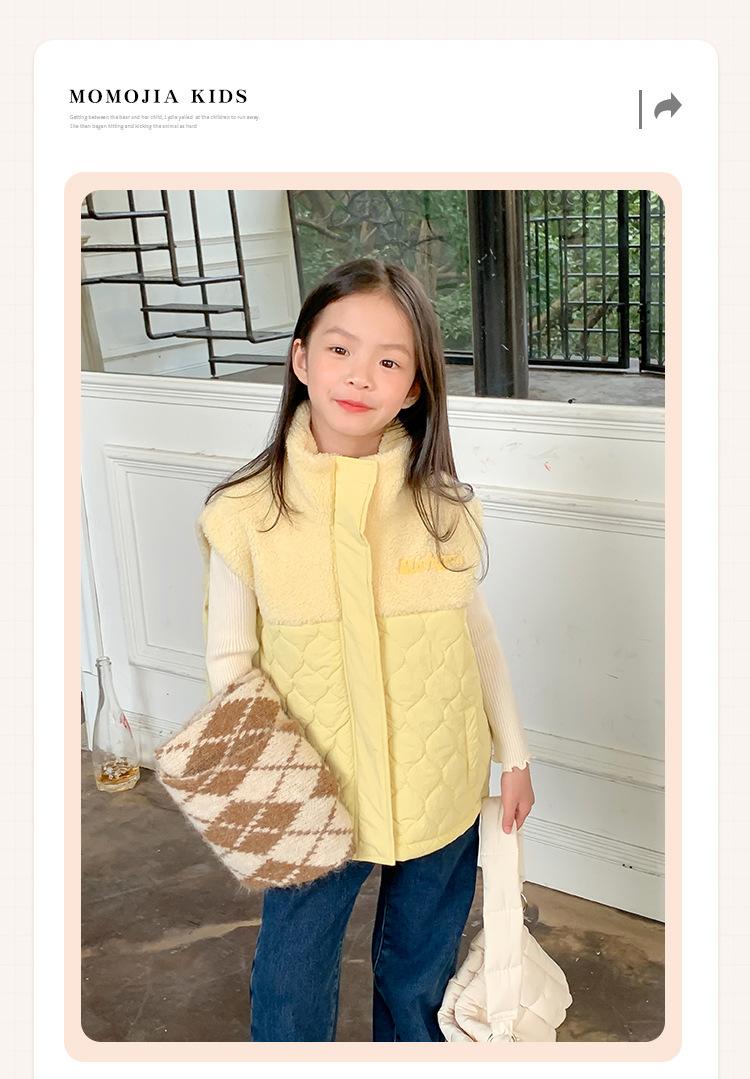 Chaleco de color liso para niña, diseño de costura de lana de cordero, chaqueta sin mangas para niña, chaleco de algodón para bebé, invierno 2023