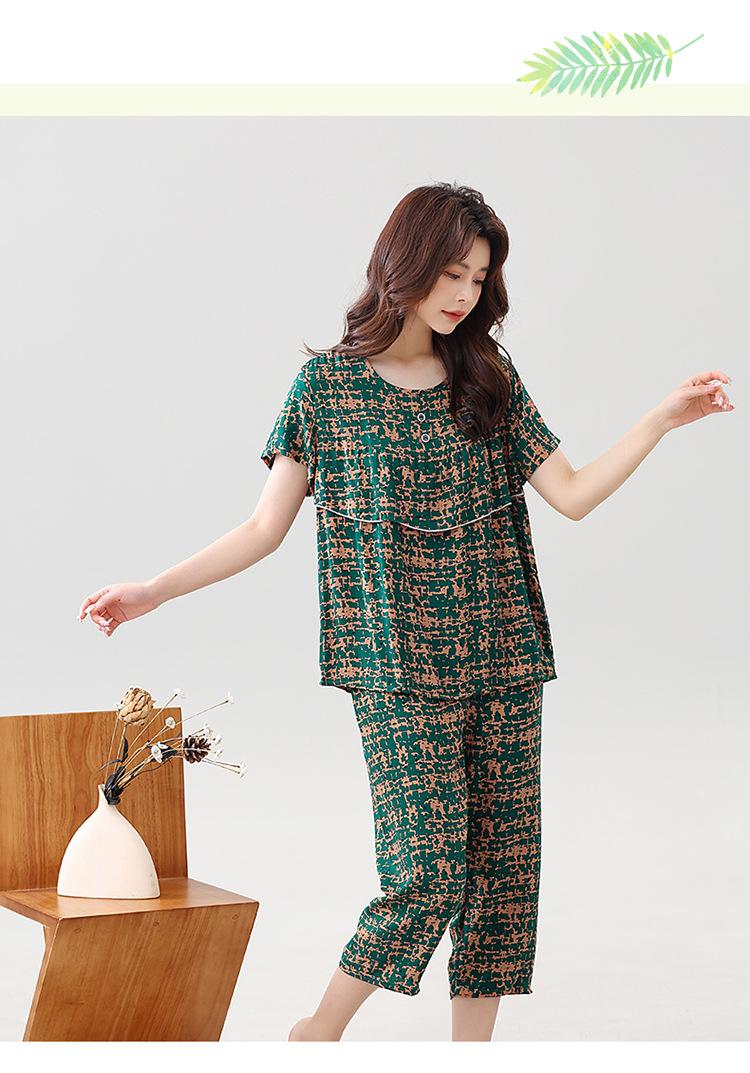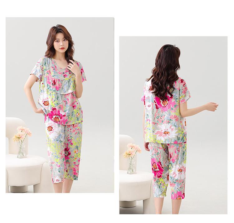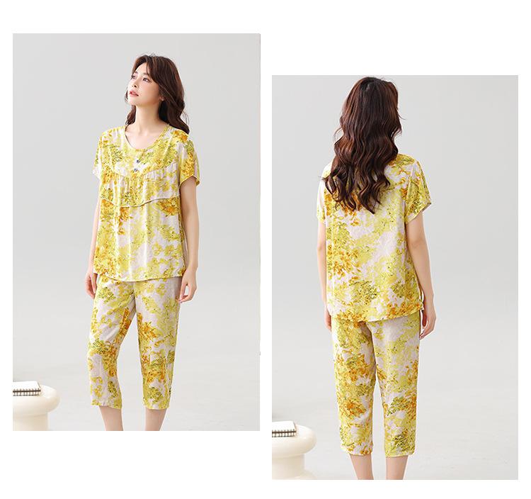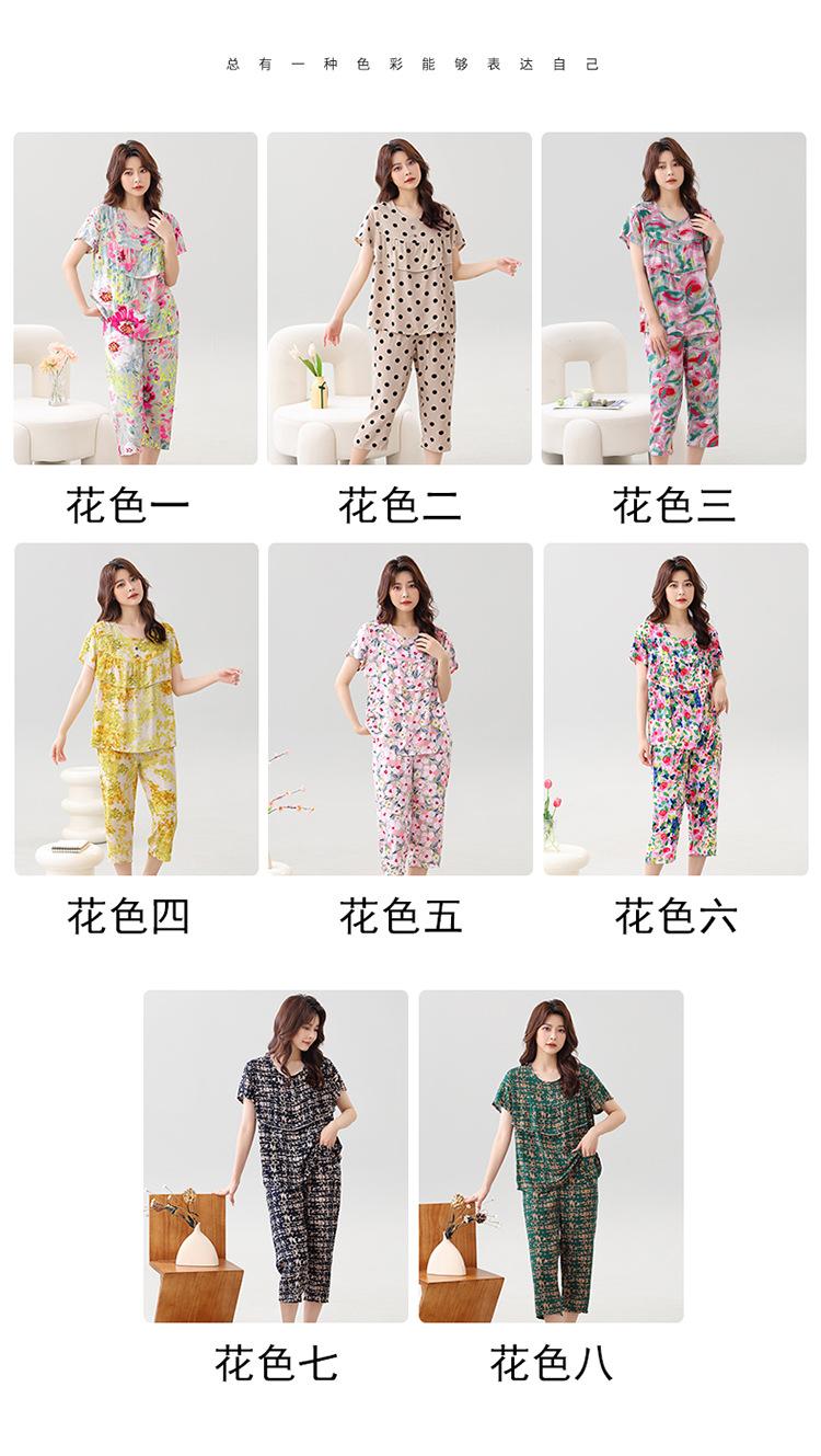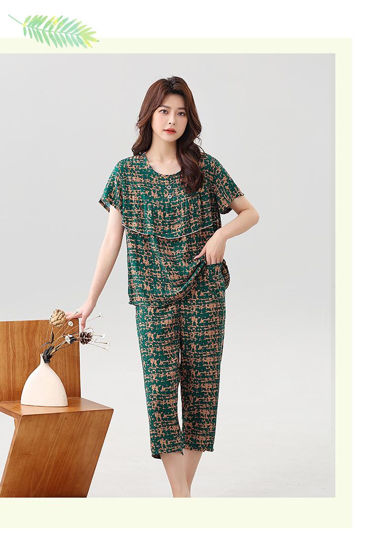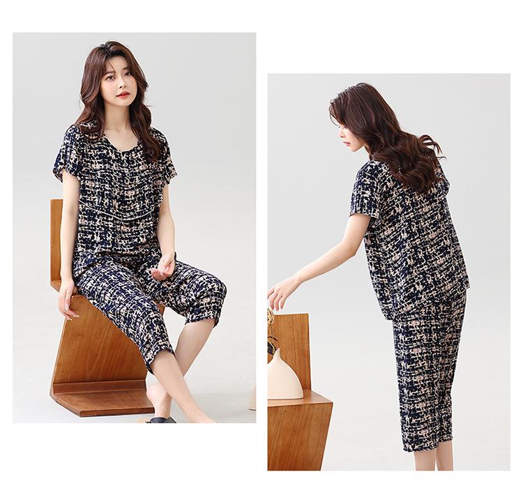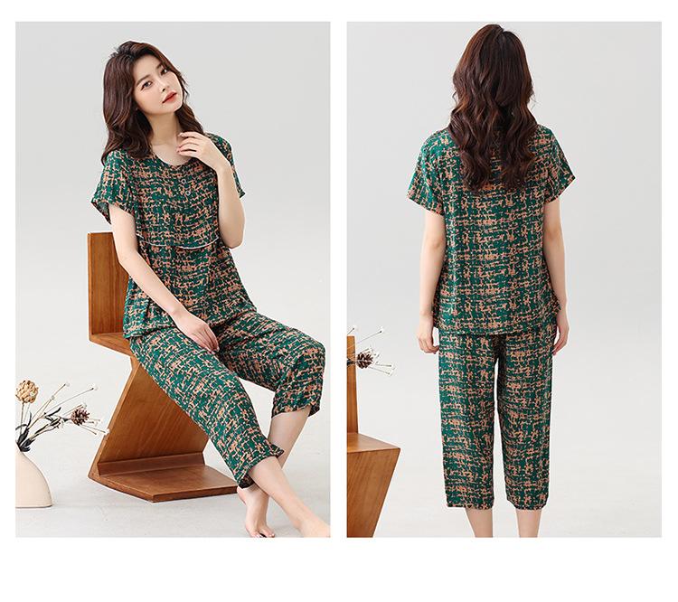 Pijama de seda de algodón para mujer, de verano, fino, antigolpes, de manga corta, con pantalones cortos, traje de algodón artificial de manga corta, ropa exterior, ropa para el hogar