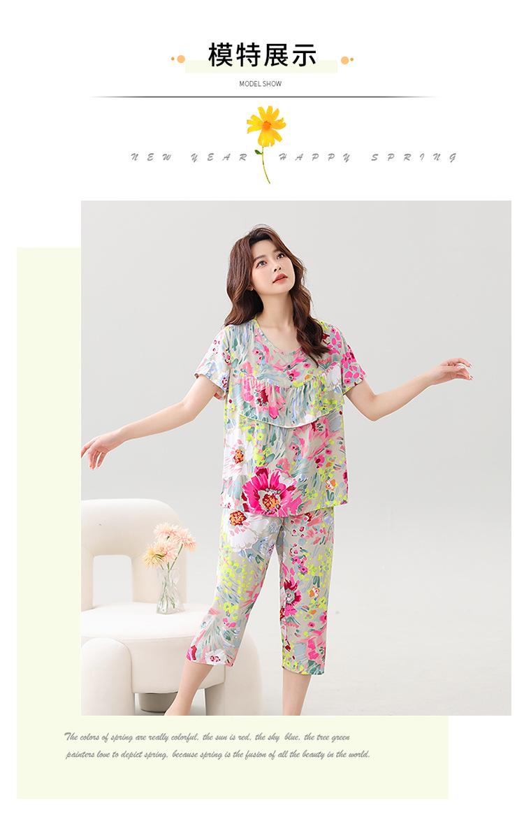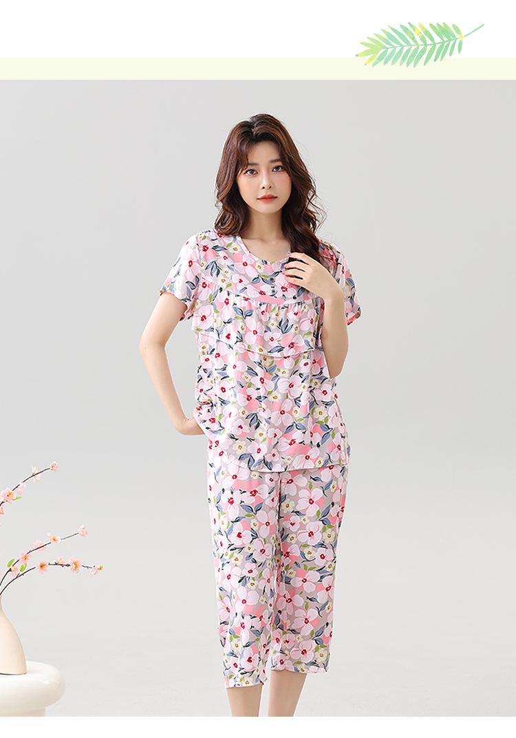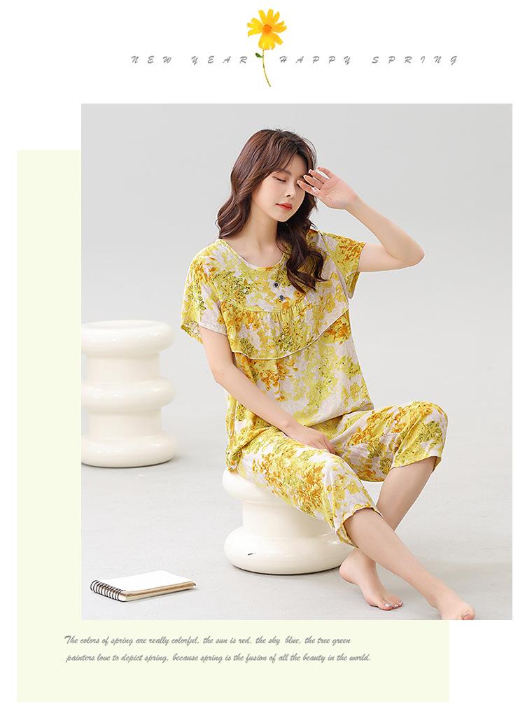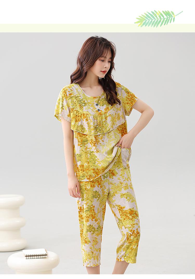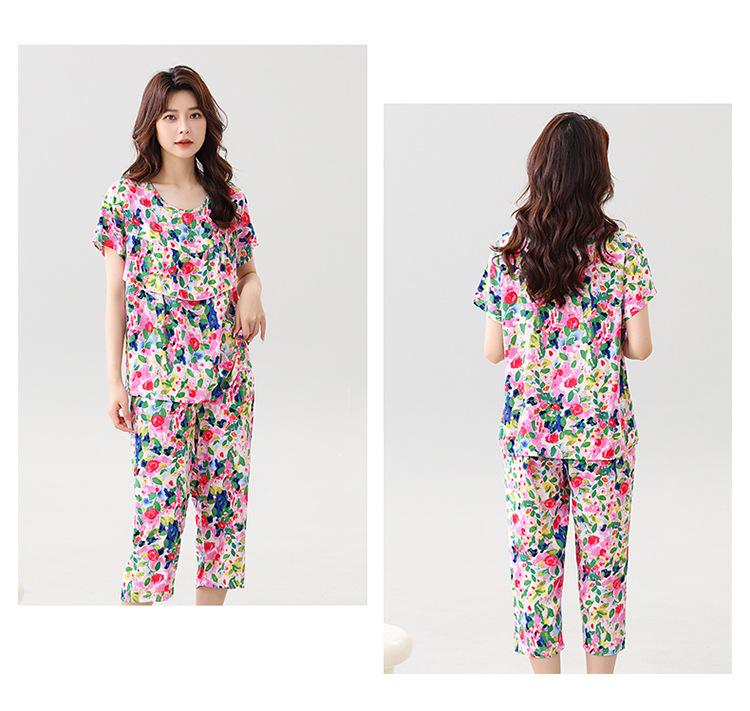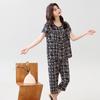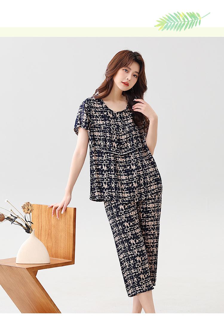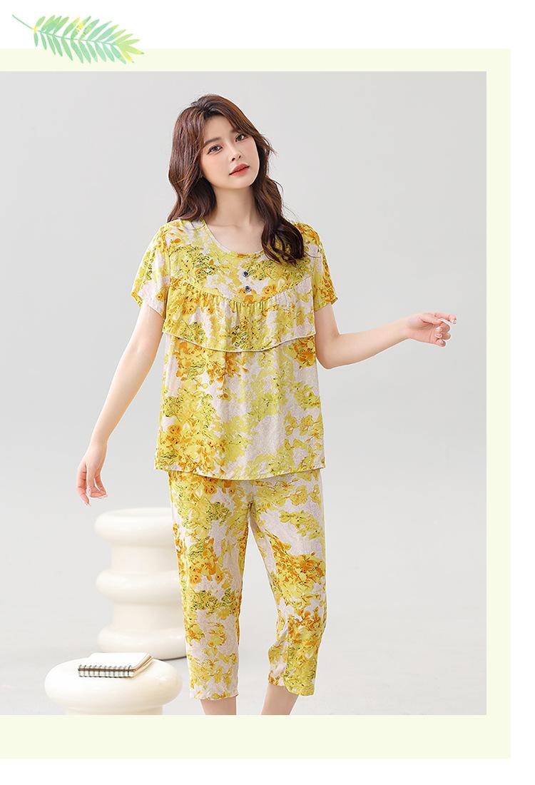 Pijama de seda de algodón para mujer, de verano, fino, antigolpes, de manga corta, con pantalones cortos, traje de algodón artificial de manga corta, ropa exterior, ropa para el hogar