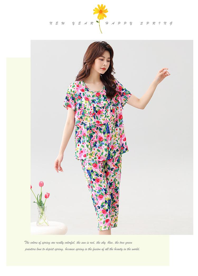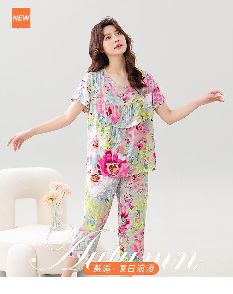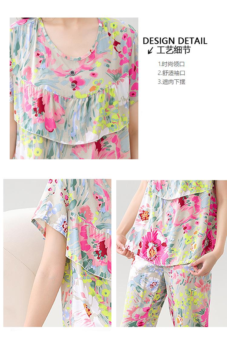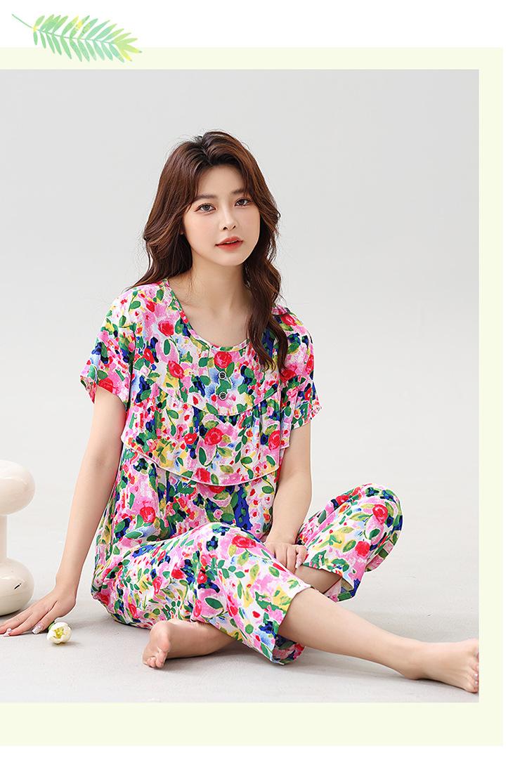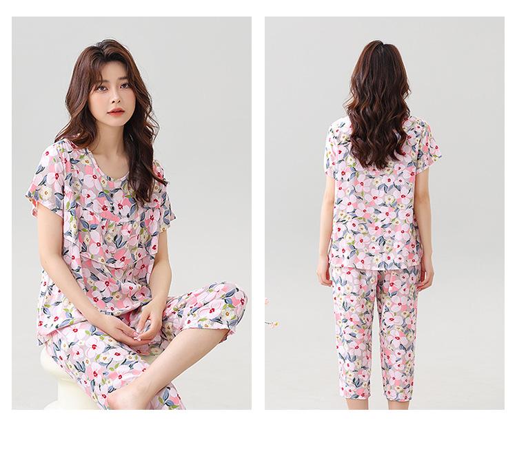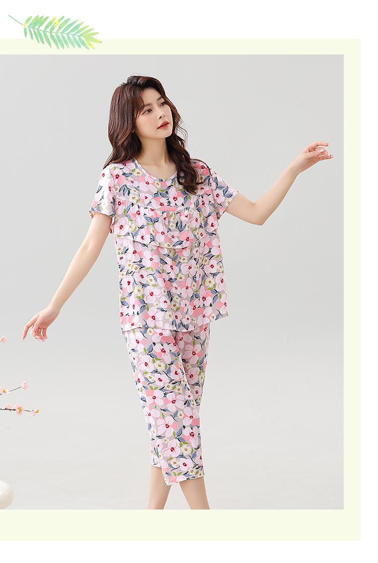 Pijama de seda de algodón para mujer, de verano, fino, antigolpes, de manga corta, con pantalones cortos, traje de algodón artificial de manga corta, ropa exterior, ropa para el hogar