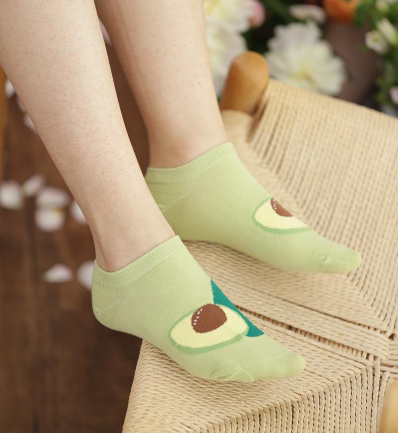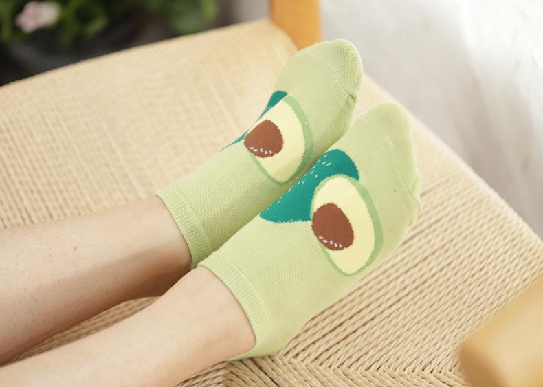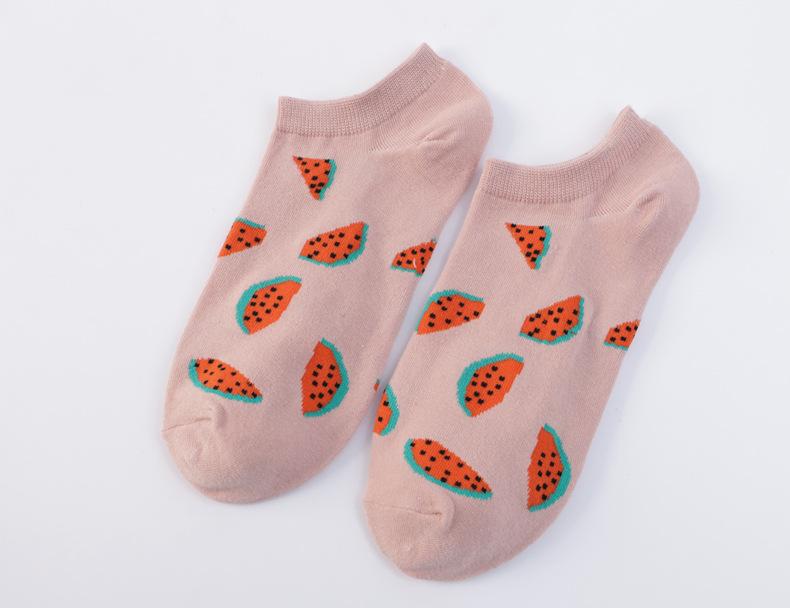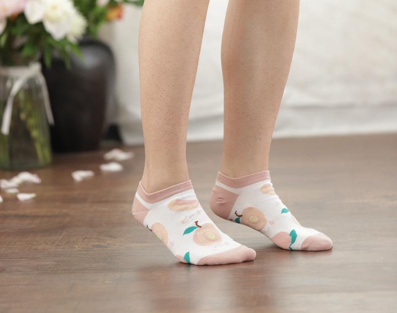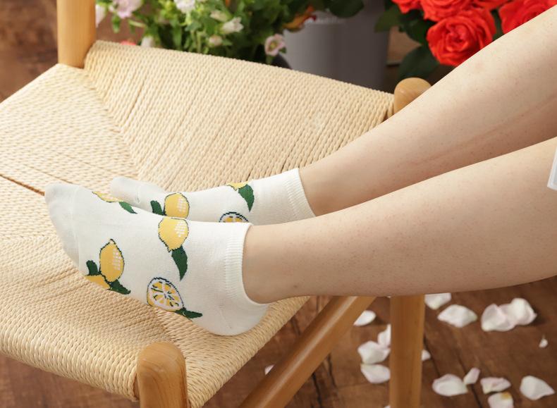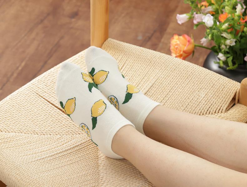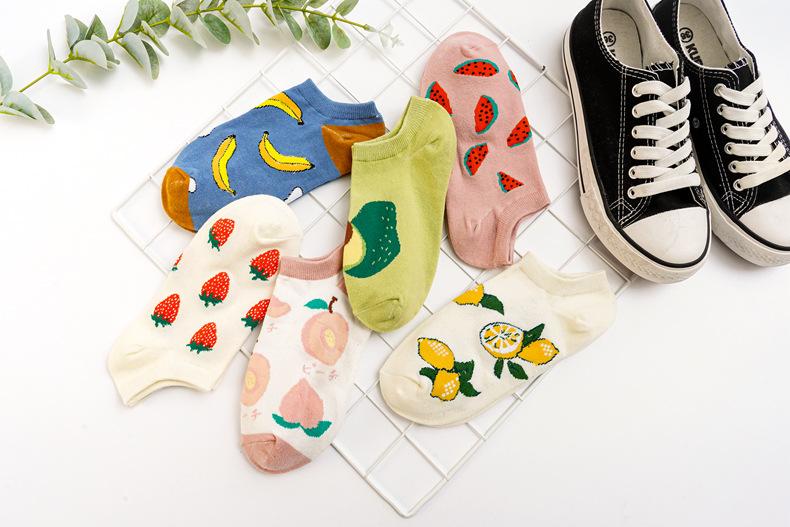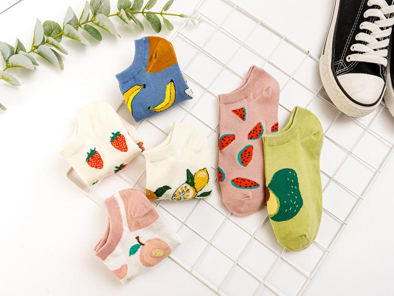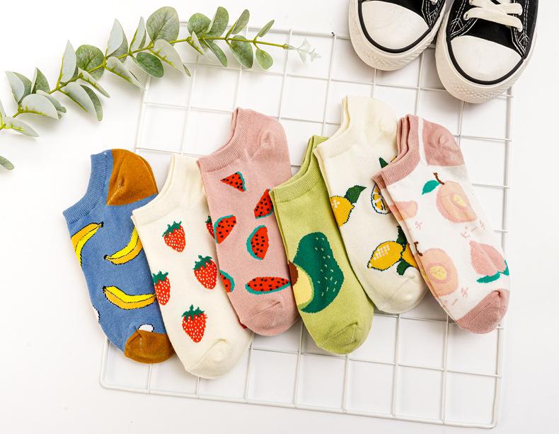 Calcetines de estilo nuevo para mujer, primavera y verano, estilo japonés, con dibujos de frutas, cortos, náuticos, estilo coreano, modernos, universitarios, de algodón, de cintura baja y boca baja.