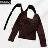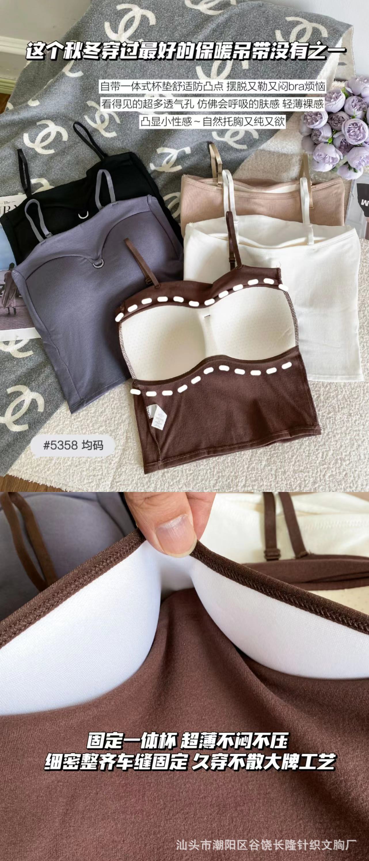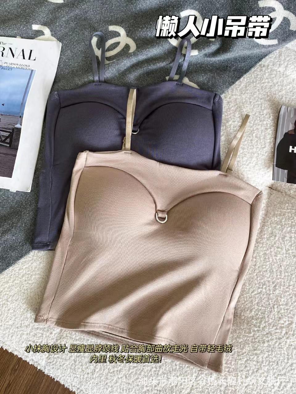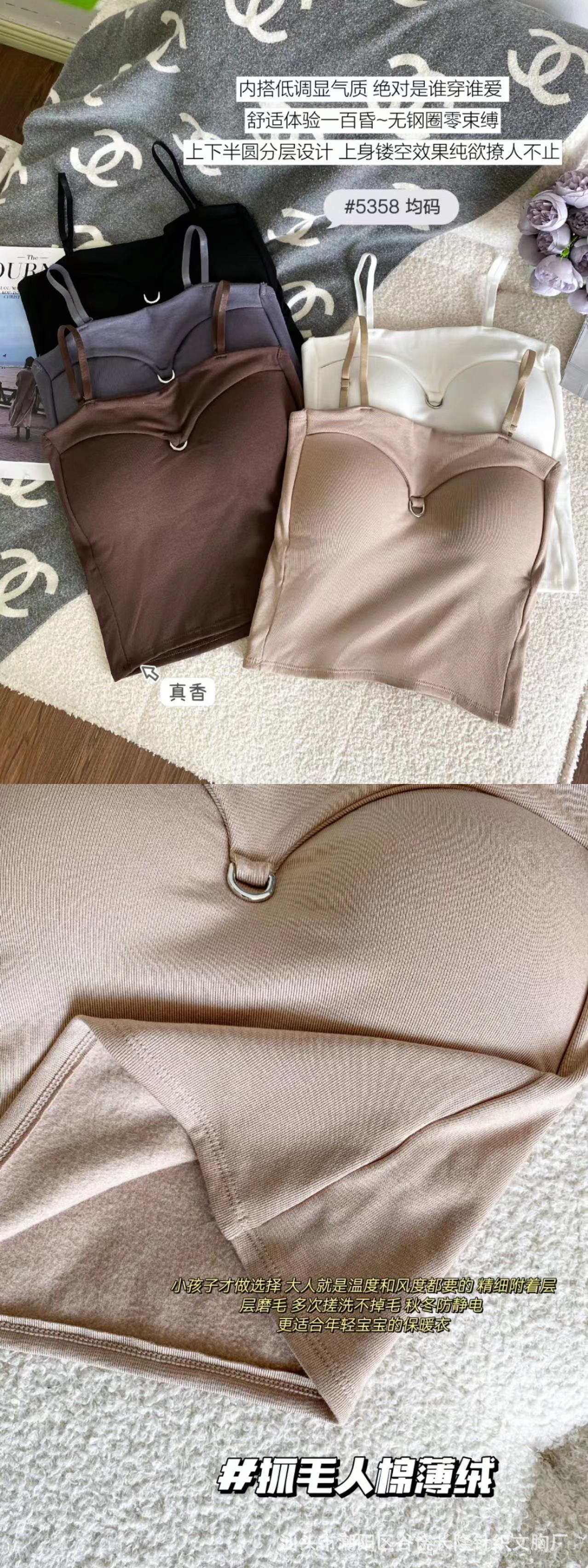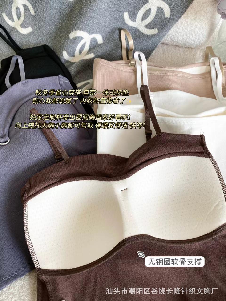 Camisola térmica cepillada para otoño e invierno, ropa interior de copa fija con espalda descubierta, diseño de ropa interior dulce y picante para mujer