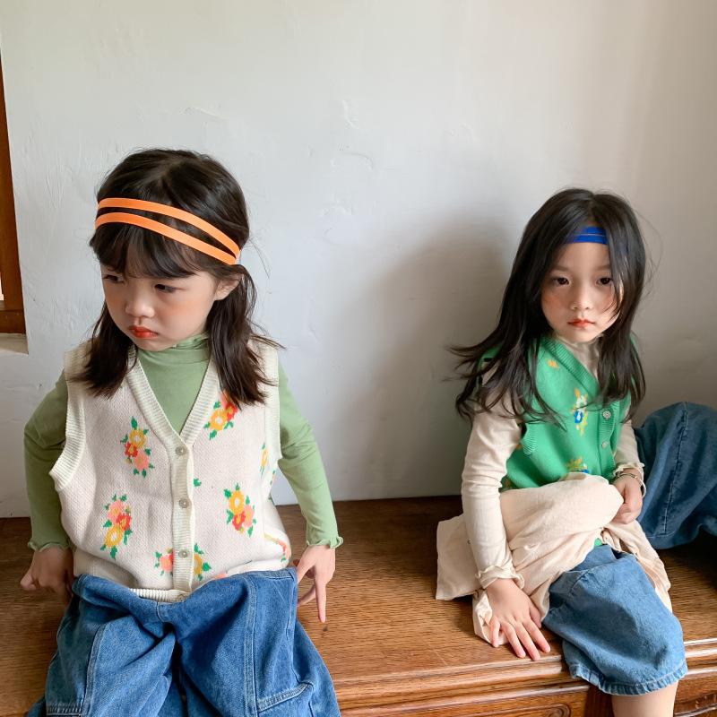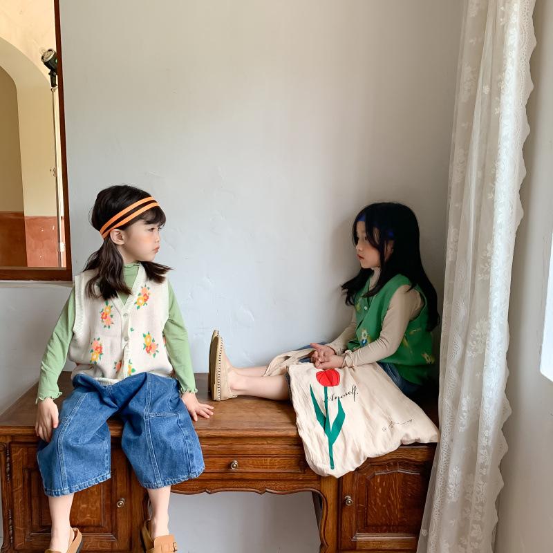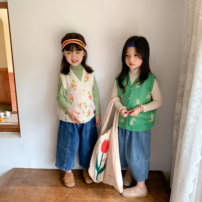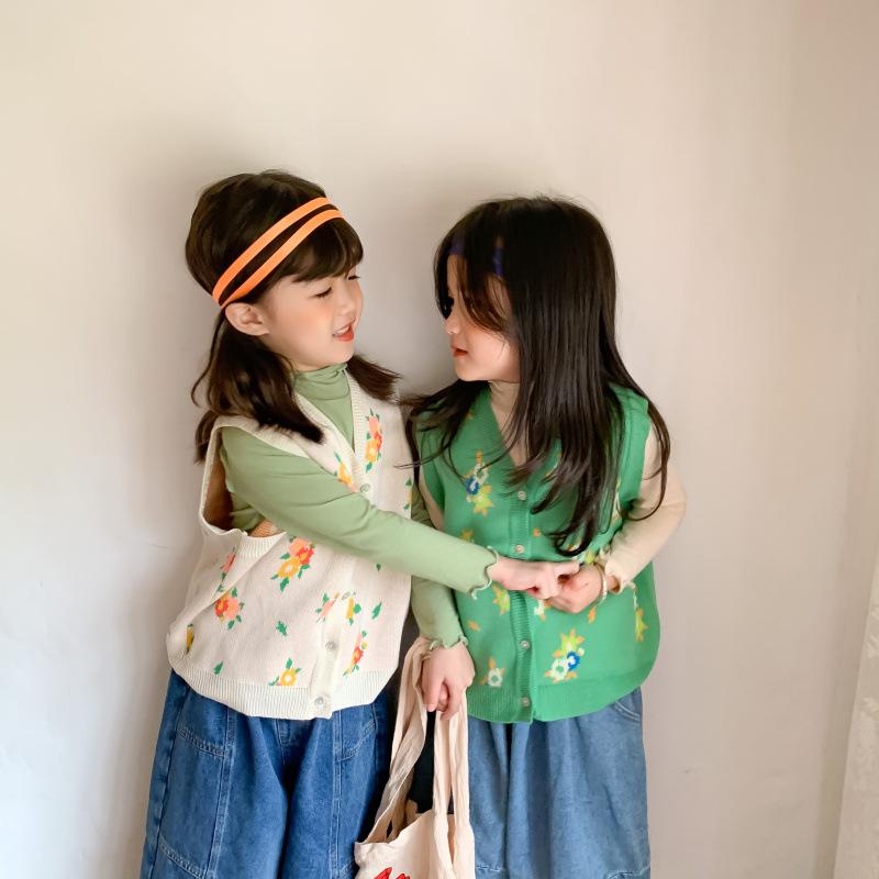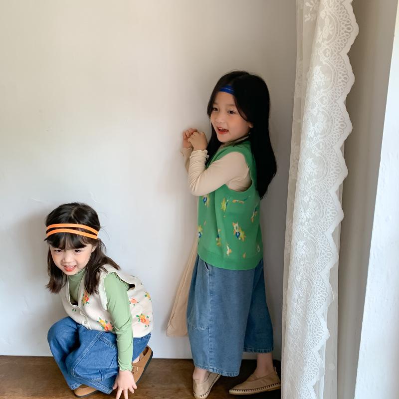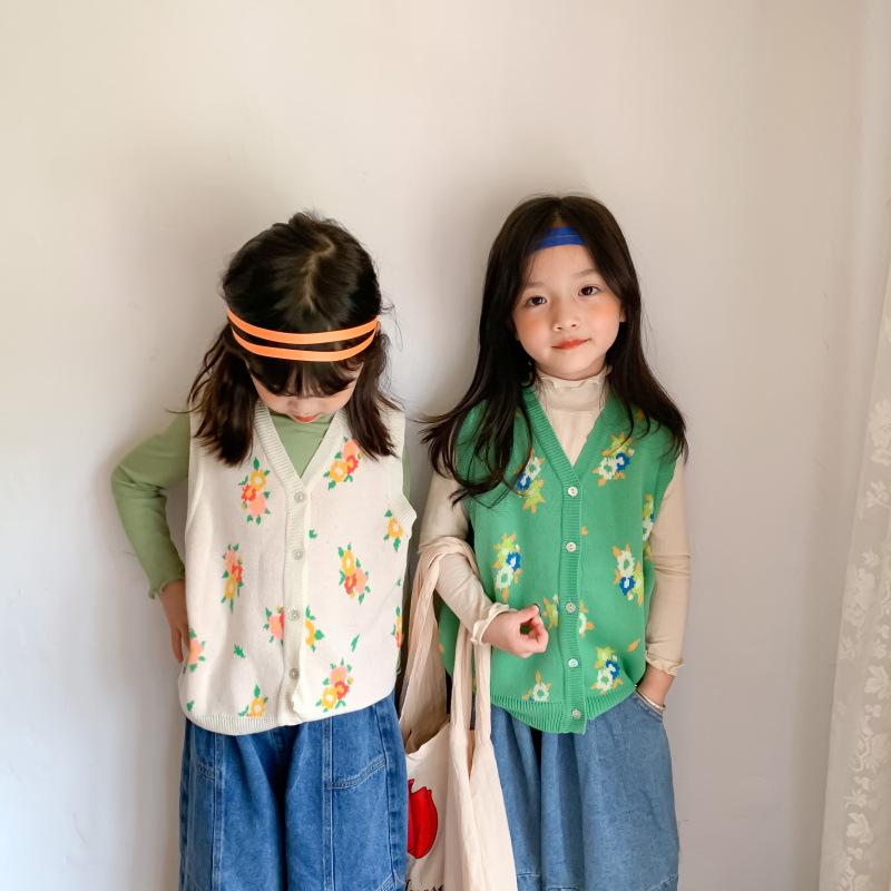 Chaleco para Niños 2025 Otoño Nuevo Estilo Coreano Niñas Lindo Chaleco de Lana Tejida Chaleco de Lana con Flores para Niños