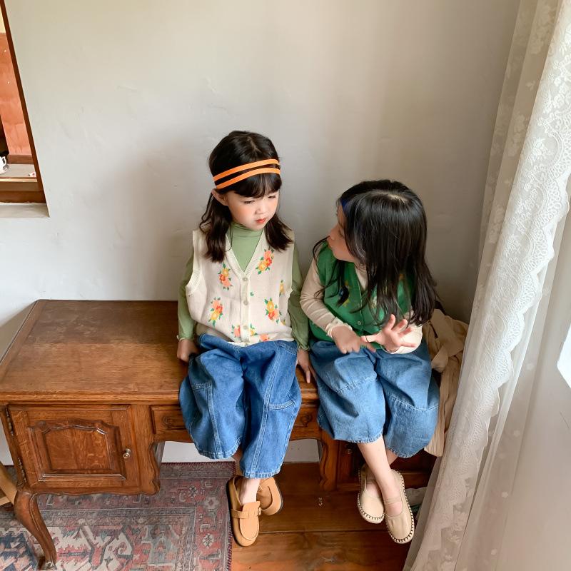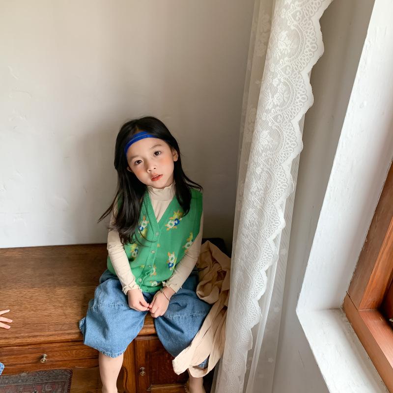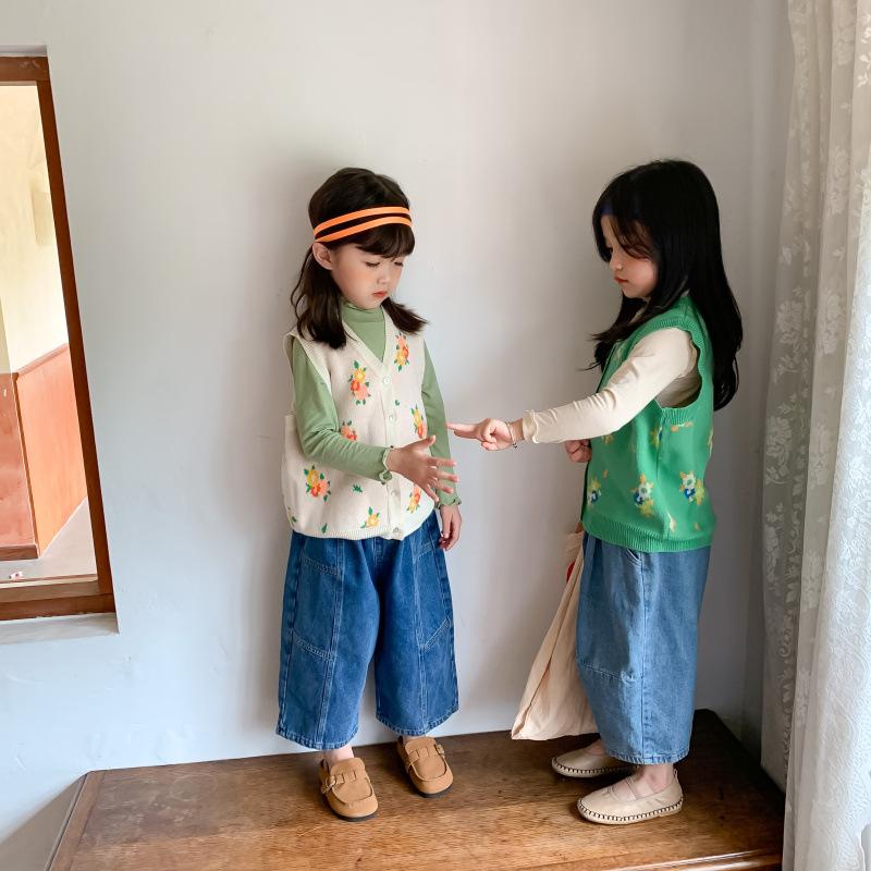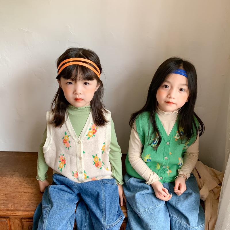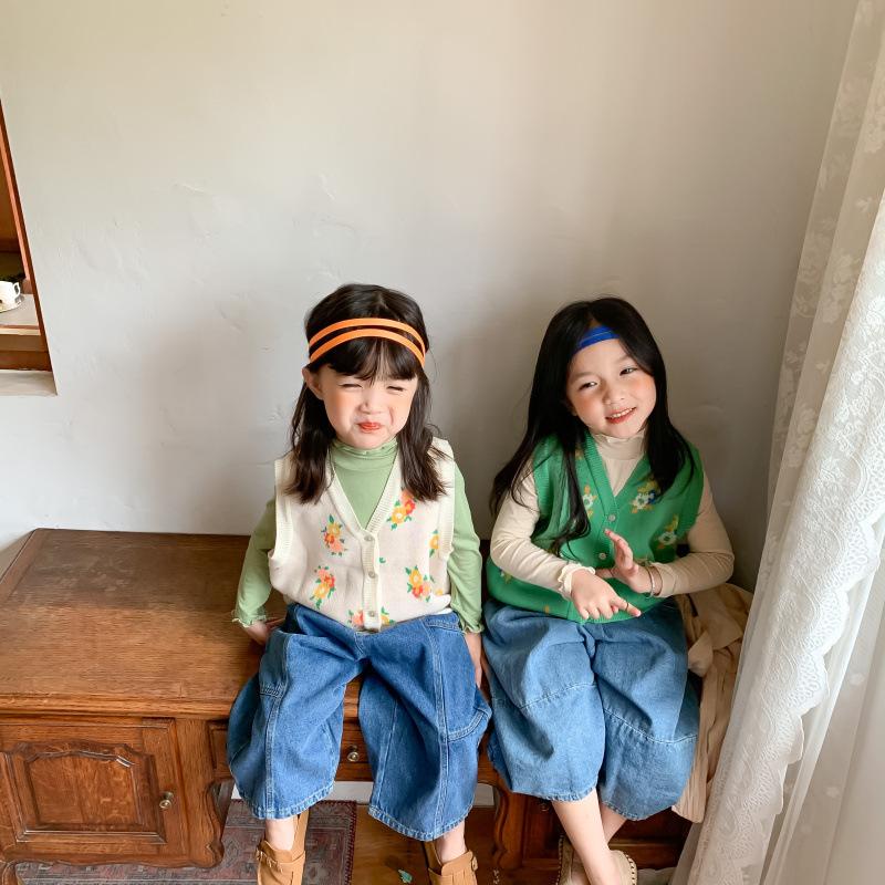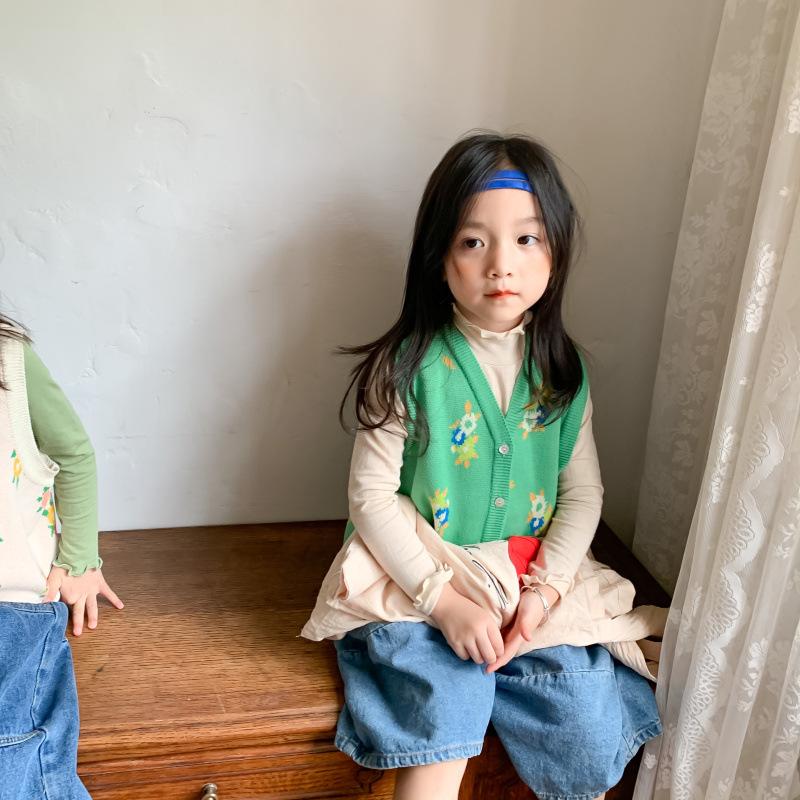 Chaleco para Niños 2025 Otoño Nuevo Estilo Coreano Niñas Lindo Chaleco de Lana Tejida Chaleco de Lana con Flores para Niños