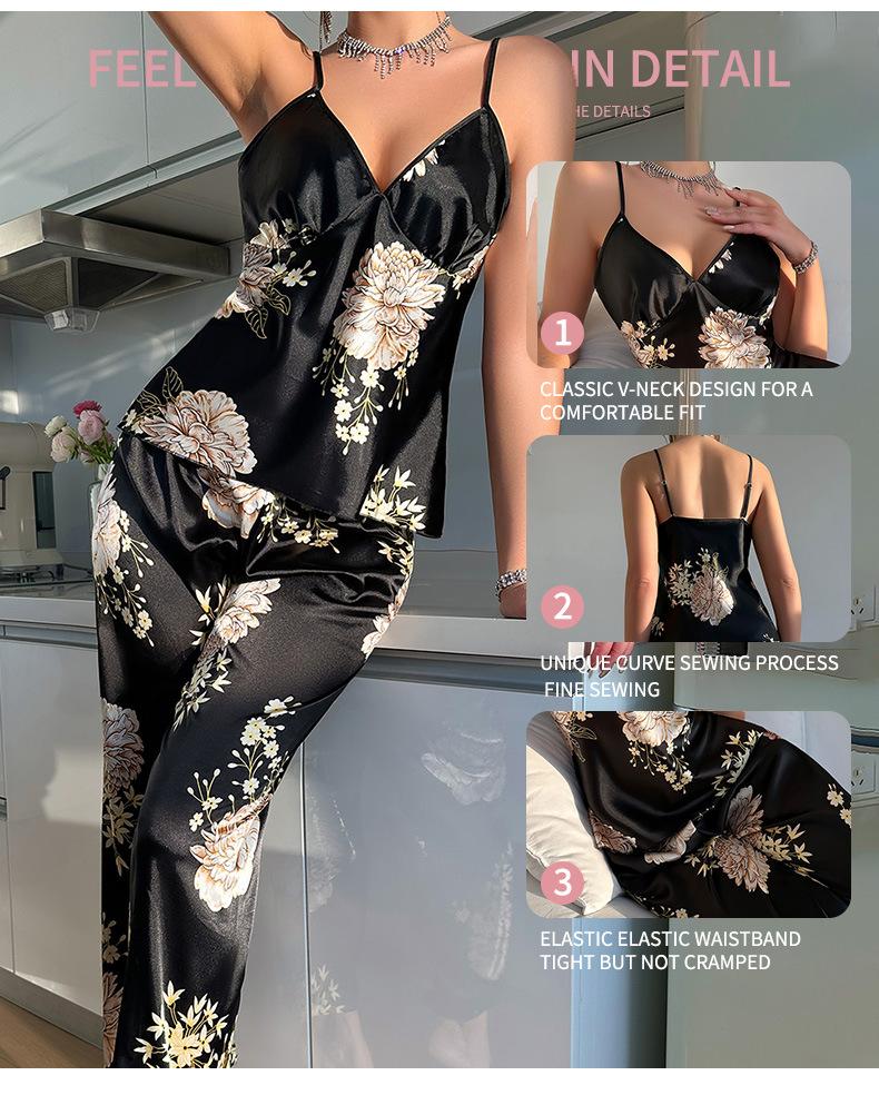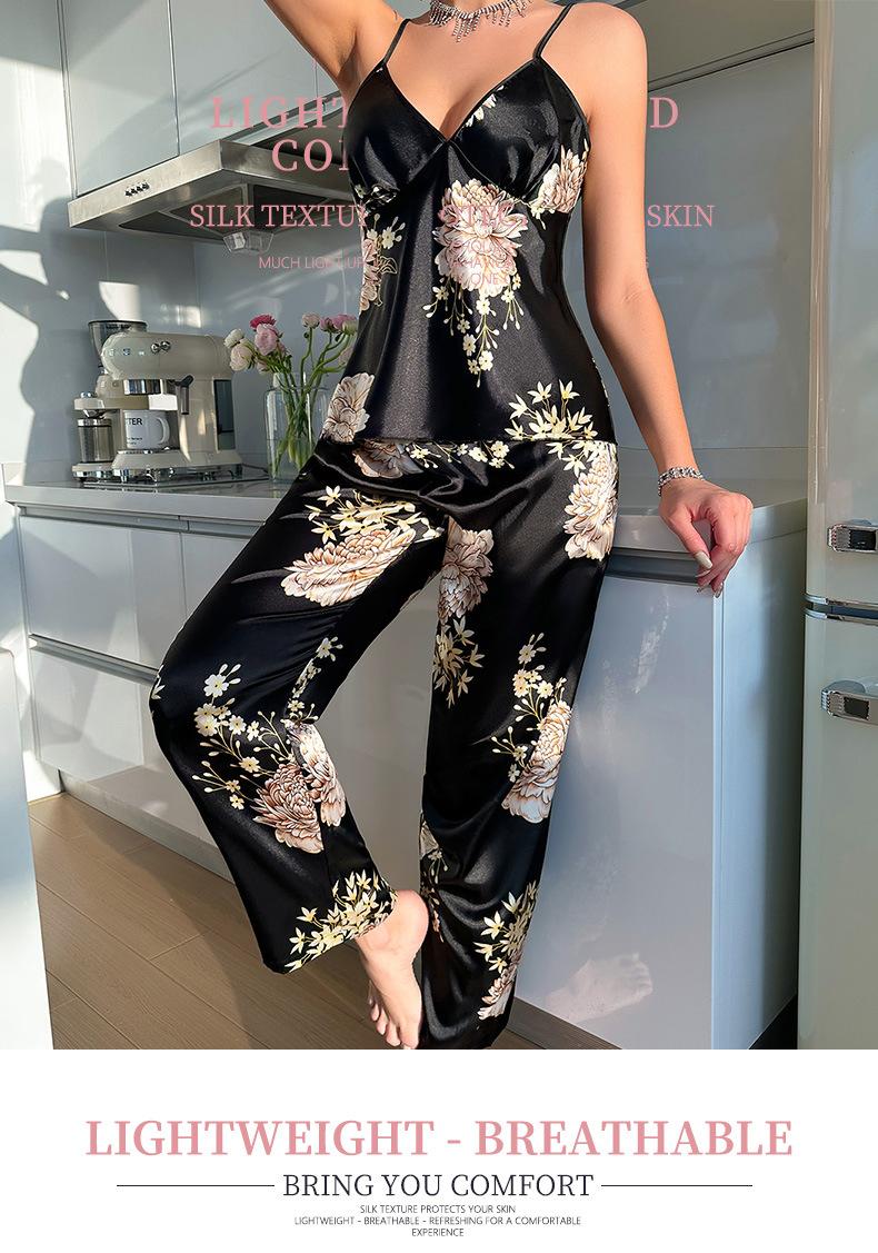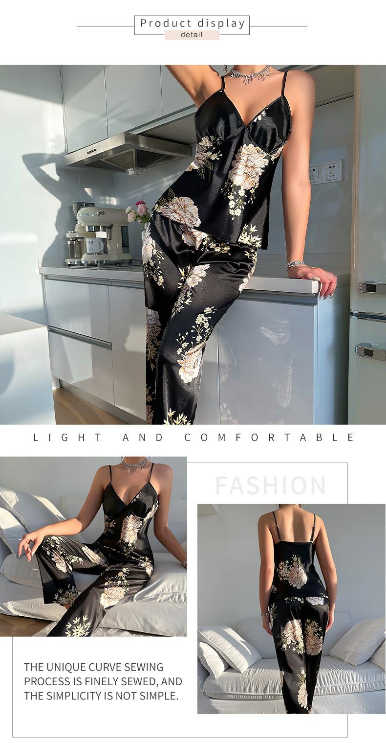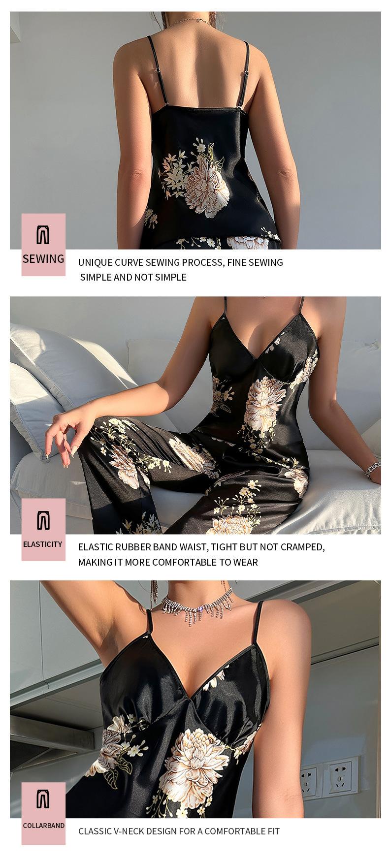 Pijama de Seda de Hielo de Verano para Mujer Nueva Moda Europea y Americana Ropa Interior Sexy Camisón de Tirantes Sin Mangas Ropa para el Hogar