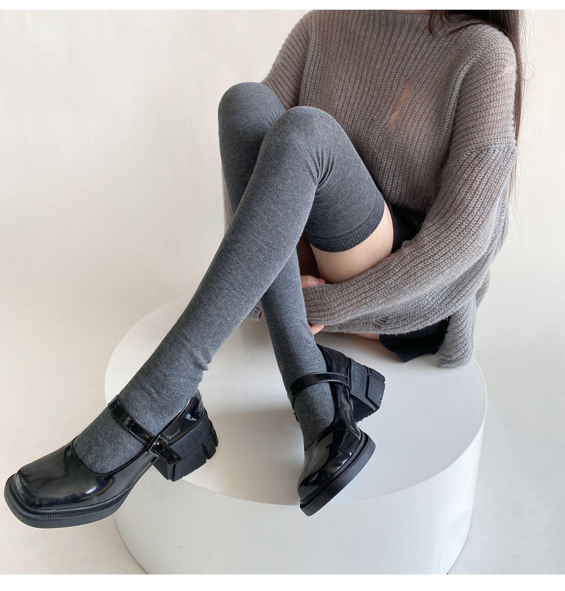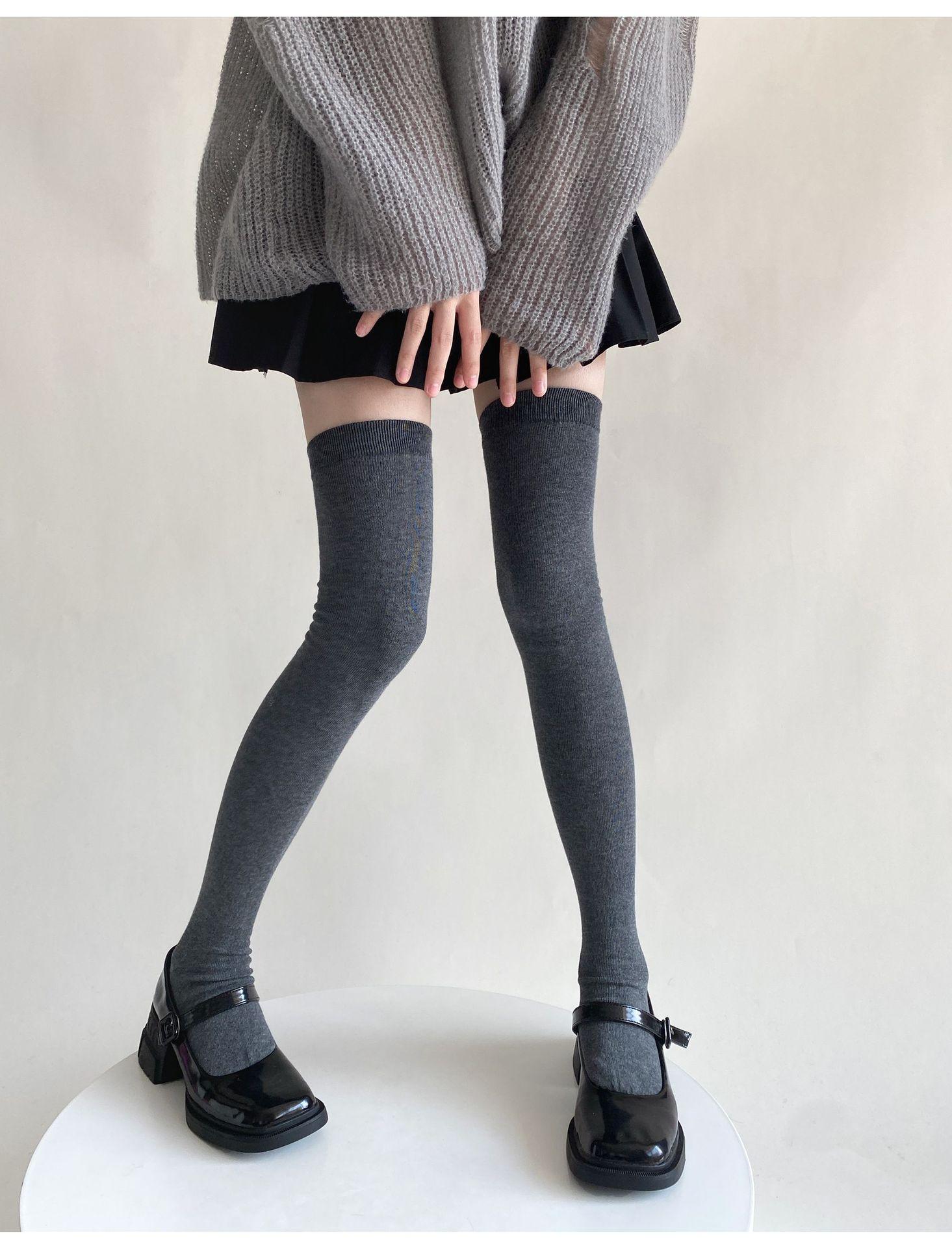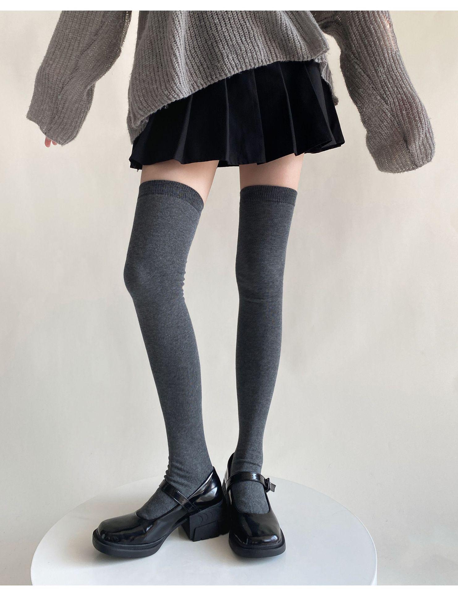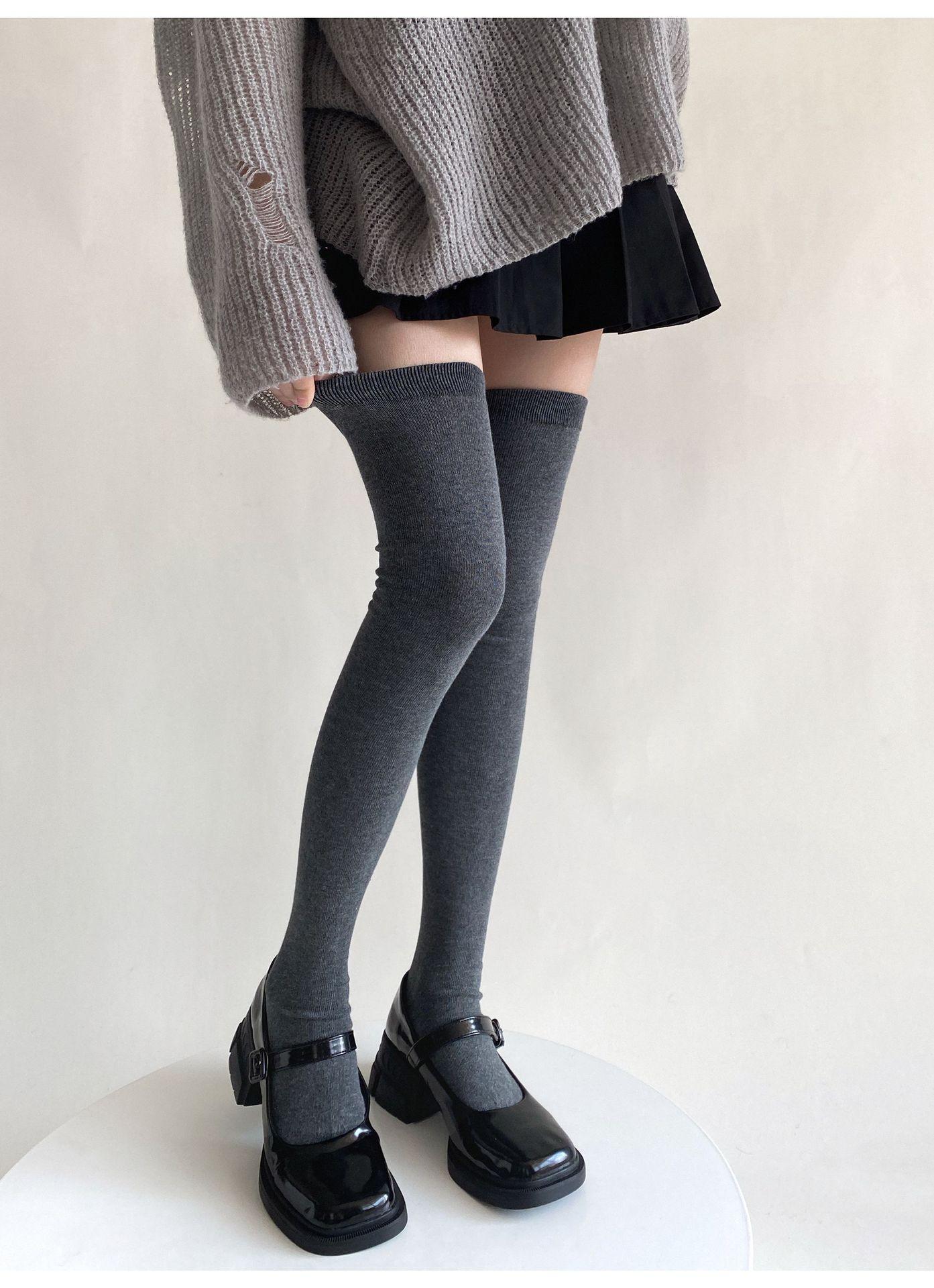 Medias de mujer hasta la rodilla, calcetines de otoño e invierno negros y grises, calcetines alargados hasta el muslo, estilo japonés JK, sencillos, combinables para primavera y otoño.