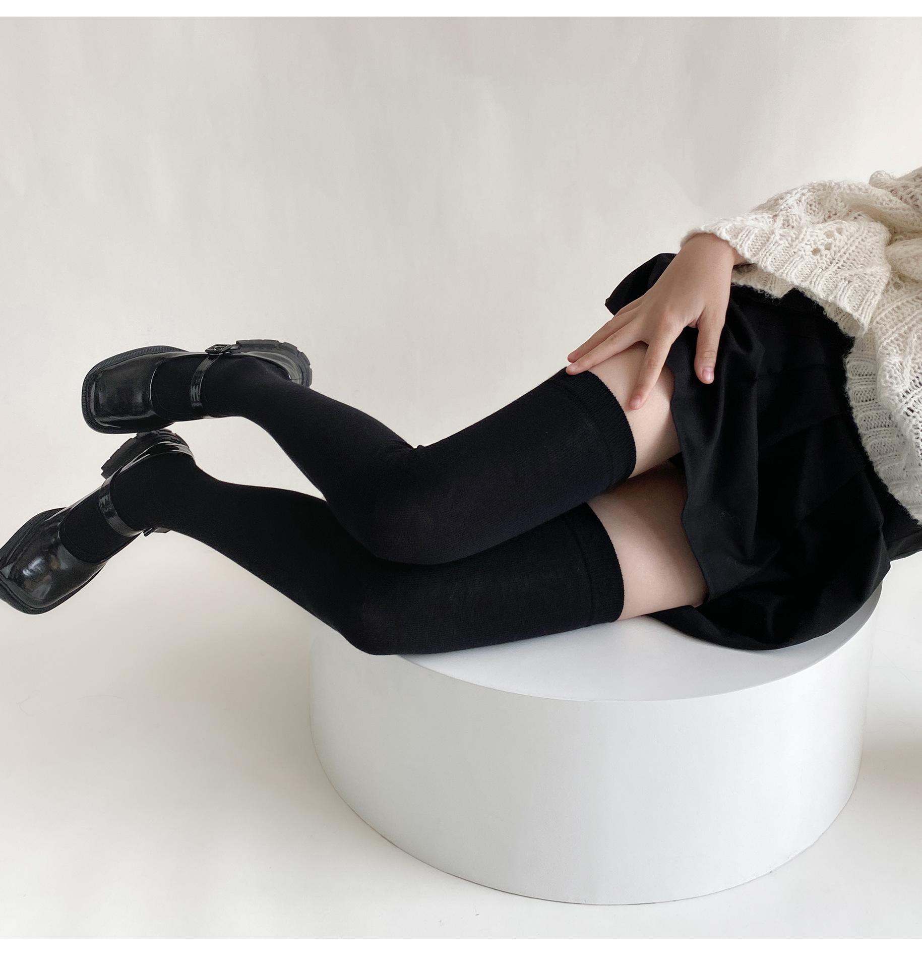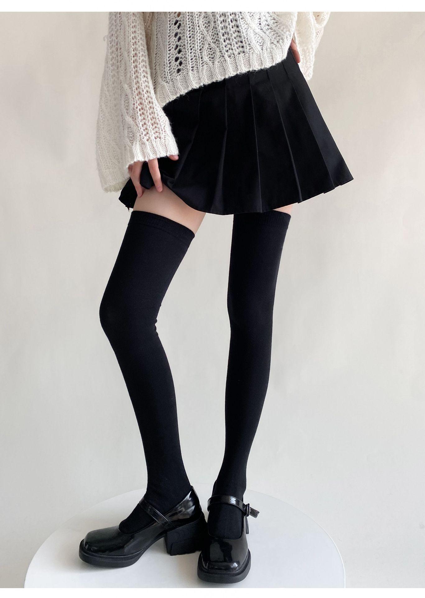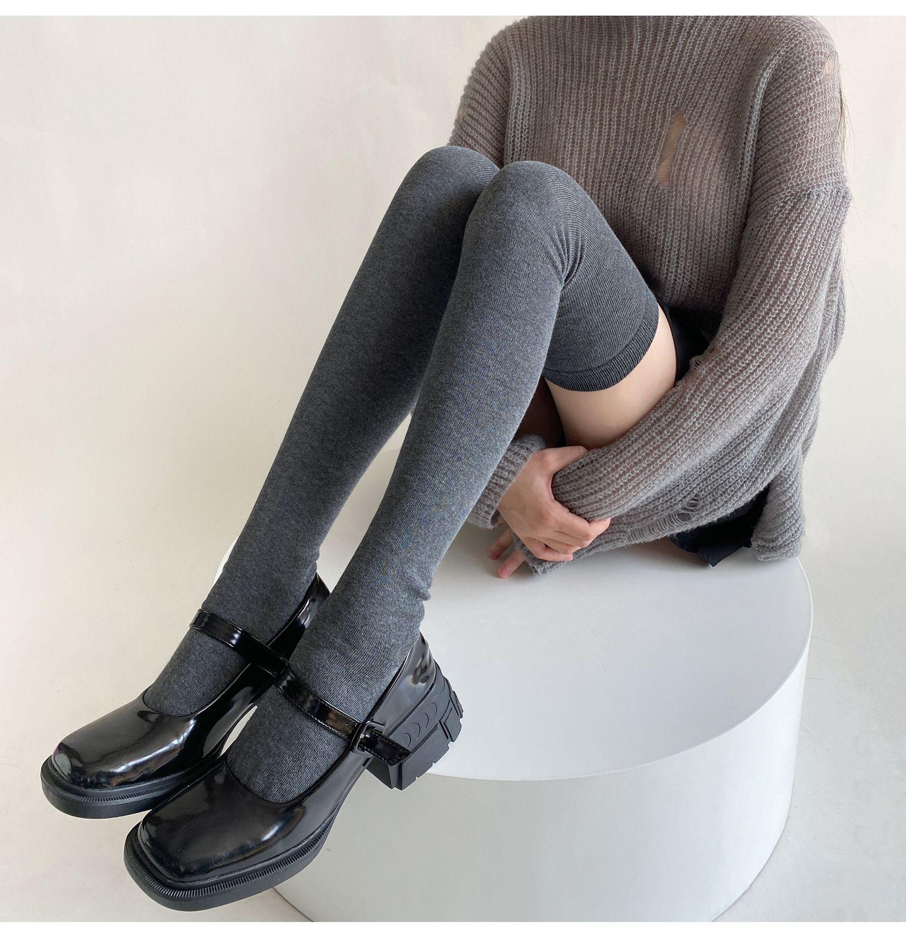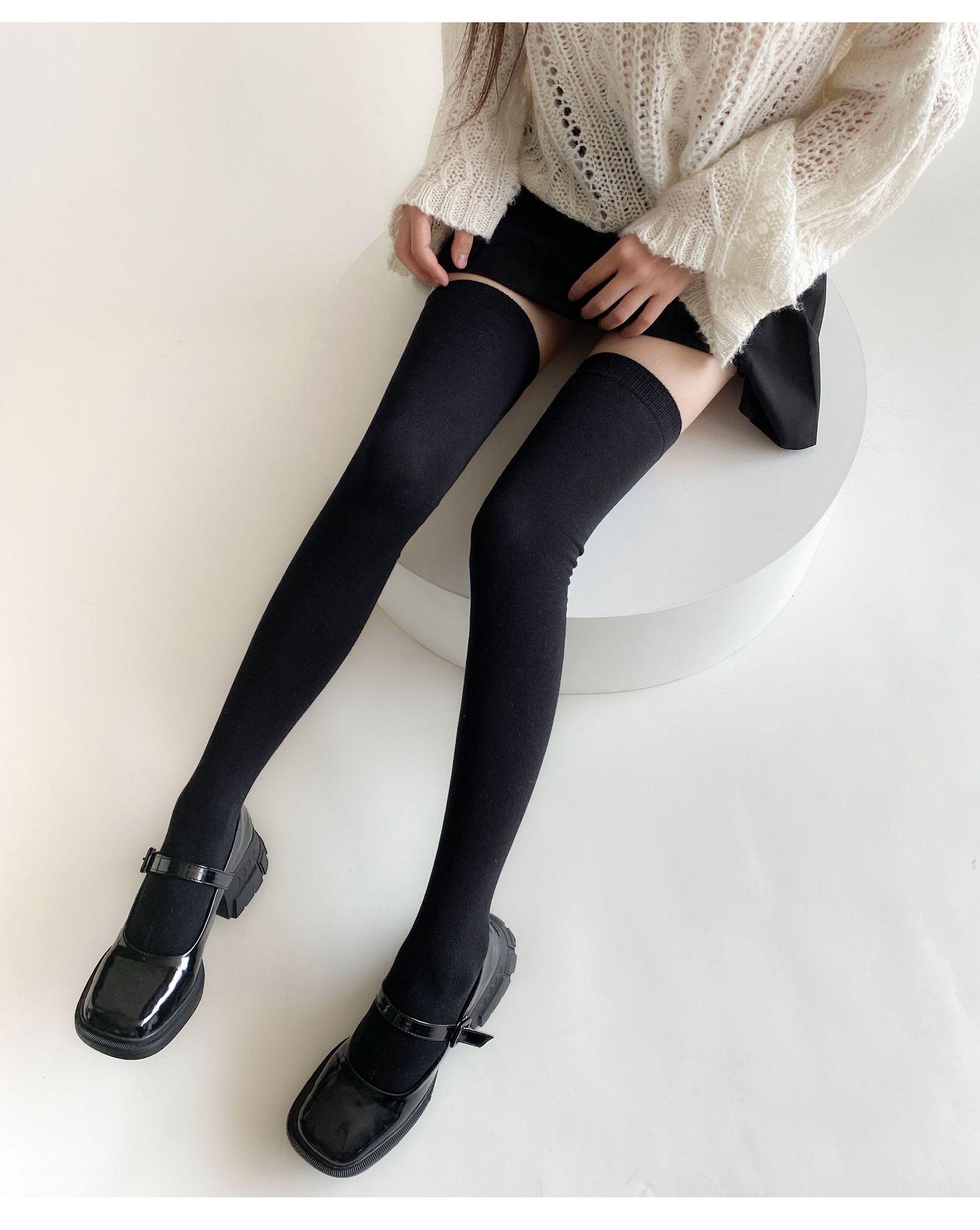 Medias de mujer hasta la rodilla, calcetines de otoño e invierno negros y grises, calcetines alargados hasta el muslo, estilo japonés JK, sencillos, combinables para primavera y otoño.
