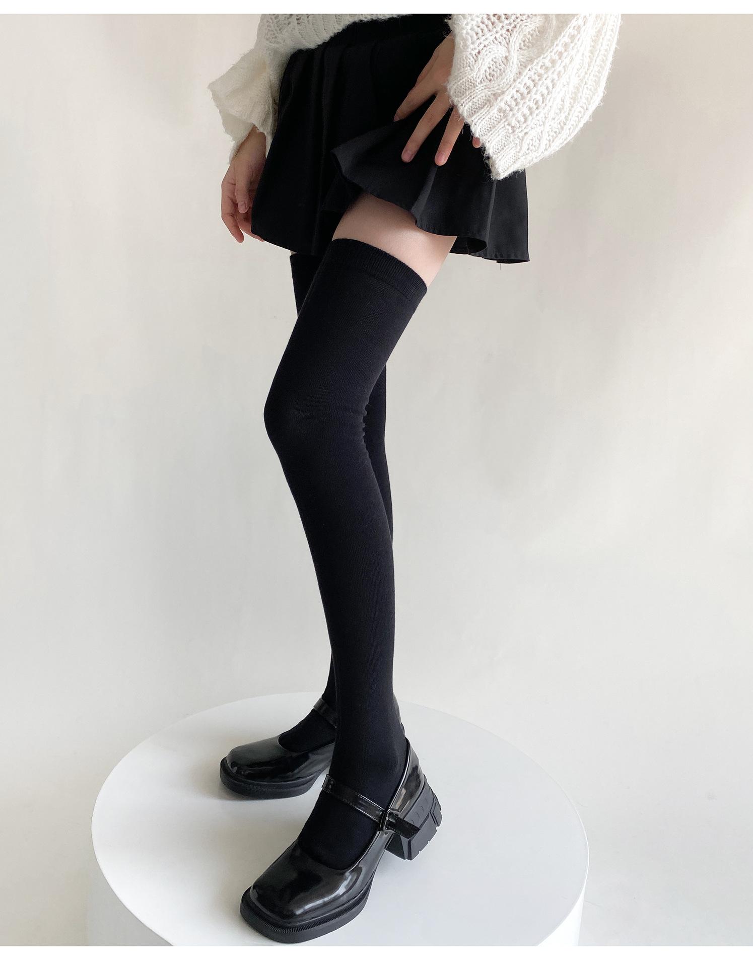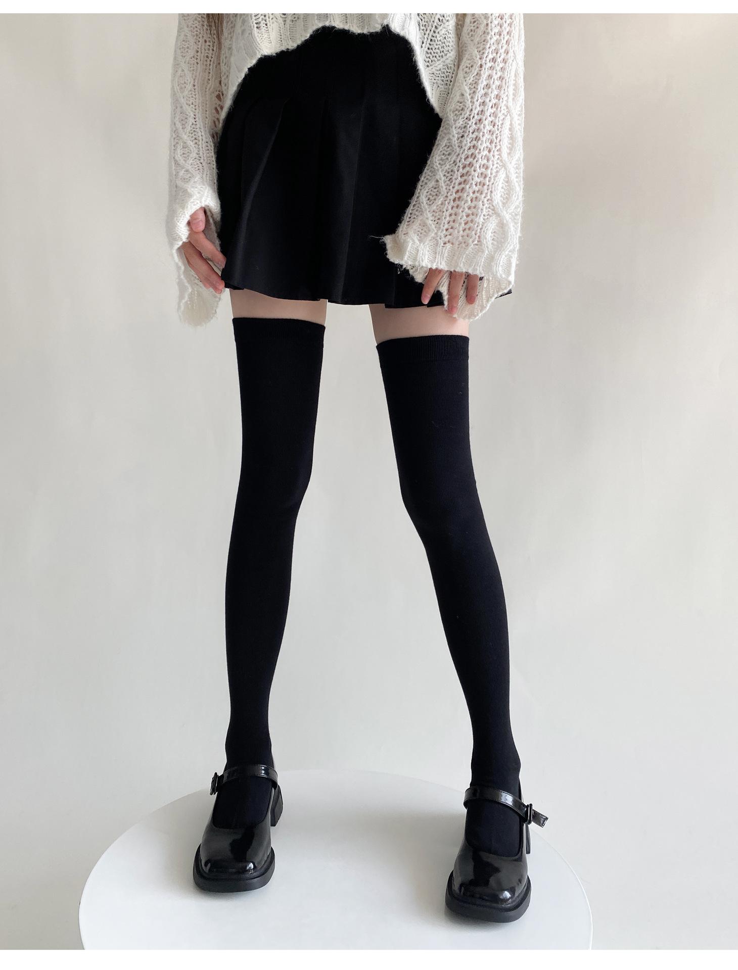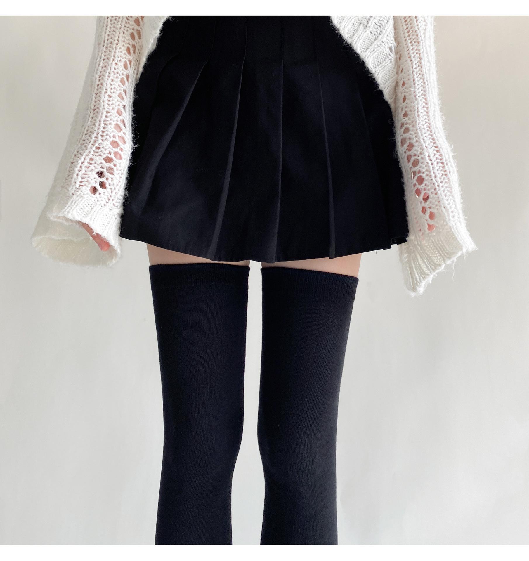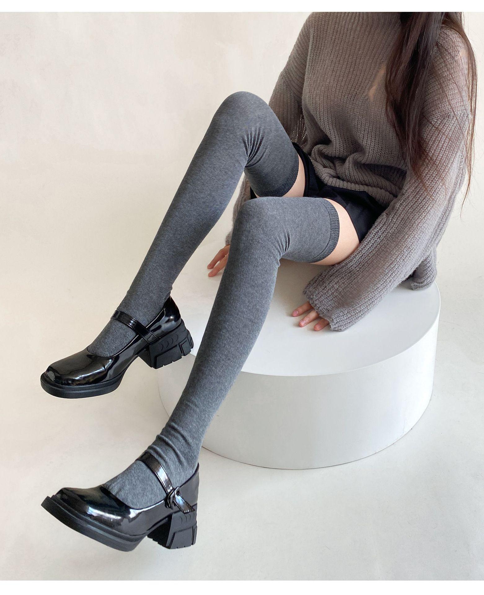 Medias de mujer hasta la rodilla, calcetines de otoño e invierno negros y grises, calcetines alargados hasta el muslo, estilo japonés JK, sencillos, combinables para primavera y otoño.