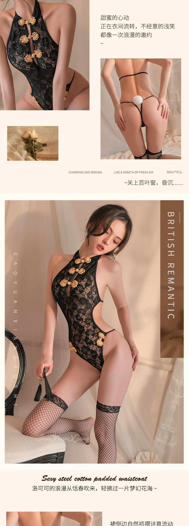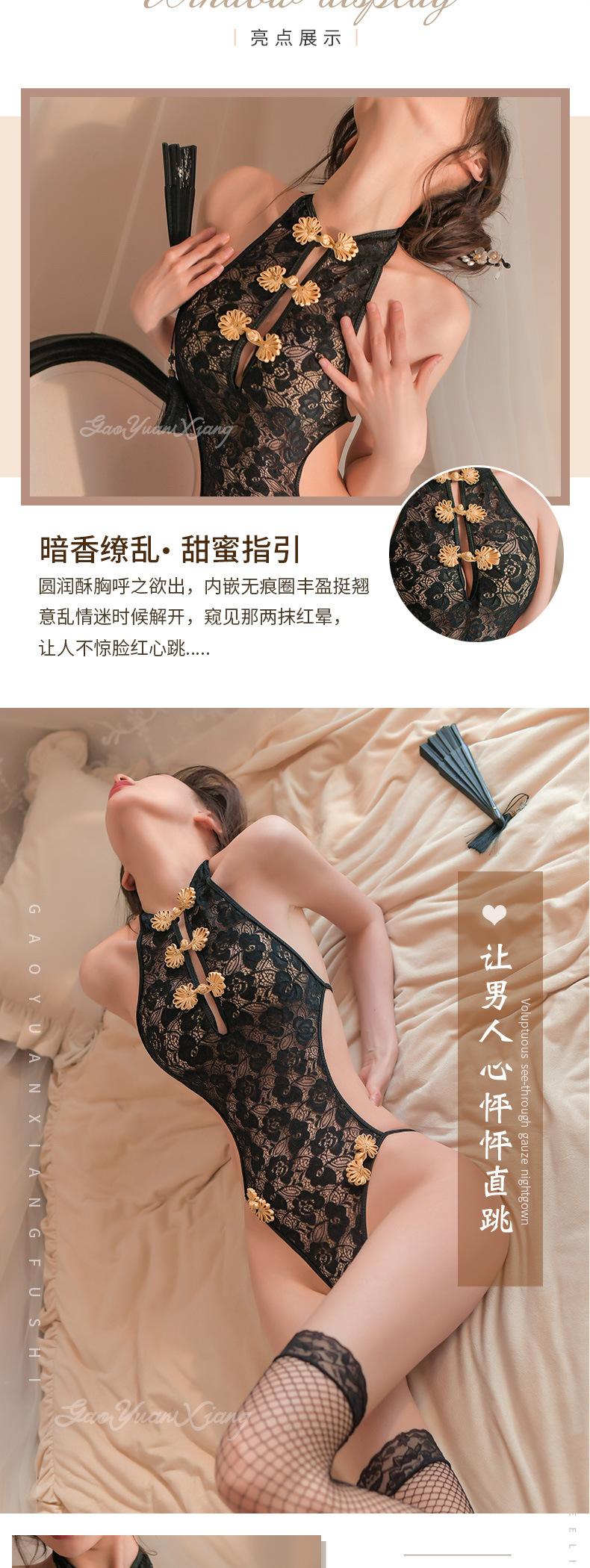 Nueva Lencería Sexy Mujer Joven Cheongsam Vintage Jacquard Una Pieza Uniforme Pasión Tentación Pijama Conjunto Sin Quitar
